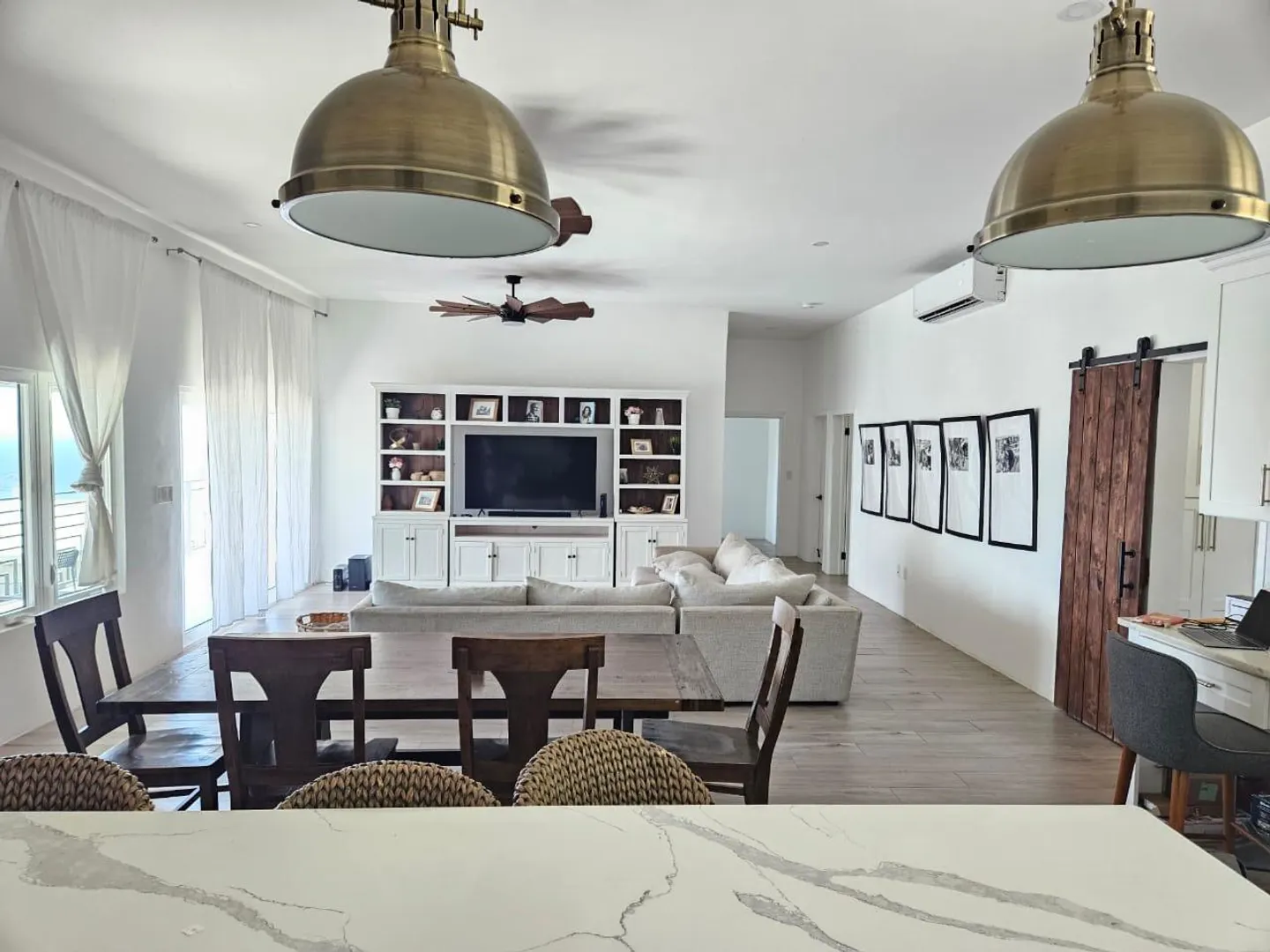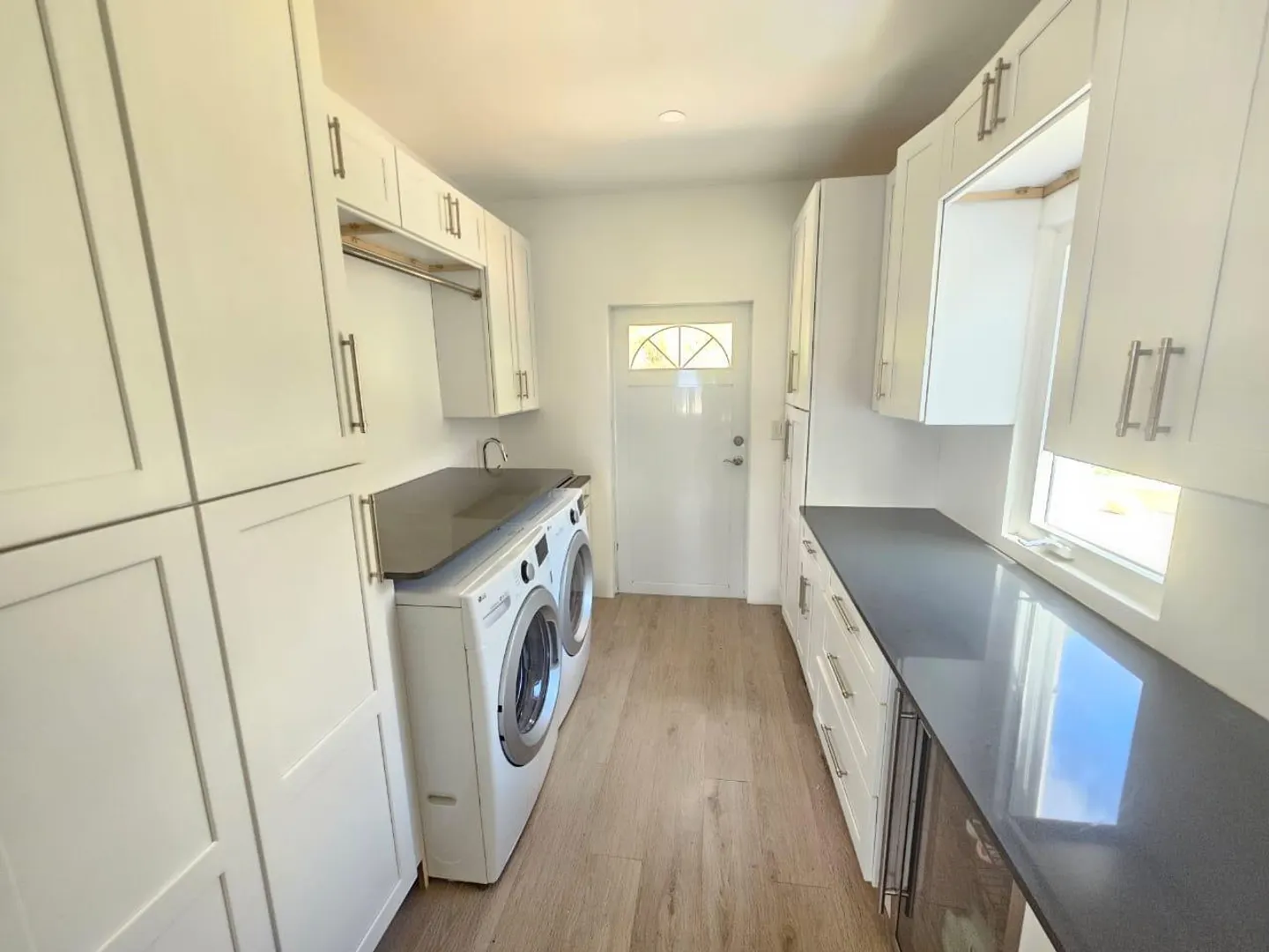 Available immediately, this stunning, light and airy contemporary 3 bedroom 2.5 bathroom turnkey executive rental is perfect for a tenant with high end taste and expectations. As you walk in you are wowed with a gorgeous kitchen with an expansive island and all the appliances...dishwasher included and kitchen utensils that one would need to whip up a gourmet meal. The stunning quartz countertops are striking and compliments the open concept kitchen that flows into the living room with a large comfortable sectional. You won't miss out on the hearty conversations or watching the children play. Off the kitchen is a functional laundry room with tons of storage that features a washer and dryer and doubles as a pantry area with a wine cooler.