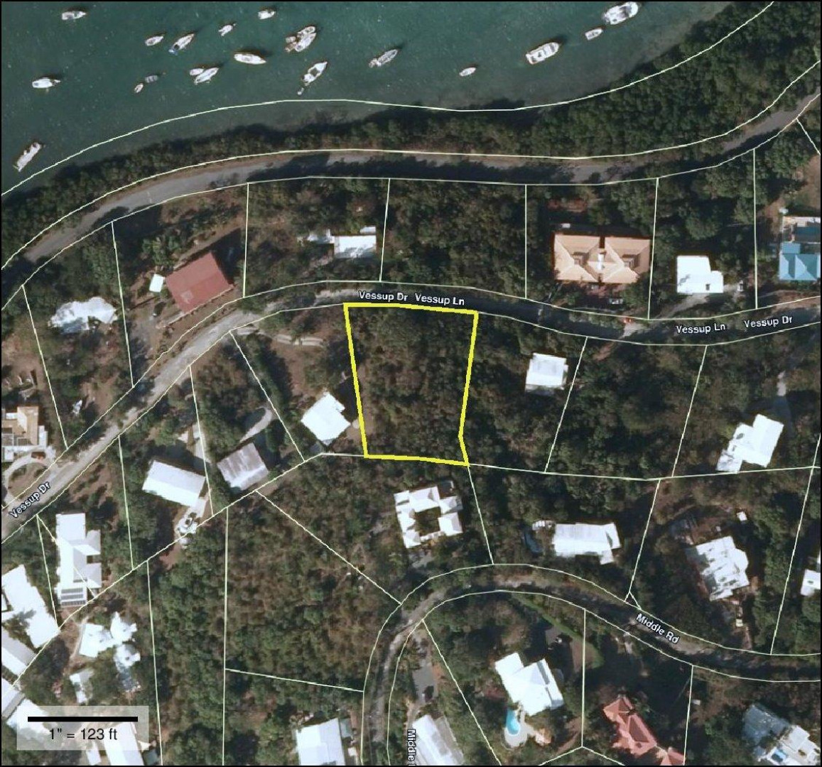 Ideal site to build your home in Estate Nazareth with beautiful views of Vessup Bay and beyond. This is a moderately sloped lot with some beautiful mature trees and 141 feet of road frontage. Close to Red Hook with its many restaurants and stores, Montessori School and Vessup Beach. It's just a short walk to beautiful Vessup Beach. No HOA fees.