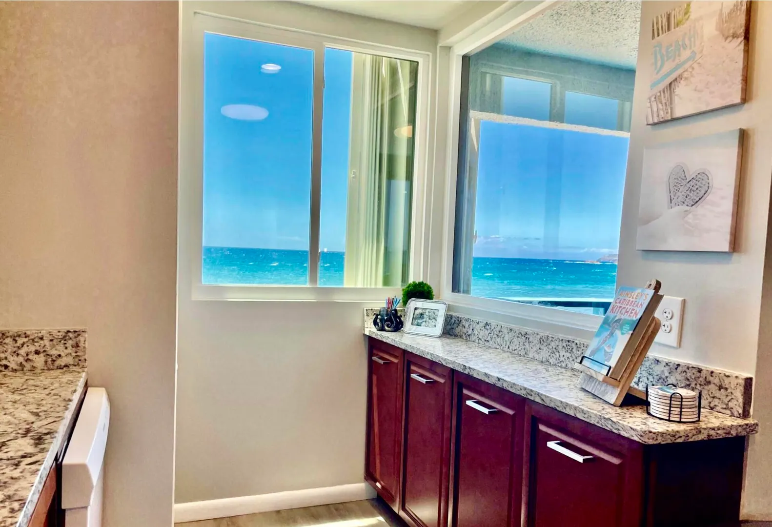 Experience breathtaking views of the Caribbean Sea from your private deck that is situated above the rocky beach of Coculus Point. This popular SHORT TERM VACATION RENTAL has all of the amenities and supplies one could need for a TURN KEY real estate investment or permanent residence. Renovated in 2021, this condominium has new windows and sliders, granite countertops, ceramic backsplash, oversized refrigerator, washer/dryer, upgraded split ac system, designer interiors throughout and ocean views from the master bedroom via the glass French doors. Enjoy beach access, pools (3), pickleball, tennis, basketball, gated community, mail delivery, trash pick up and so much more! Pet Friendly with Board approval.
