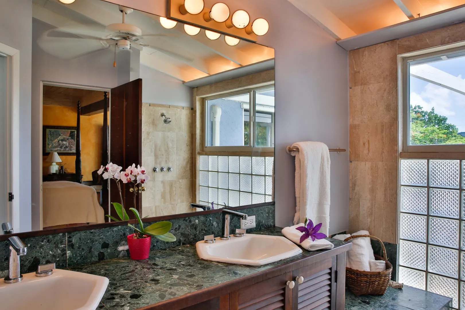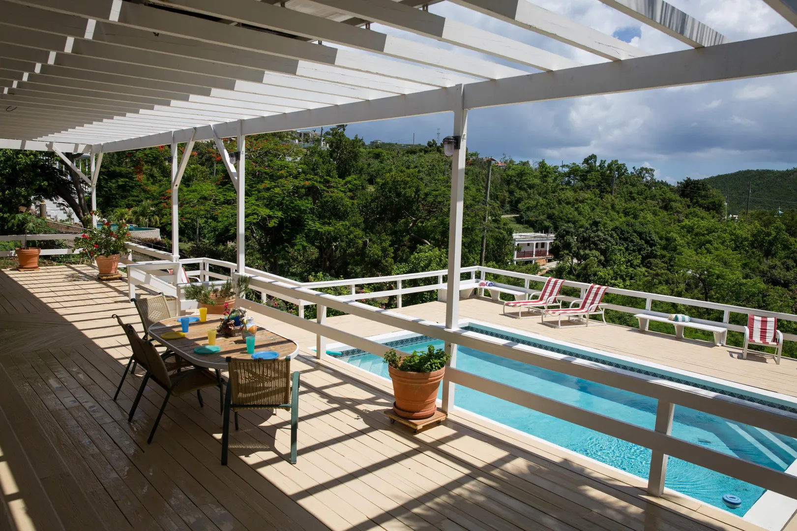 A 600 sq ft great room that is yet cozy and welcoming, an expansive pool deck made for a party and a mesmerizing view of cays to the north and Pillsbury Sound. This 3 bedroom, 3 bath Estate Nazareth home offers all of the above as well as full solar power with net metering and a well on the property. Situated just minutes from Red Hook, numerous beaches, marinas, Montessori school and the Yacht Club, the home wraps a list of sought after features into one sublime package. Single level floor plan with over 3,000 sq ft of outdoor living area and a yard full of fruit and flowering trees. See Documents for Supplemental Details