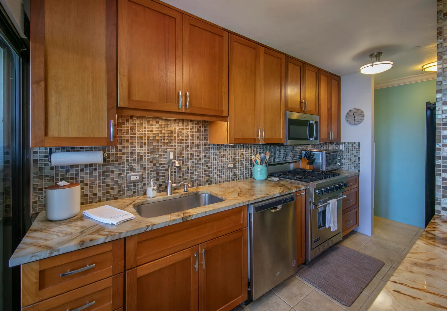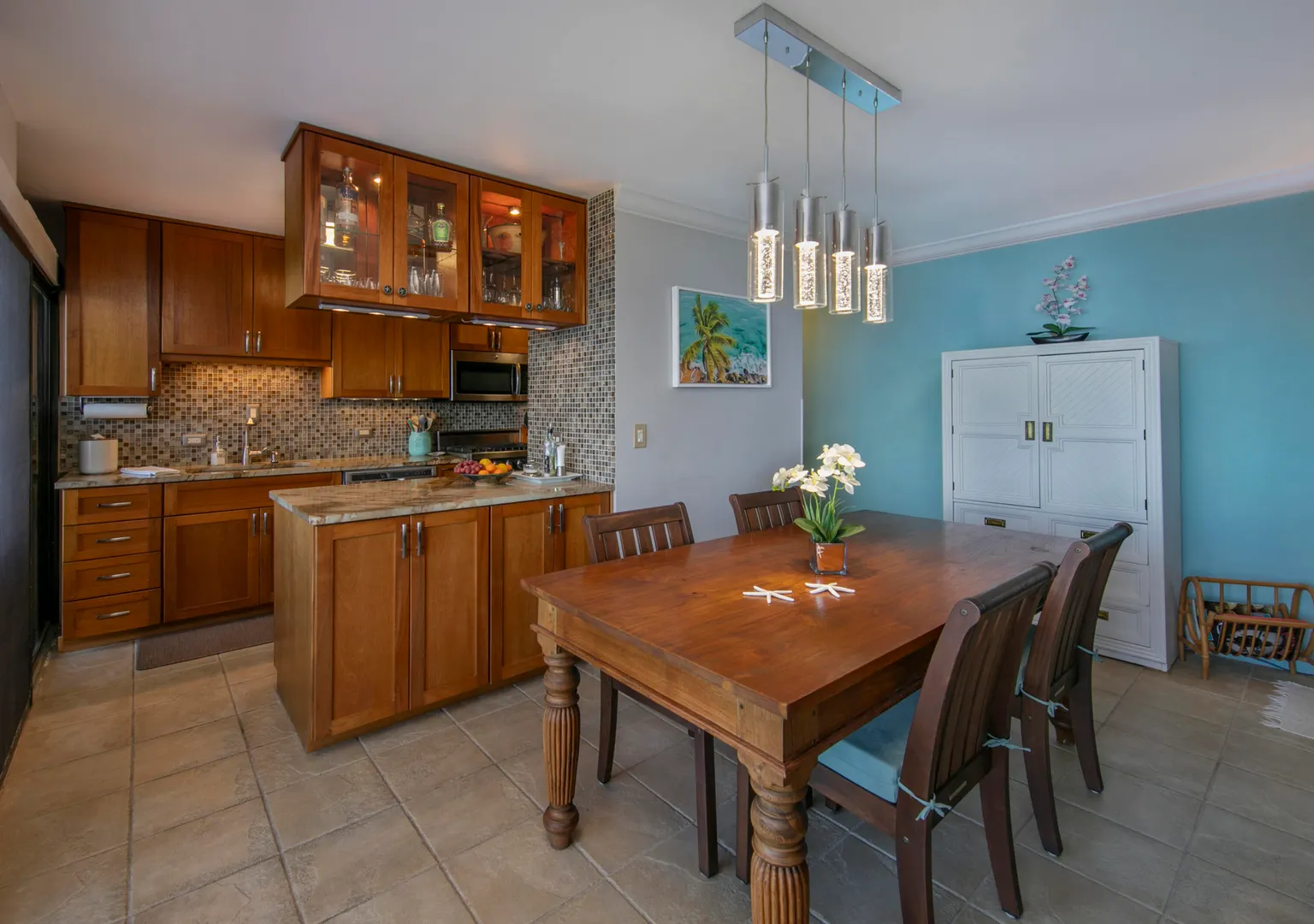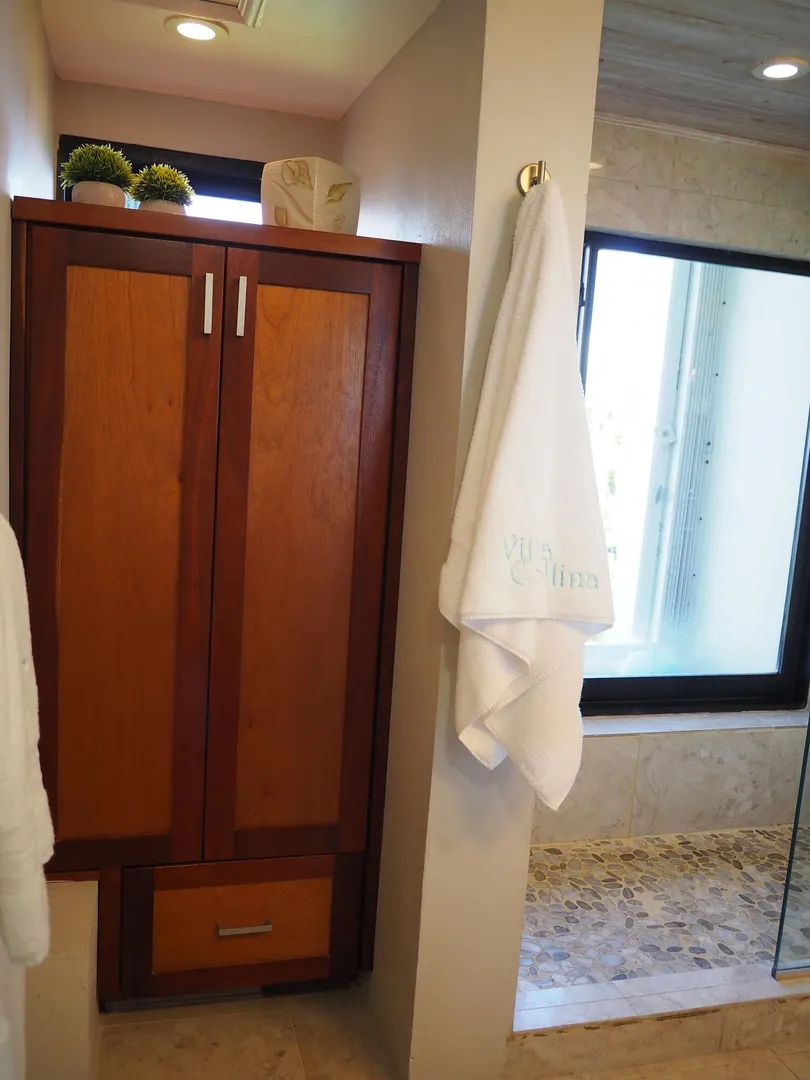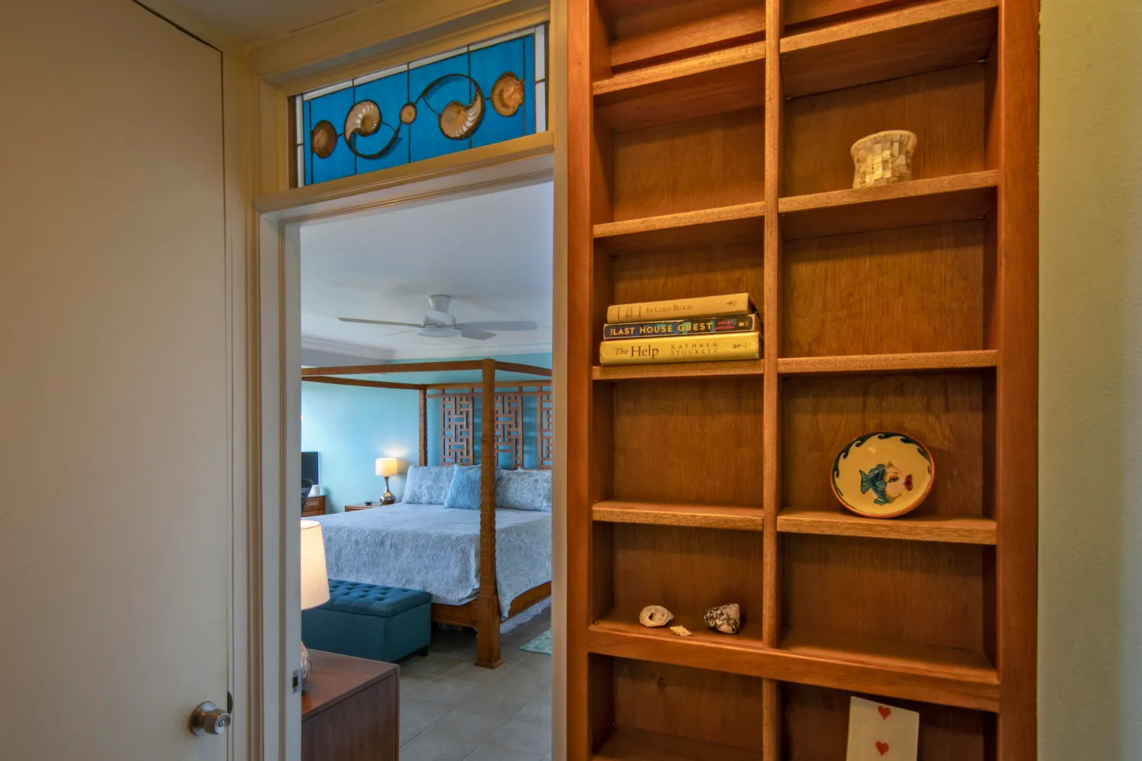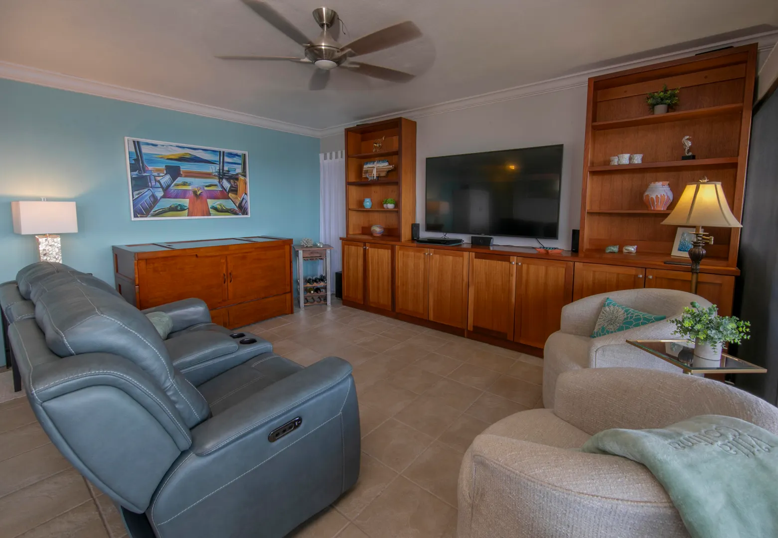 Villa Collina, is a 1 bedroom, 1.5 bath condo offering panoramic and unobstructed views from Hans Lollick to the BVI framed by beautiful, tropical vegetation. Located in the gated Mahogany Run Community, the condo features a 32' covered balcony, your outdoor living/dining 'room' and finely crafted custom mahogany cabinetry throughout. The expanded master bedroom has two built in desks and the spa-like bath has a double sink vanity and contemporary walk-in shower with a beautiful ocean vista. A rare half bath makes this the only one bedroom of its kind in the complex. Upgrades include a new, shared 30KW diesel generator, storm shutters, and Starlink mount. Private and exceptionally well maintained, Villa Collina is island living at its best