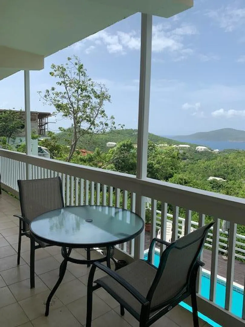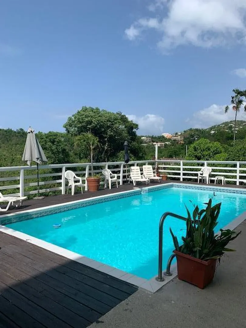 6 unit complex with LOW CONDO FEES just 5 minutes from beautiful Magens Bay Beach. This is a ground floor unit -- walk straight from the two assigned parking spaces into the condo with no steps or stairs. Light and airy, the unit opens out onto a large covered porch overlooking the pool and with an ocean view in the distance. Both bedrooms have walk in closets The grounds contain many fruit trees including avocados, sugar apple and mangoes. Northwind Villas are located a convenient location within easy reach Charlotte Amalie, Red Hook or Tutu.