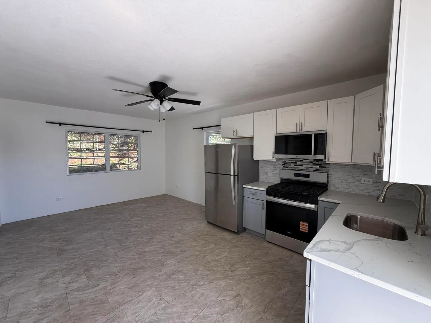 Come take a look at this completely remodeled one bedroom apartment complete with brand new kitchen cabinets with quartz countertops and stainless steel appliances. Electricity included. Lanlord will install brand new split units in April. Tenant will pay $1,600 until then.Unit has two parking spaces.No pets or smokers.First, last and security required