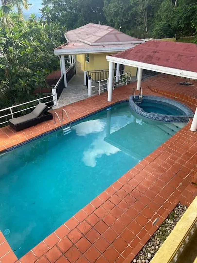 In beautiful Mafolie Estate, This is a 2x2 apt. on the upper level of a wonderful property with pool and view to Magens. There is a 2x1 apt. on the lower level which could also be rented. Great parking. Minutes to Magens, Town, East End and Airport.Entire house and accompanying cottage also available as one rental ( See MKS #25-459)or Purchase the entire property with extrahalf acre included in sale (see MLS# 25-408)