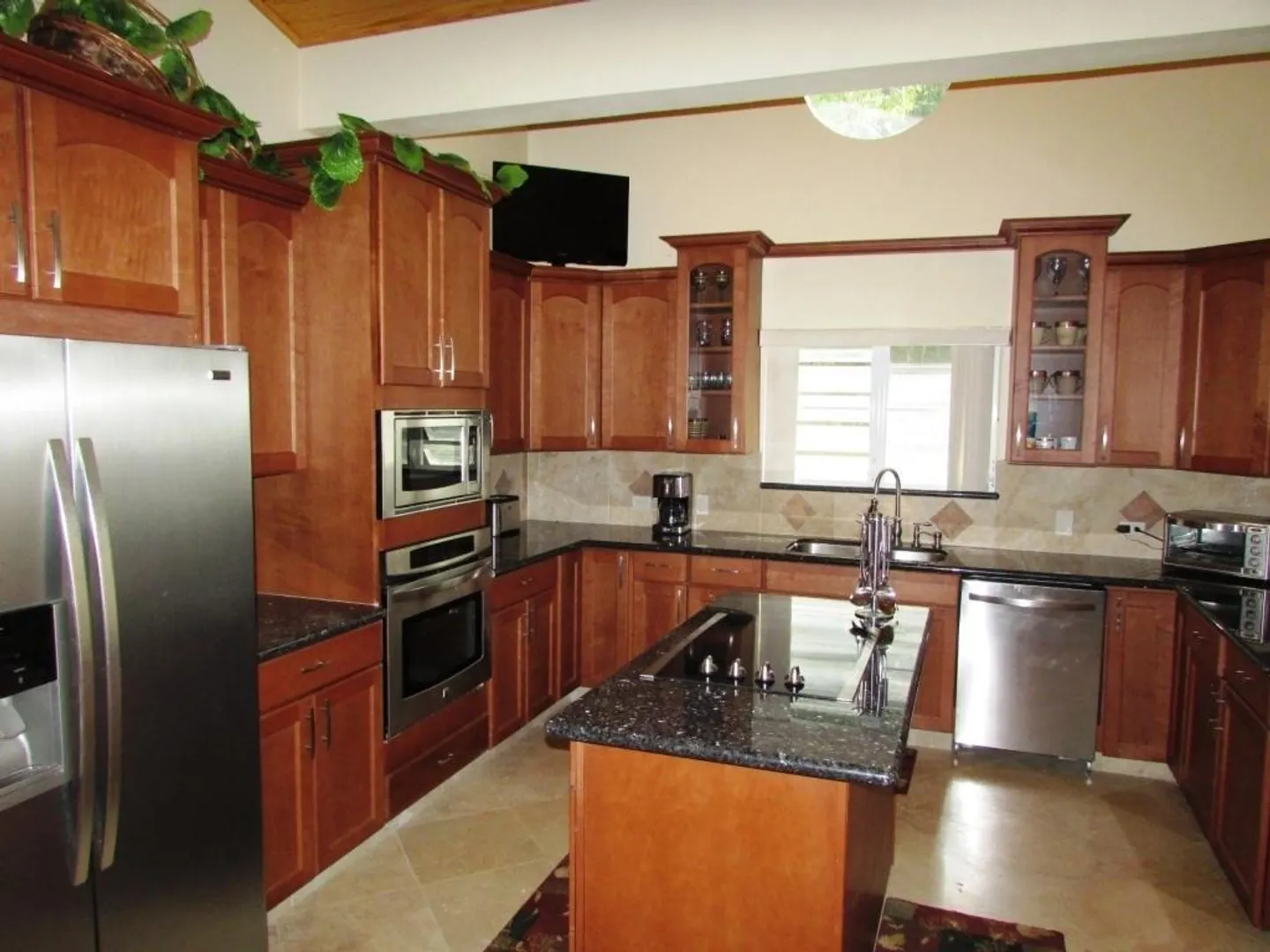 Available immediately. This perfect executive rental is professionally furnished. Great central location near Magens Bay just a short drive to the hospital and downtown. Amenities include granite countertops, travertine tiles, stainless steel appliances, solar water heater, energy efficient washer and dryer and generator. Each room has its own en suite bathroom.