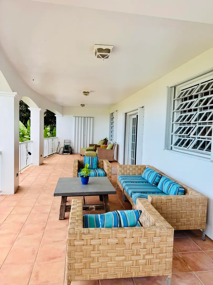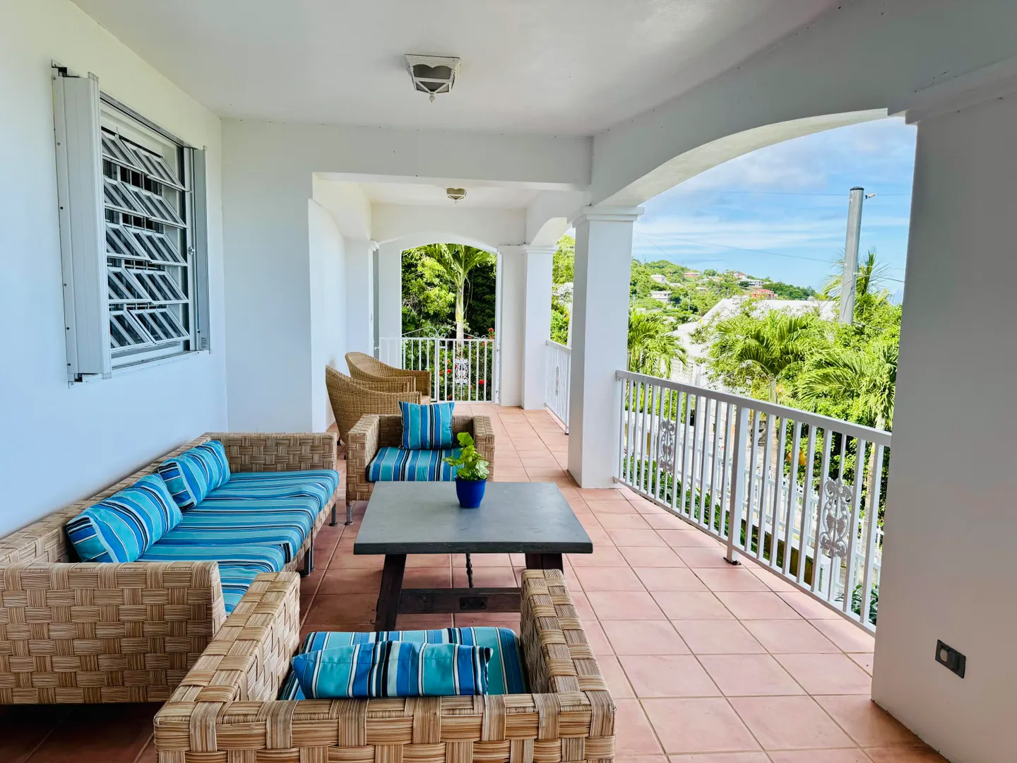The entire ground-level of ''Villa Zeddy'' is yours with its covered breezy Northside veranda overlooking breathtaking ocean views!!! Privately located on this low-traffic lane, has that peaceful get-away retreat feel. Fully furnished and well-equipped, just move in and unpack. Large open kitchen with loads of cabinets and counter space is perfect for entertaining and you'll love the large circular drive and only being 10 minutes from popular Magens Bay beach, yet less than 15 minutes from town. Small dogs, cats considered.