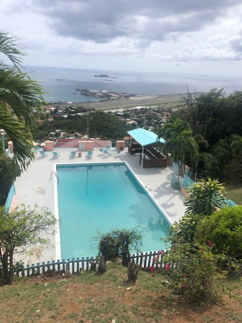 Great Opportunity at TERRIFIC price Middle floor unit in Poinsetta Bldg. Great location just minutes from Town, Airport and University Building. Expansive panoramic views over airport, harbor, and ocean and islands. Enjoy beautiful sunsets in the evening. Pool and Laundry on premises.Interior needs finishing work so you can finish. out to your own individual taste.