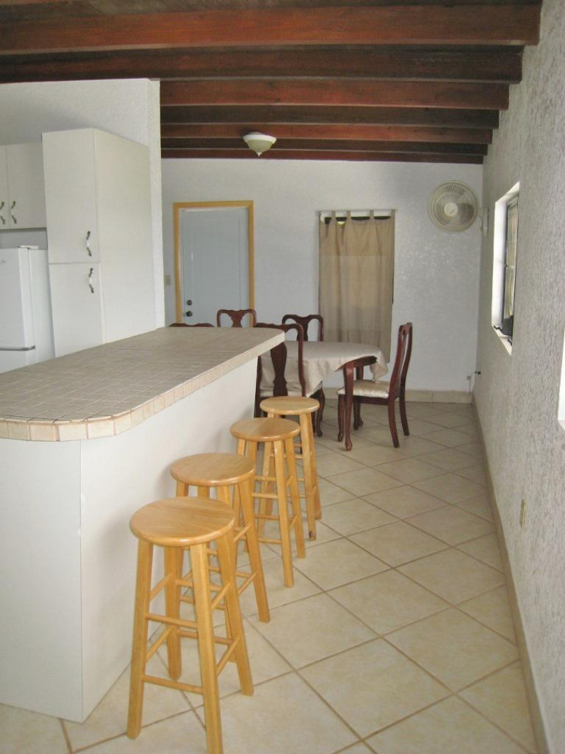 Cute furnished 1 bedroom apartment with LARGE bedroom, private porch. and W/D. Great views of Atlantic and down island. Generator!! Gas stove