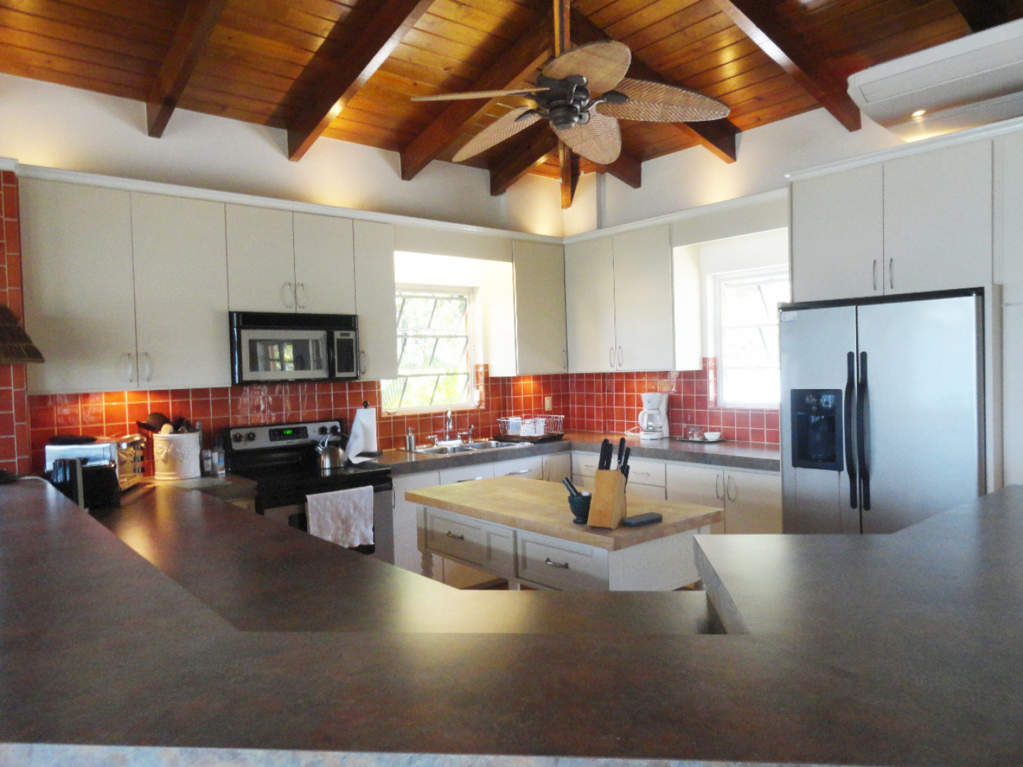 Lovely, spacious gated furnished home in exclusive Bakkeroe Estates with harbor view. Fully furnished with linens, dishes, etc. Split A/Cs, generator, wine cooler,dishwasher, walk-in closet, pool, gas grill. Rent includes twice monthly maid service,generator service and fuel, cable TV, pool and yard service. Additional maid service available at tenant's cost. 12 month lease.