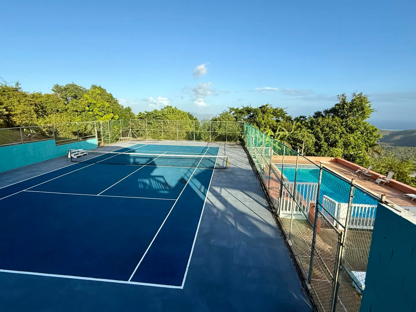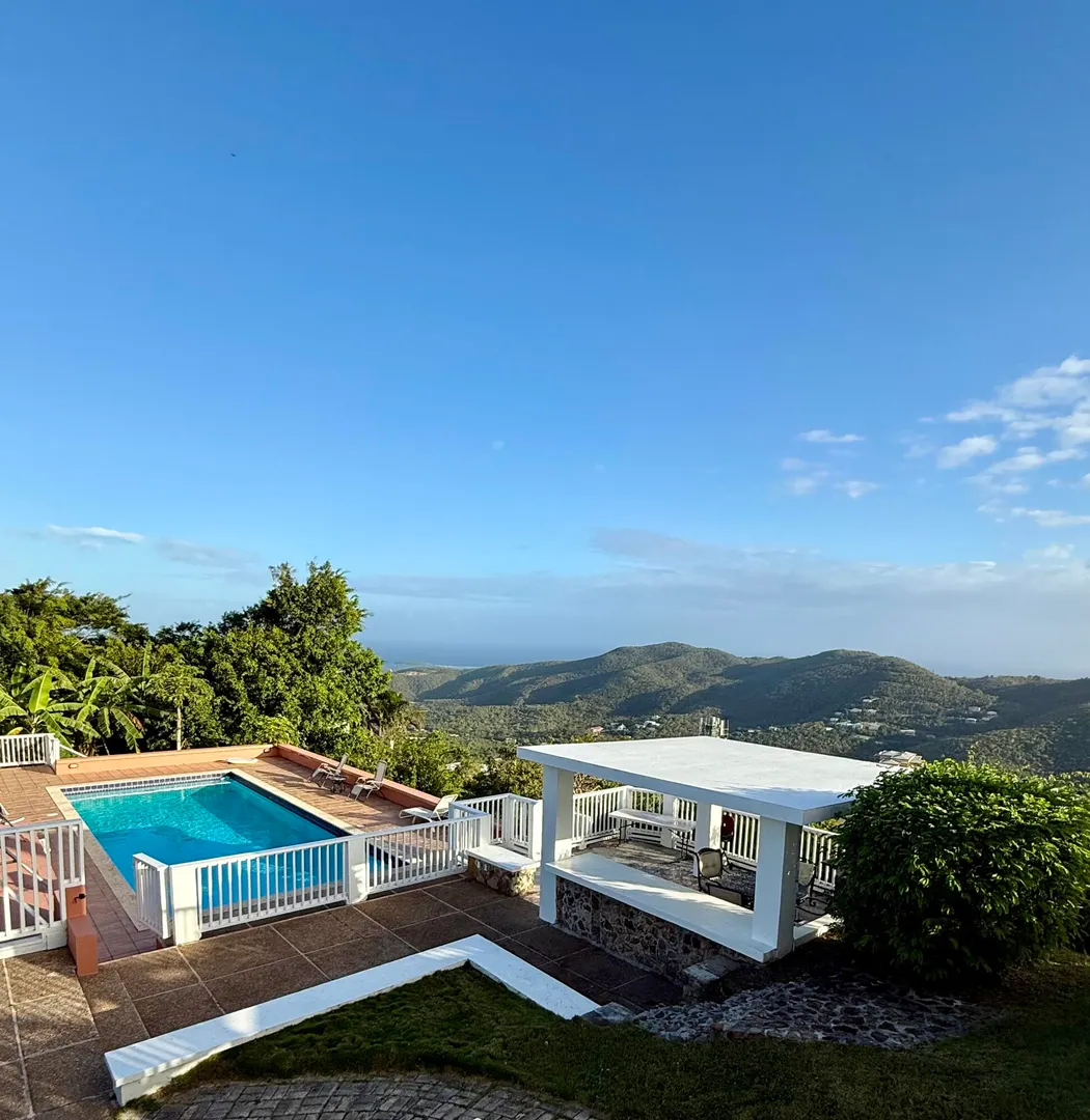 This beautiful Villa is located centrally in Wintberg, approximately 10 minute drive to town, 15 minute drive to Red Hook and Havensight. The Luxury property that comes with some incredible amenities such as private pool and tennis court, lots of outdoor patio space, impeccable (sunset) views overlooking the harbor and town. The main house has 3 bedrooms and 3.5 bath.The one bedroom studio bellow the main house is perfect for visitors.Equipped with and automatic generator, washer and dryer, this property is move in ready.The piano and pool table makes it perfect for entertaining.Pets accepted.Schedule your viewing now.