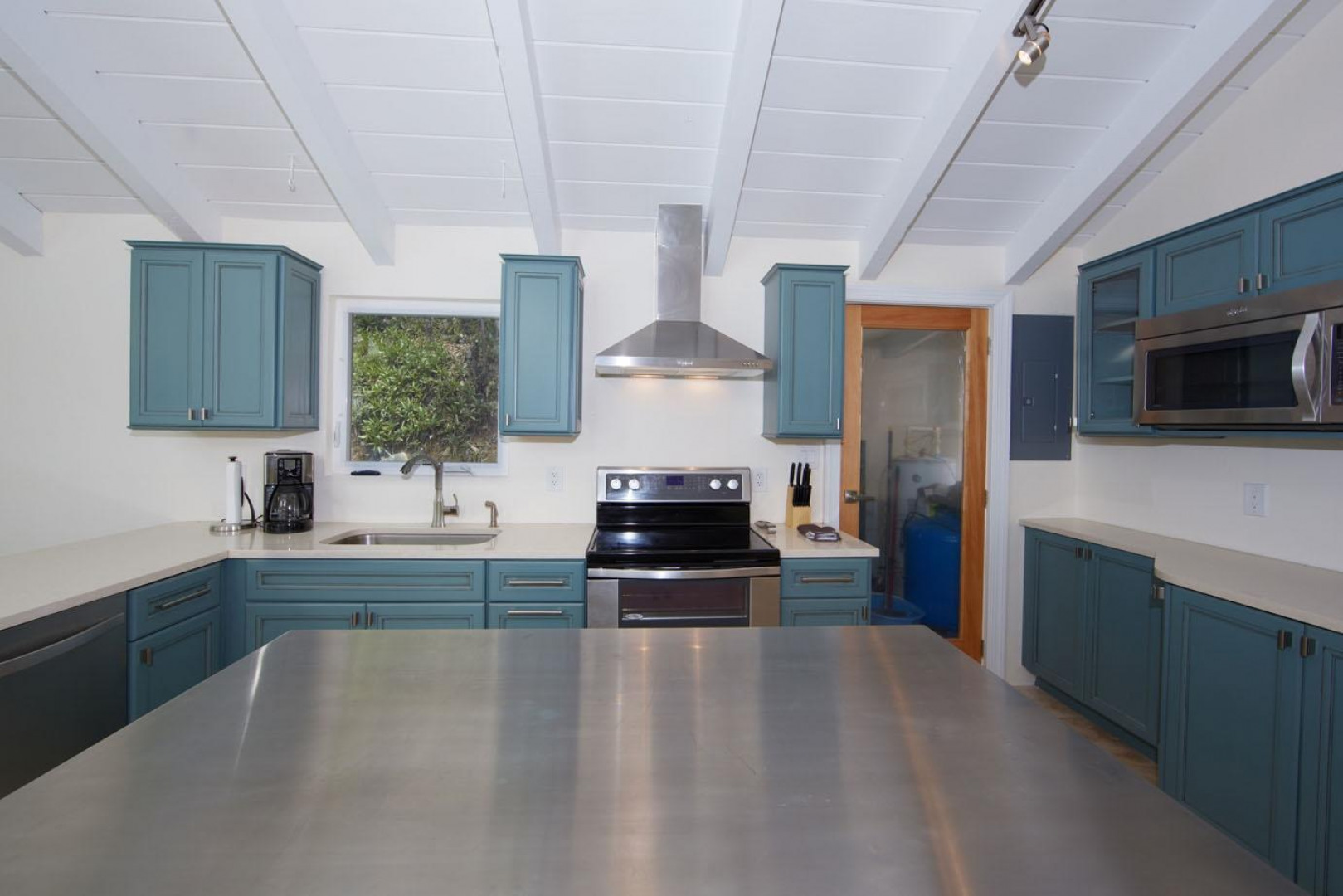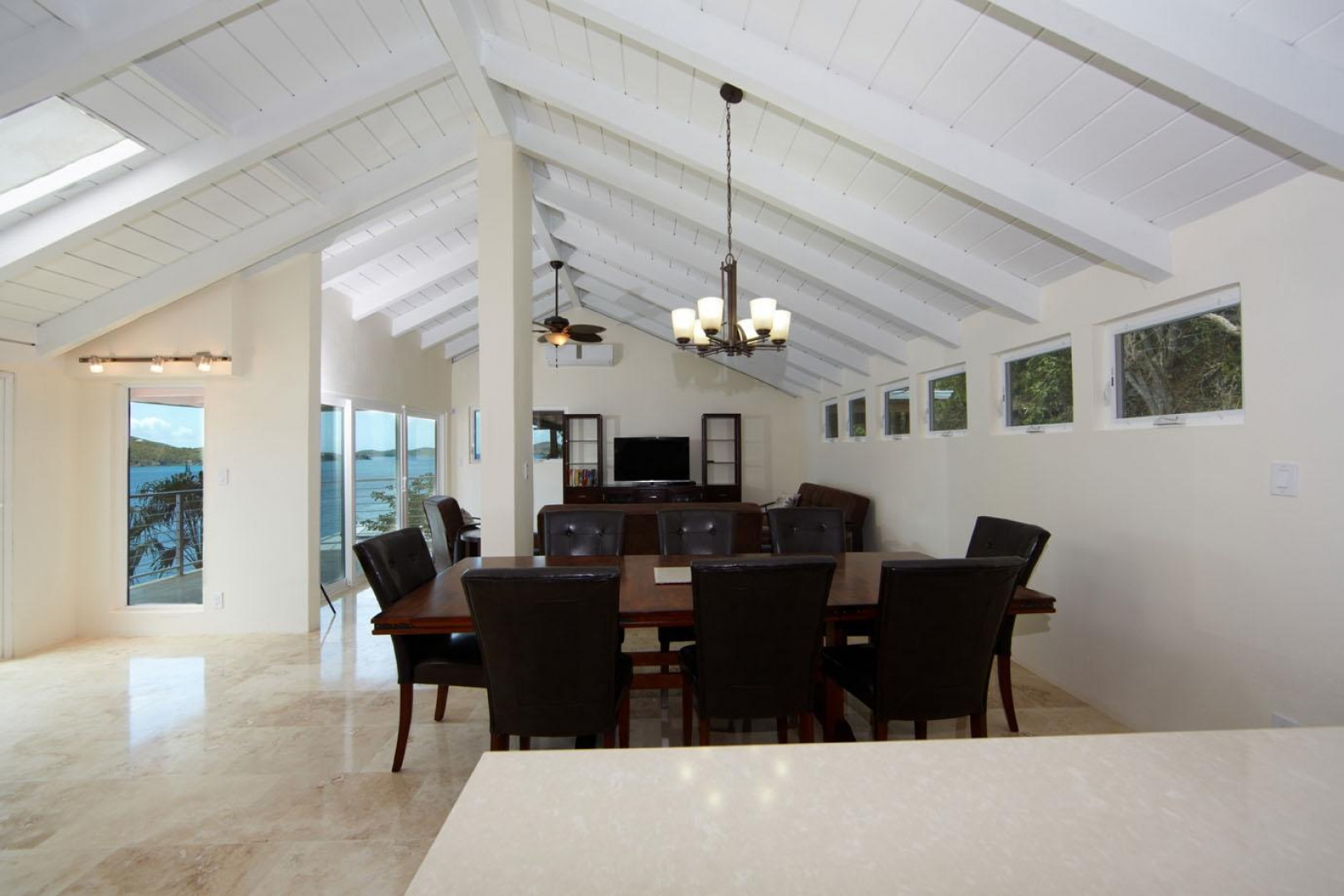 Great sleek looking Villa fully updated. Three bedrooms, 3 baths. Washer/Dryer. Furnished. At the foot of the driveway are the stairs that lead down to the white sandy beach on Magens Bay. Move in ready... just bring your clothes, computer, sundries.... but most of all your swim suit as the beach entrance is at the foot of the driveway... You'll love living here. Look at Photos - all updated interior.