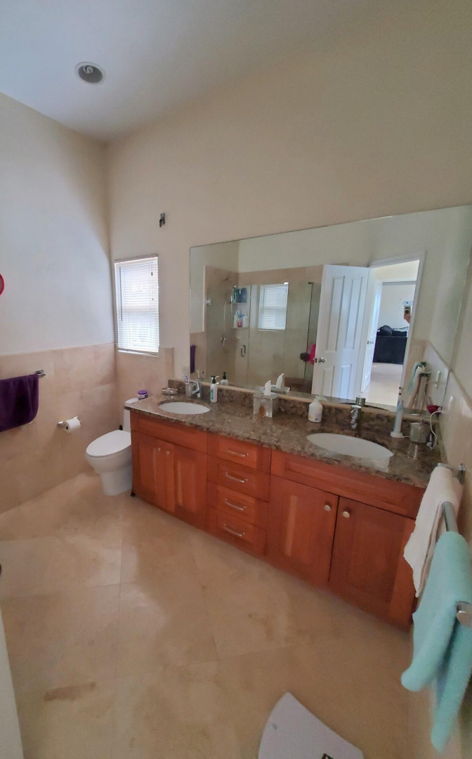 Perfectly maintained 3 bedroom house, top floor unit in a gated community in sought after Estate Peterborg. Enjoy your day on the huge porch facing both Magens Bay and the Atlantic Ocean. There is an auto generator, your own cistern, separate electric meter, gas stove and gas dryer. NO pets.