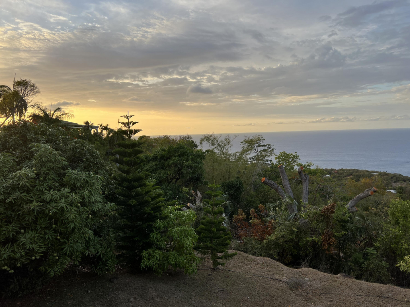 Free-standing, solid concrete construction 4 bedroom, 3 bath home (plus separate office) is located on the quiet northside. Back Up Generator, plenty of parking is move-in read. The lot is perfectly situated at a quiet, end-of-the-road location highlighting mango and avocado trees with nice grassy area and views of Megans Bay and beyond. Exterior porch wraps around from the kitchen to the living room for you to enjoy the views, breezes and beauty of the Northside. See supplement for key amenities list.