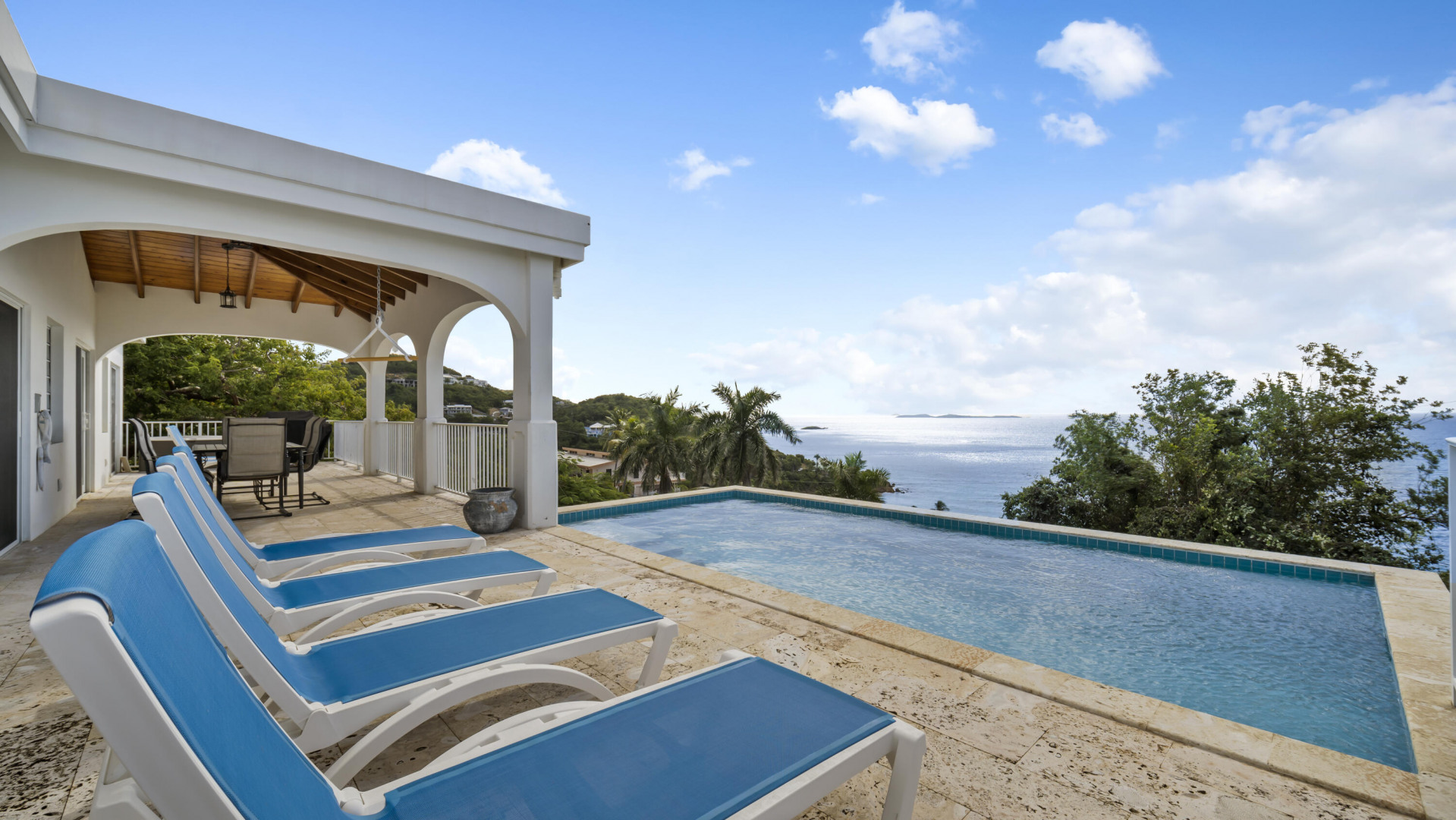 This light, bright Bakkeroe delight with views overlooking Morning Star Beach & extending out to the vast Caribbean Sea offers island appeal indoors and outdoors. 2 charming bedrooms & bathrooms on the main floor with a 3rd Bedroom & great room with exercise area below. Turn the lower level into a comfortable 1 Bedroom/1 Bathroom unit with the addition of a kitchen. Solid construction, clean finishes & tasteful furnishings on the inside & cool tropical breezes & a beautiful refreshing pool & deck on the outside. A short walk to the Westin Resort with its restaurants, beach & amenities. The appeal of this property is magnetic.