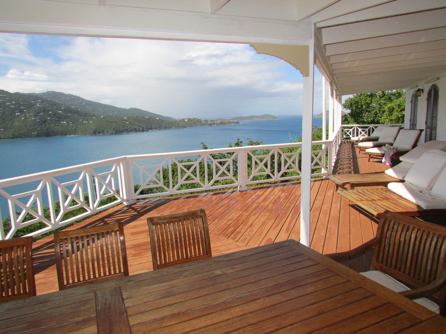 Walk in to this luxury home and you're beckoned outdoors to the visual feast of world famous Magens Bay. Sweeping vistas frame your kitchen and living room enjoyment, where signature finishes spell high-end tropical living. Two bedrooms in main home, third bedroom outside and downstairs, the fourth in a separate cottage. Splendidly remodeled in 2009. Hot tub on deck.Main residence, solid concrete. Cottage bedroom, wood. All appliances, GE Profile, including built-in microwave. Disposal in kitchen Generator is 17 KW automatic, powers entire house Two septic tanks, one for main house, one for the bedroom cottage Central irrigation system sustained by a grey water tank Split AC systems throughout the house and the cottage