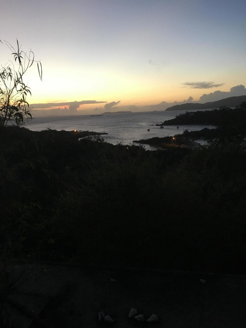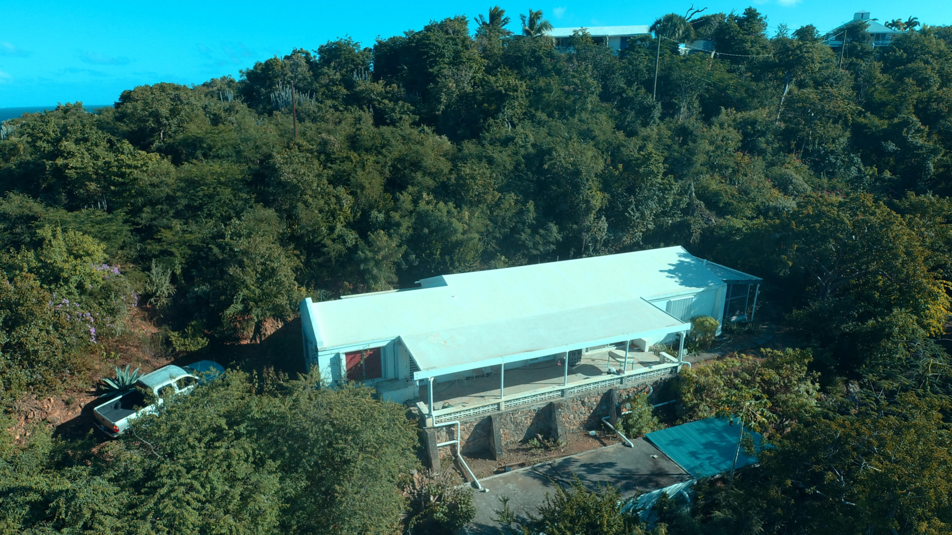 Cambridge House, Water Island. 2BR/2BA house (1594 interior sq ft) on .65 acres moderate slope lot. Screened in porch (170 sq ft) and covered porch (462 sq ft). Roof just Top Coated. 18,000 gal cistern. Overlooking Flamingo Bay. Private location.