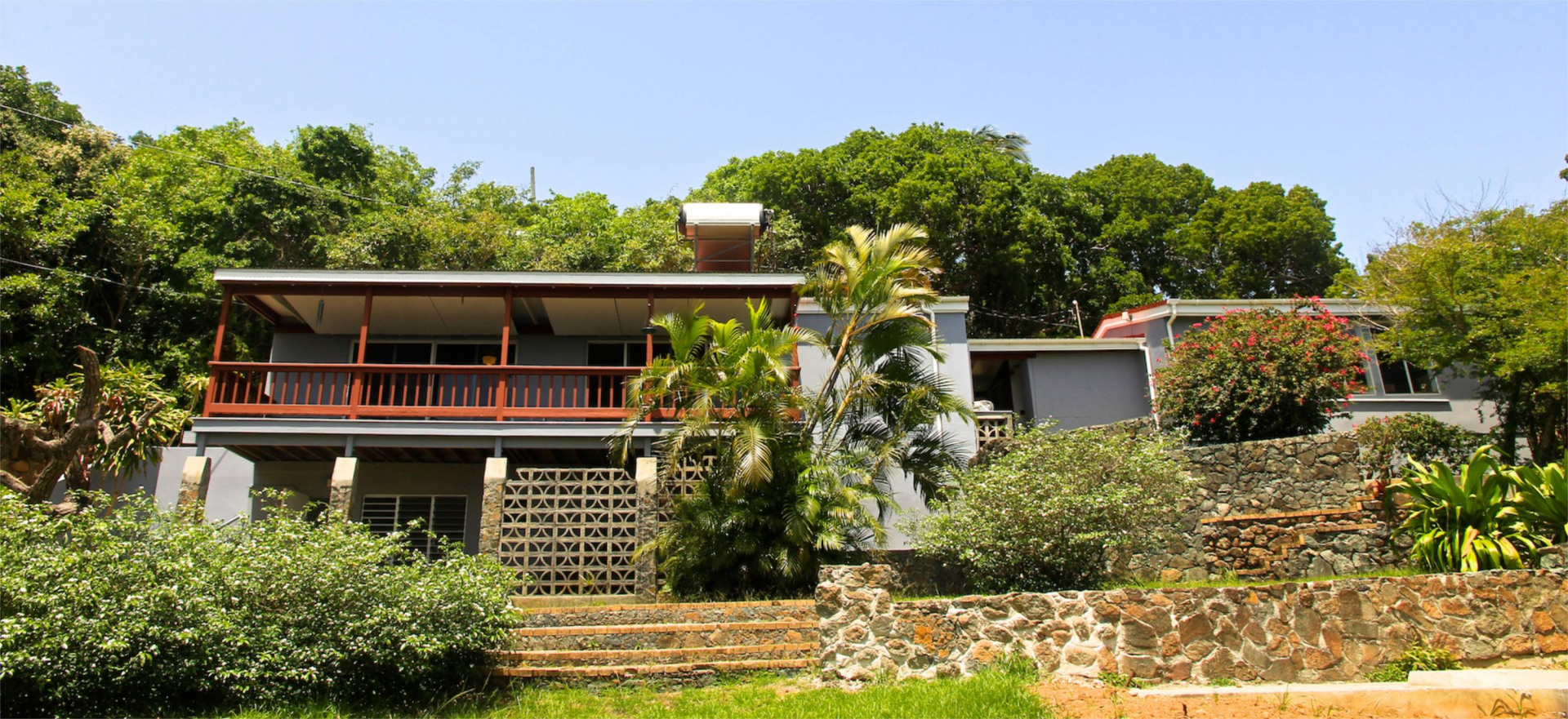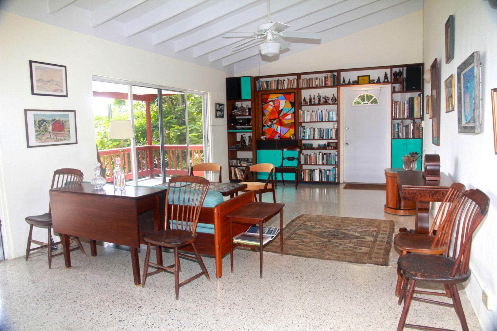 Comfortable Island style home offers great location! Downstairs bedroom with full bathroom, separate studio cottage, lots of stone work, gentle slope, views, breeze, minutes to town or Magens Bay. Now including Double Driveway Access!! Make a deal on adjoining lot 1-P Rem, consisting of 1.587 acres, more or less (MLS 13-1315) and buy entire property. Tax bill includes Parcel 1-P RemNew OLG Drawing is being prepared to show additional acreage. See new Survey Drawing (not an OLG Drawing) under Documents Buyer to verify square footage.