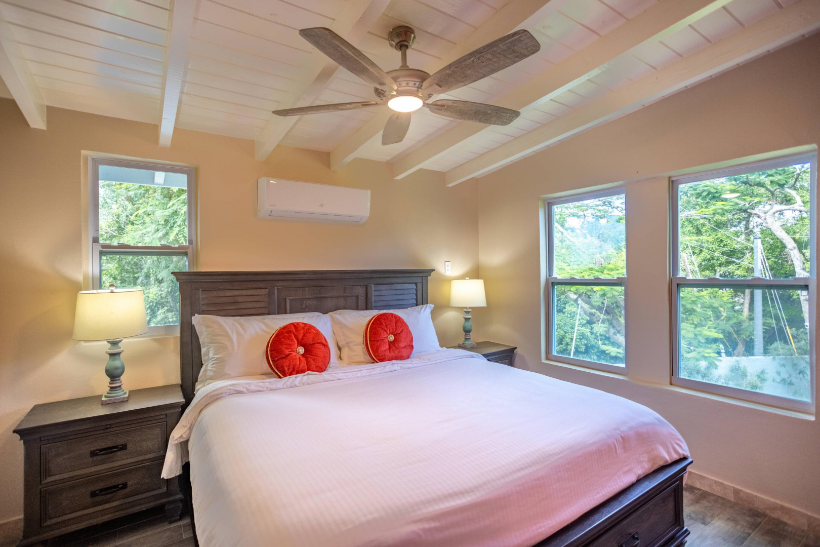 Mafolie Gardens is a stunning 11-bedroom, 12 1/2-bathroom, turnkey property located in a gated community on the North Side of St. Thomas with a short drive to Magens Bay Beach and Hull Bay. It boasts a family-friendly layout, pool, and spacious yard for outside living. Mafolie Gardens is perfect for indoor or outdoor entertaining. There are four self-sufficient units that were renovated with warm, inviting colors and nicely appointed furnishings. Each unit features modern amenities, ensuring comfort and convenience for guests or family members. The property's lush landscaping and stunning views of the surrounding area make it a true tropical paradise, ideal for relaxation and enjoyment. Each unit caters to extended families or vacationing guests.