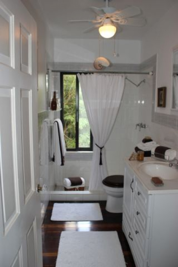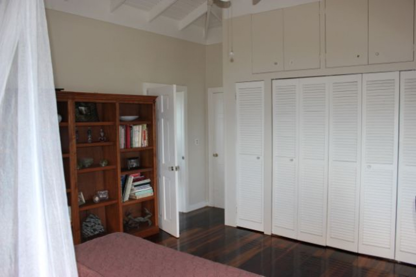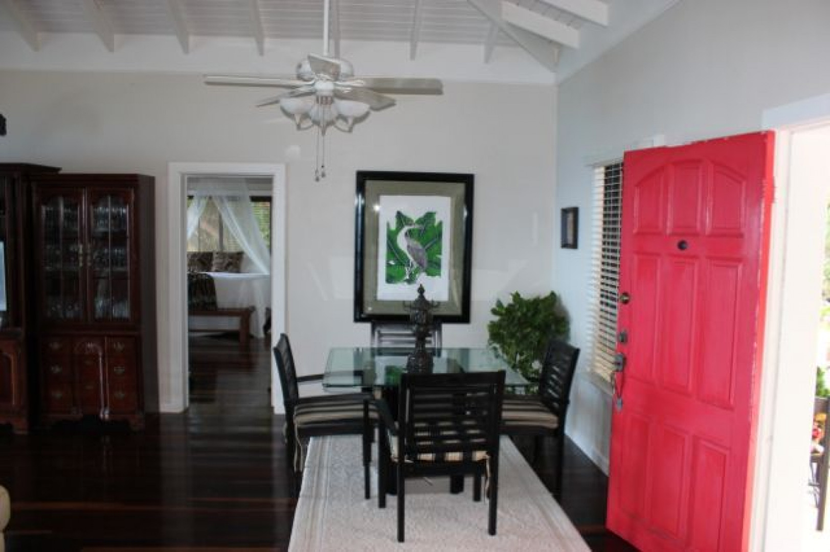 A most charming home w/ French West Indies inspired architecture, concrete, w/ 2 bedrooms, 2 baths in main home, gleaming Brazilian hardwood floors, high beamed ceilings throughout, covered galleries, French doors, shutters, huge luxury master bath w/ whirlpool + sep. shower. Apartment downstairs and separate cottage provides $2050/month income. End of road lushly landscaped .89 acMain house cistern is about 40,000 gals in two parts. The cottage has its own 7,000 gallon cistern.