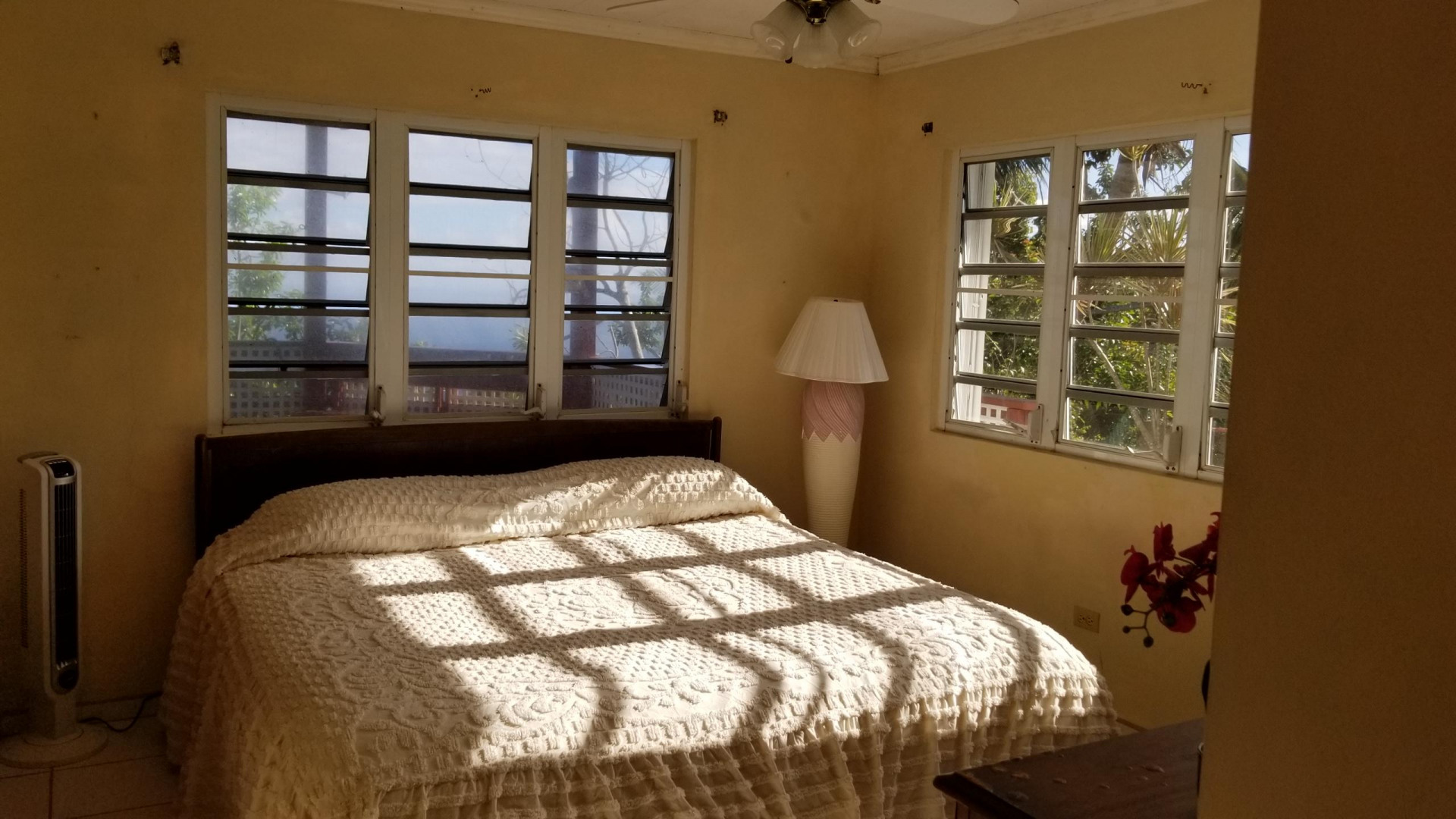 First time ever on the market, this sweet home sits on a mostly flat 1/4 acre and has a grassy yard. Masonry home, NO DAMAGE in hurricanes, foot print is about 1600 s.f. upstairs has 3 bedrooms, 2 baths, large living and dining and kitchen, covered gallery, downstairs with an outside entrance is a bedroom, bath and laundry room. Views to the Brasses, lovely cool breeze and quiet neighborhood. Buyers, be ready with your pre-qualification letter as this will not last long in this market.Bring this home up to today's decor and do your own HGTV makeover! The concrete 'bones' of this home can't be beat so you start with a really solid home, great roof, been through 2 Cat-5 hurricanes with NO damage, just needs some updating to make it your own! Property has a 5 year transferable termite warranty commencing April 2017.