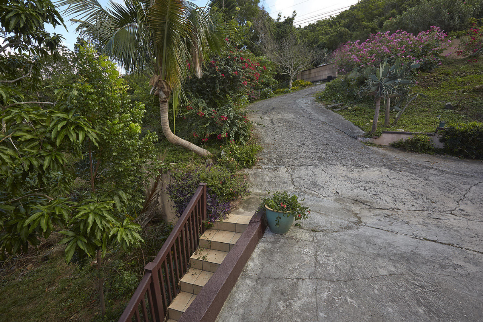 AWESOME LOCATION!! Private and serene, yet convenient to Red Hook, Town and Havensite. 5 minutes to Magen's Bay! Solid masonry 3/2 home with 2/1 apt on a gated, mature landscaped half acre. Beautiful fruit bearing papaya, mango, coconut trees - and flowers everywhere! Come take a look today!