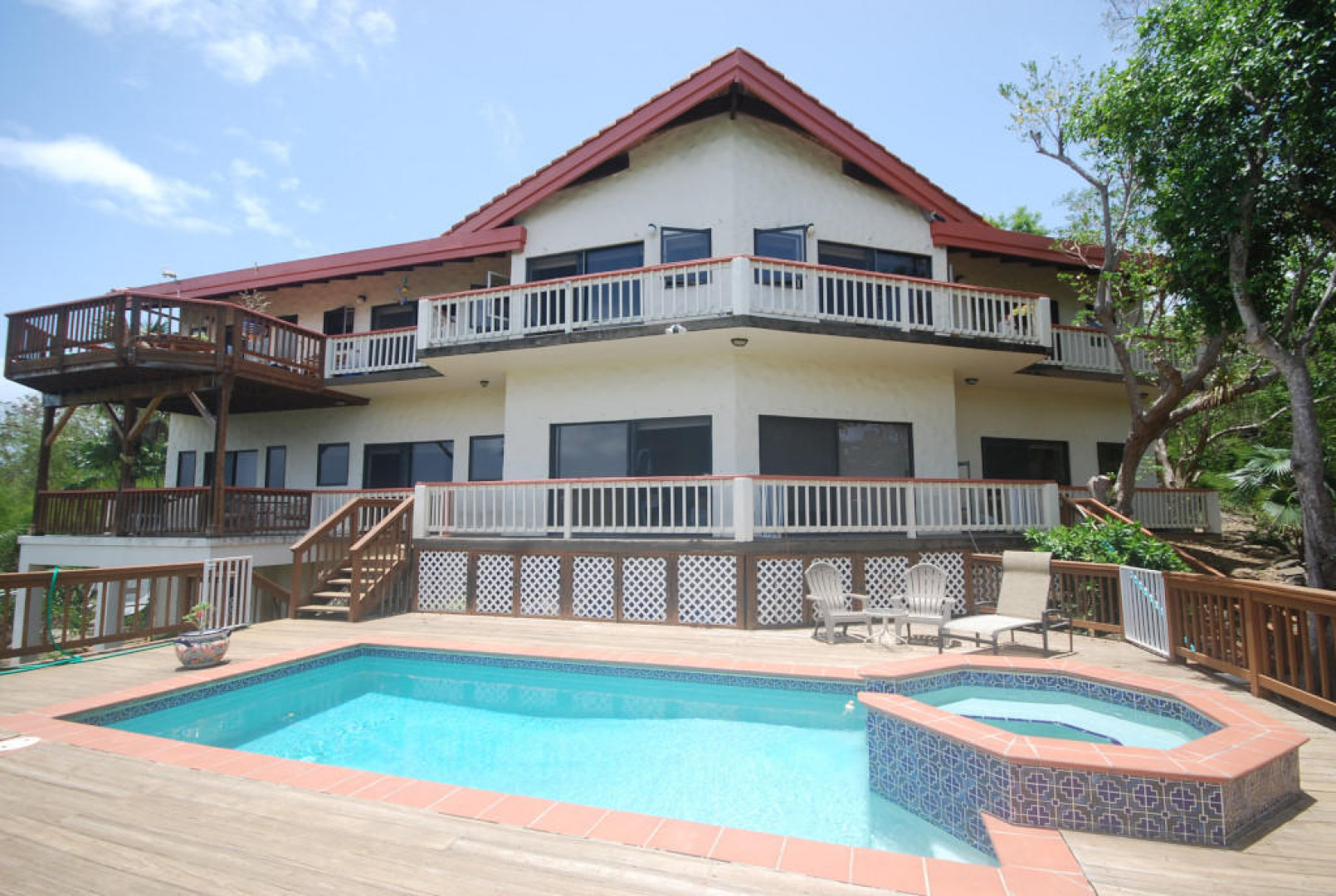 Here is your perfect opportunity to own a home in Paradise! This hurricane damaged home is ready for you to place your finishing touches to this once beautiful home and make it a wonderful home again! $27k of Hurricane damage remediation already completed! Roof repairs are currently underway! All that will be needed is sheet rock, paint, some flooring, diamond brite for the pool and possibly a new kitchen. This is a great deal considering the home was under contract 3 days prior to the Hurricanes for $750k. You will not find another home in the gated golf community of Mahogany Run that is nearly 4000 sq ft, 4 bed, 3.5 baths at this price! Our loss is your gain! Seller is licensed VI RE BrokerPerfect family or vacation home with 4 large bedrooms and 3.5 baths all in the same structure! Located in gated Mahogany Run Golf neighborhood, this house has beautiful views of the ocean and the golf course. Open floor plan with lots of natural light and beautiful wood work. Large Deck area with a large pool that overlook the scenic 'Devils Triangle' and the Ocean. Upstairs has vaulted ceilings, the kitchen, dining room, living room, a half bathroom in the foyer, master bedroom, master bathroom with double sinks and a walk-in glass block shower. Kitchen has a center island with 2nd sink, a double oven, 5-burner gas range, a breakfast bar and views from every window. Upper deck extends the length of the house and can be accessed through several different glass sliders. Downstairs has high ceilings throughout with a built-in office area, a second fridge (for easy access to the pool!), an additional 3 bedrooms, 2 full bathrooms and the laundry room. All four bedrooms have split A/C units. Property is on a quiet private street, with easy access, a large flat concrete driveway and level entryway to the front door. Fully fenced rear yard perfect for dogs. Solar panels for net metering and solar hot water heater mean low electric bills, UV light water filtration system, two cisterns. 40 KW Automatic Diesel Generator. Pool deck gets the afternoon sun and you can hear the waves crashing below during north swells. Great all-around house, easy living, in good condition, must see! Seller is a licensed US Virgin Islands Real Estate Broker.