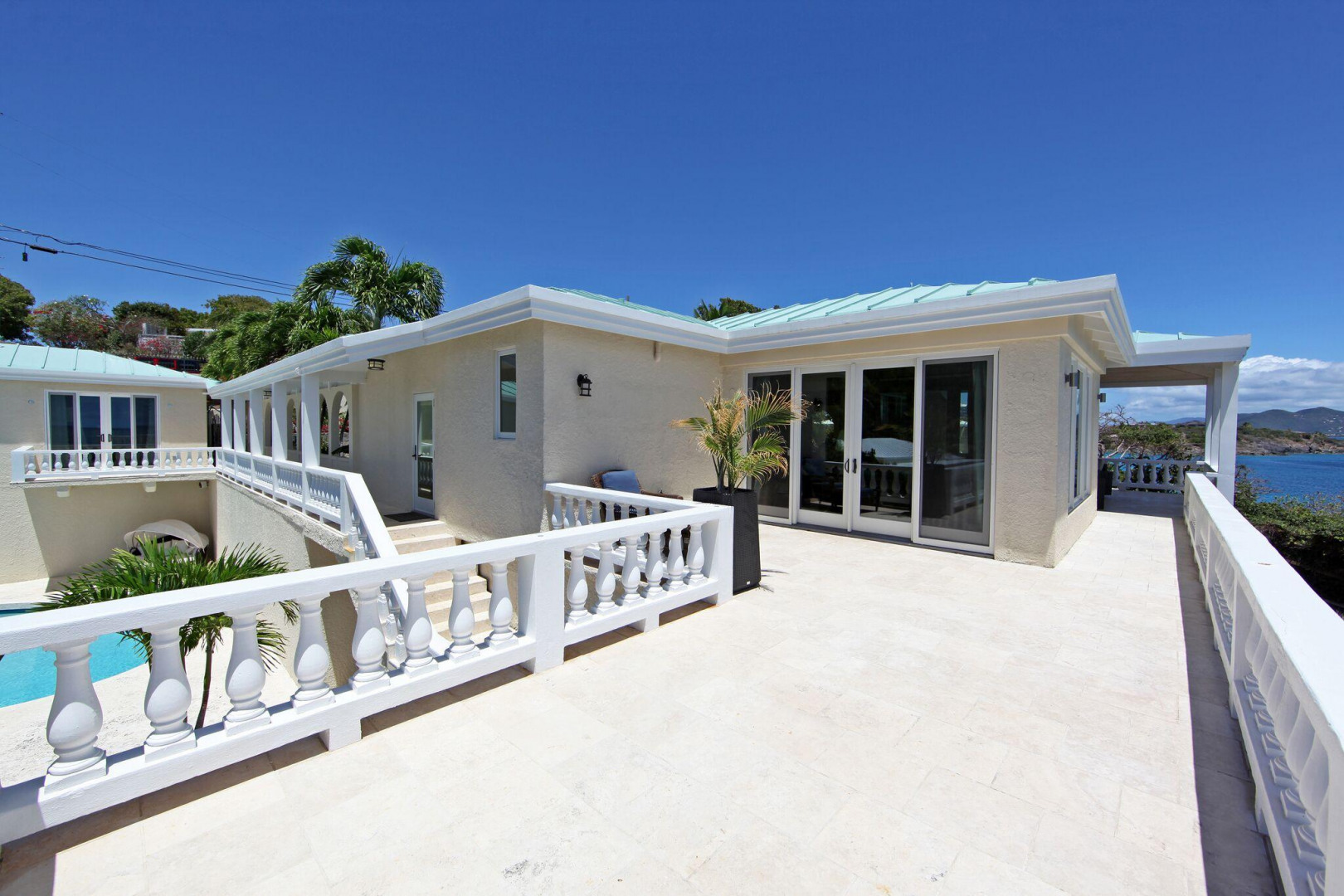 Stunning waterfront location with gorgeous private beach and private swimming platform on the Deck Point peninsula. Fantastic water views from every location of this spacious 5 bedroom, 4.5 bathroom home. This double gated Villa was completely and beautifully renovated in 2016! Please see supplement for complete list of numerous upgrades!Flat parking!Generator!Large deck with pool! Short walk to the St. Thomas Yacht Club! 8-8 ESTATE NAZARETH RENOVATIONS TO THE PROPERTY COMPLETED DECEMBER 2016 • Upstairs, all new doors and windows to hurricane compliant. No shutters needed. • All electrical, including the main feed replaced. • All plumbing pipes and fixtures replaced. • New tile in bathrooms. • New upstairs flooring. • New entry way. • New professional landscaping and irrigation system. • Custom made completely new kitchen with solid mahogany cabinets, granite countertops with custom designed island. • New Wolf and Sub-Zero appliances. • All new AC units. • New water pump, UV filters and purifier. • Both cistern drained, cleaned and re-sealed. • New covered patio. . • Surround sound system • Pre-wired for a camera security system. • Wi-Fi through out house. • All new light fixtures. Most are LED. • New ceiling fans. • Roof resealed. • All new paint. • Insulation added to the ceilings.