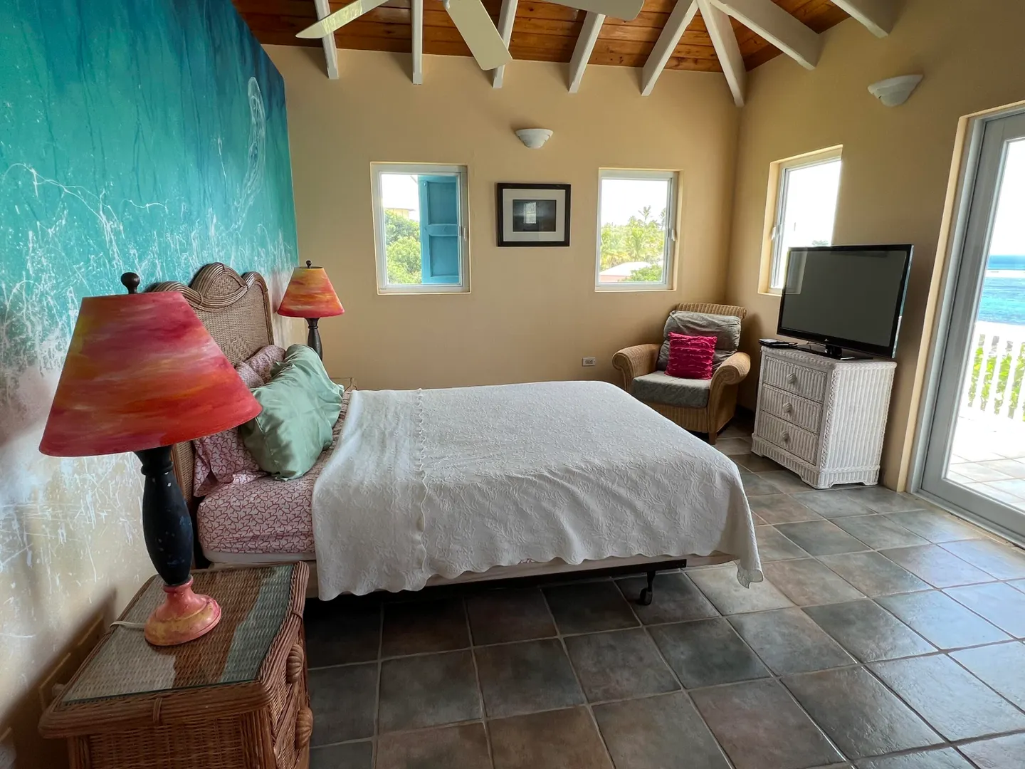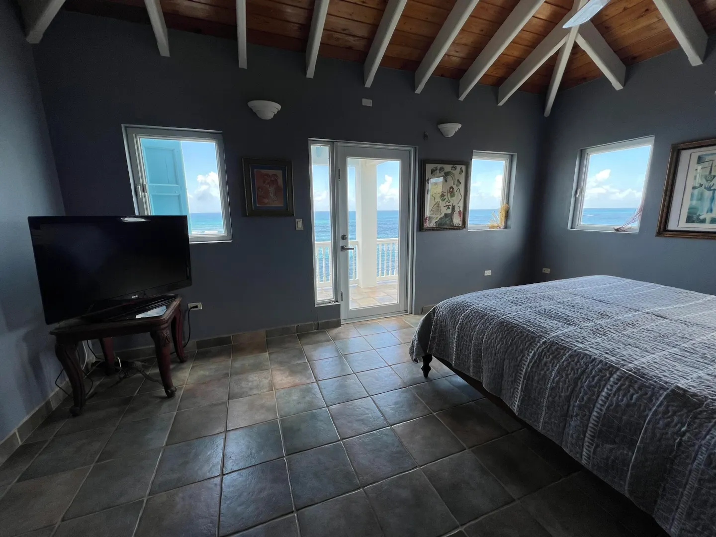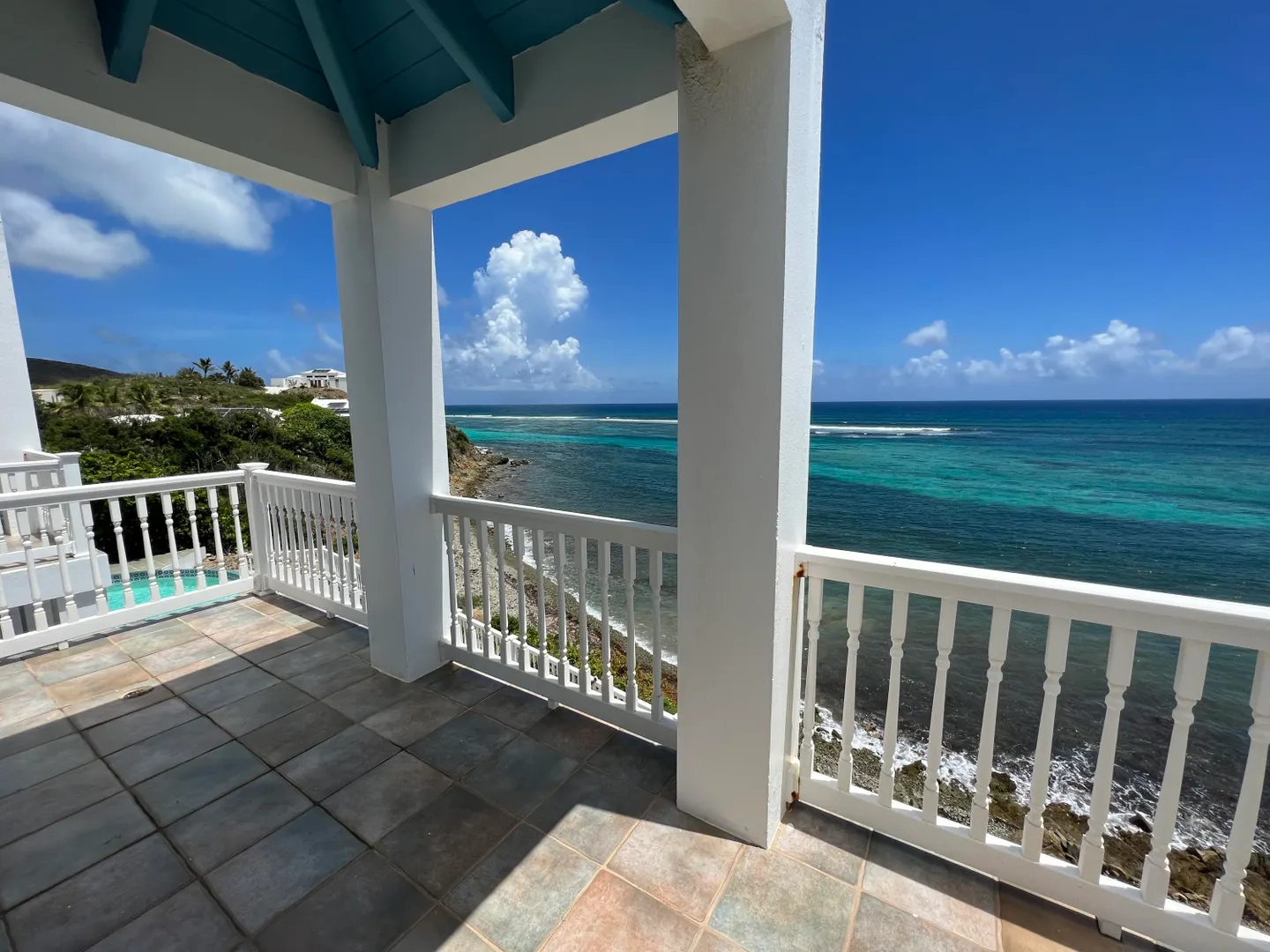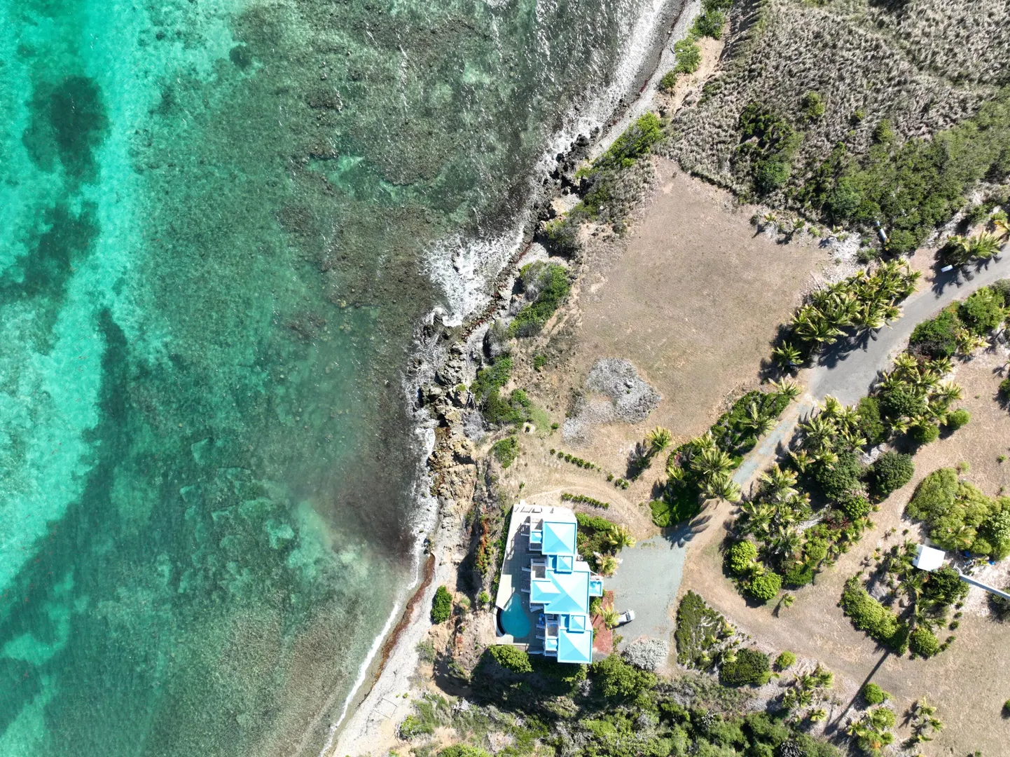 This spectacular 4 bedroom waterfront home w/4 en suite baths & pool is set on a bluff overlooking beautiful Rod Bay. The listing now includes 3 additional lots- the adjacent oceanfront lot & 2 additional ocean-view lots. The entire property consists of 2.72 acres total. It is beautifully landscaped w/ mango trees, bananas & other mature fruit & flowering trees. Sit on the wide patios to enjoy expansive sea views & refreshing Caribbean breezes from every room in the house and the melody of rolling waves & rocks that sing!The home's lower level features a remodeled kitchen w/new countertops & stainless steel appliances, custom mahogany woodwork & 2 spacious en suite bedrooms w/direct outdoor access to pool & yard- make them independent guest suite