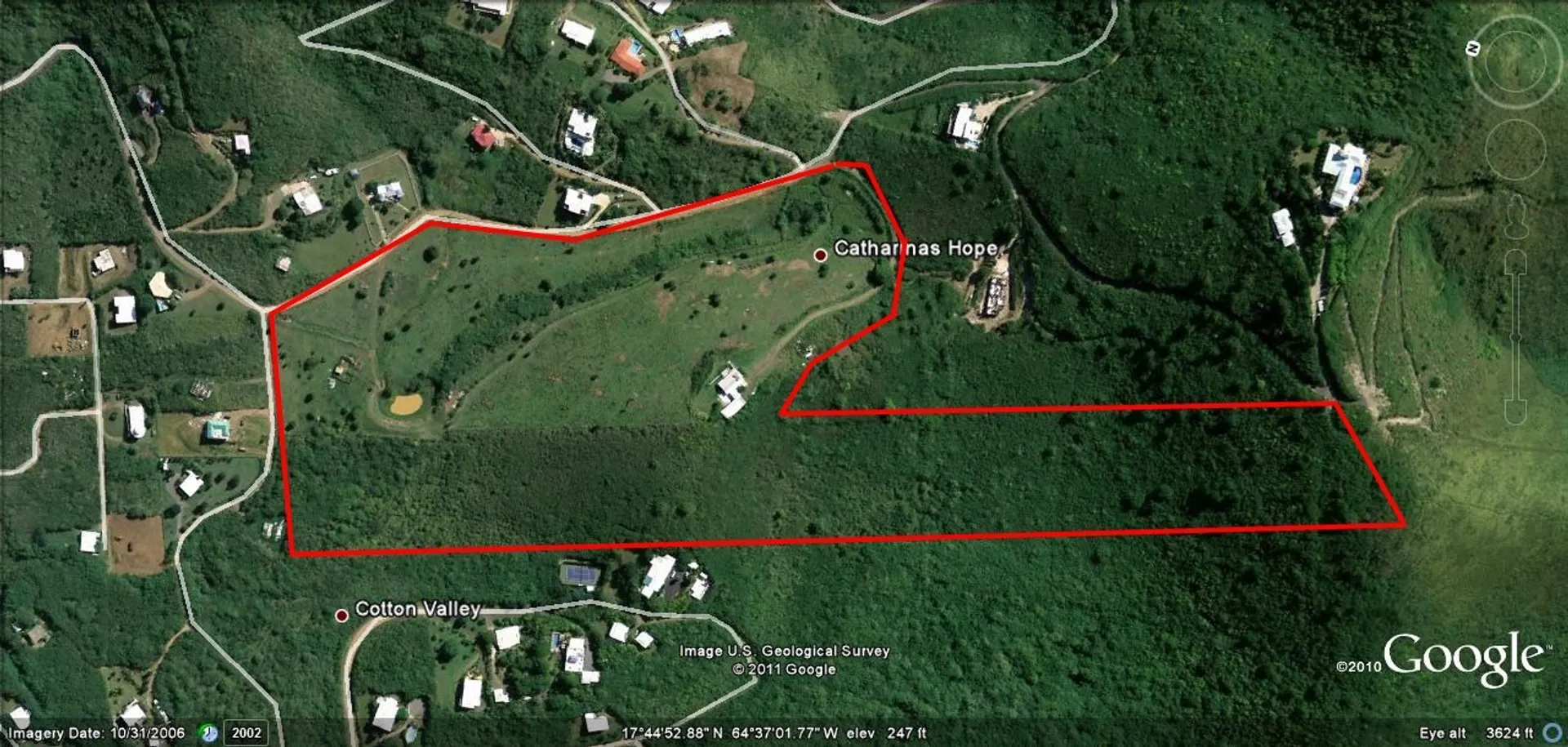 Amazing acreage with a 2 bedroom 2 bath house plus downstairs apartment already in place! 37+ ocean view acres just 10 min from Christiansted. Fantastic sea views from the entire property. Perfect for a private Estate or to further develop into a residential community. Two retention ponds are located on the property along with an excellent producing well. Completely fenced in with 3 separate entrance gates. Located in a well established residential neighbor just a short distance from east end restaurants and beaches.