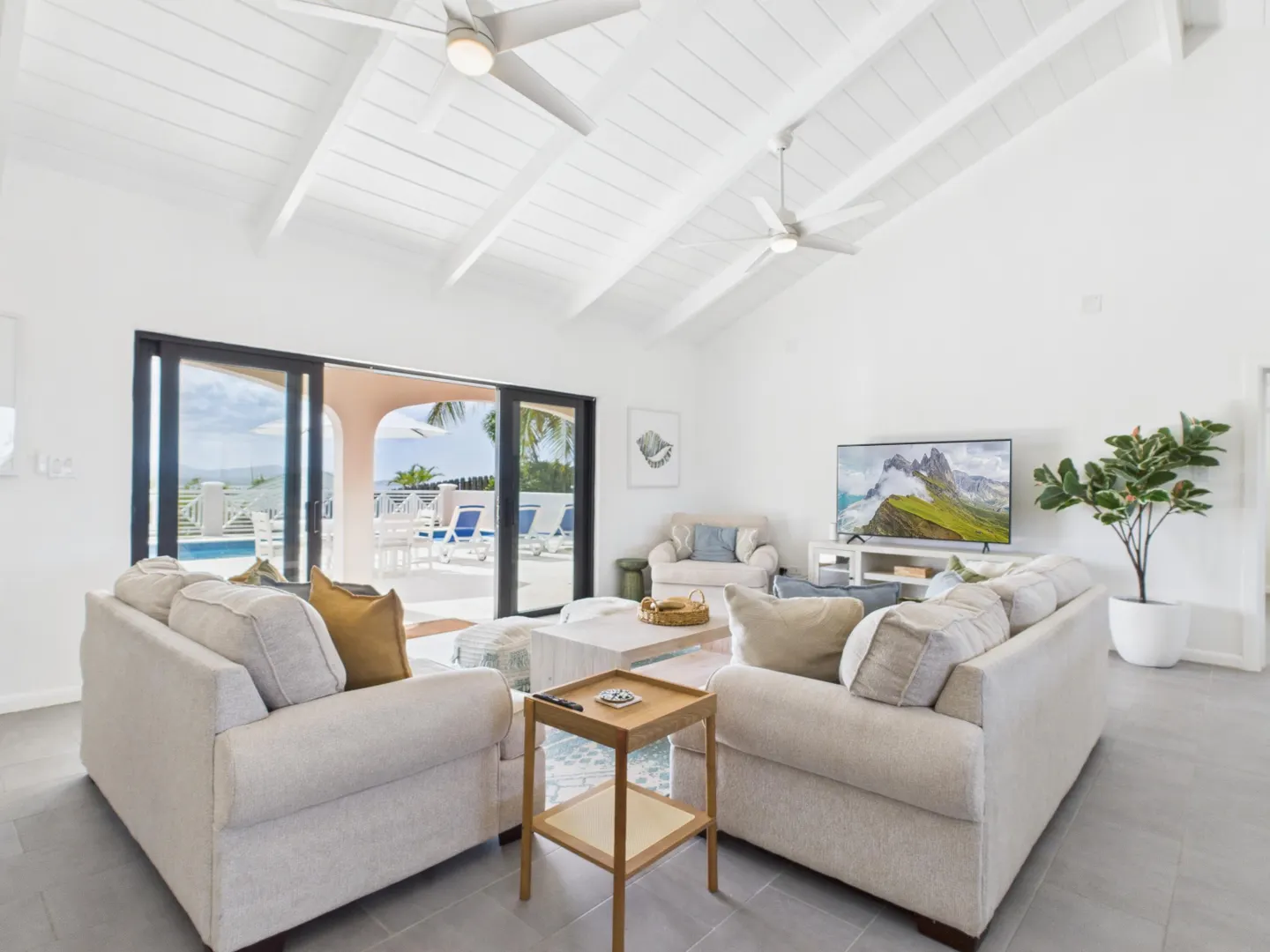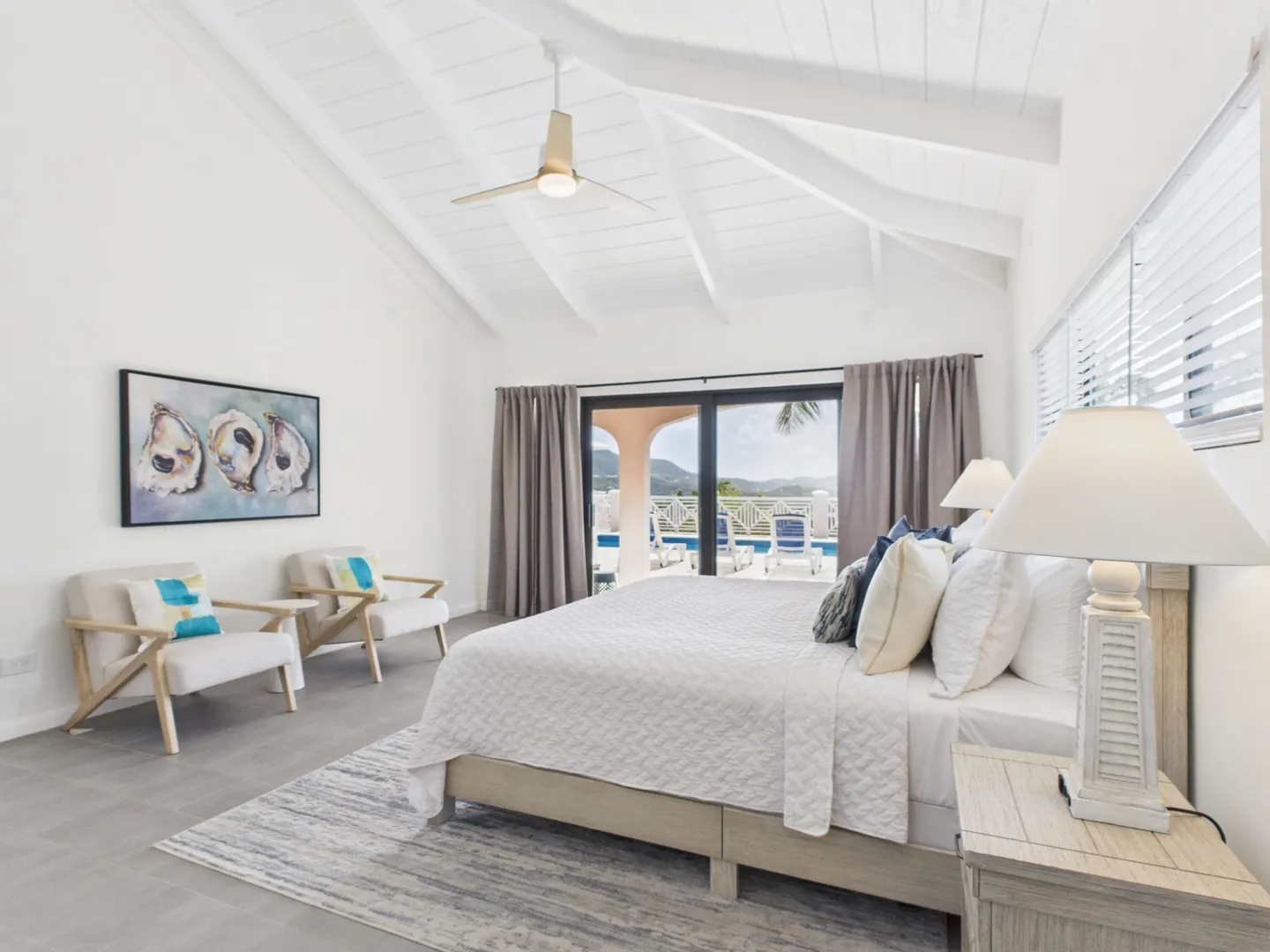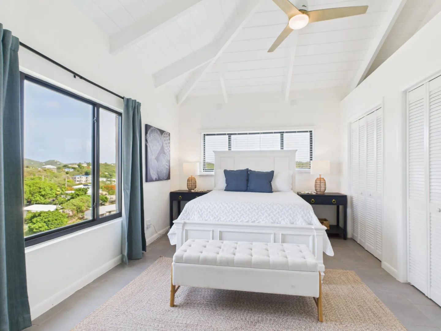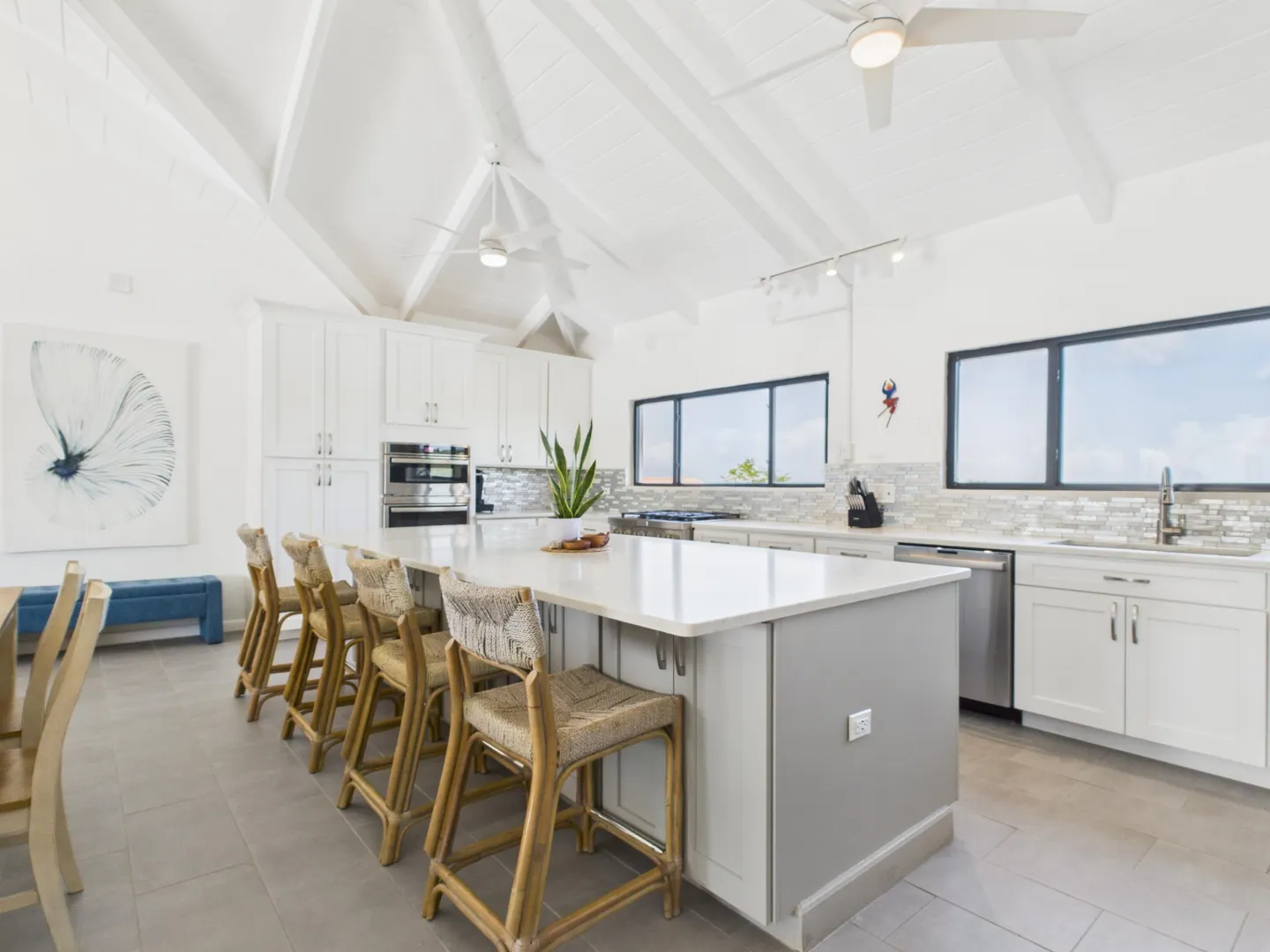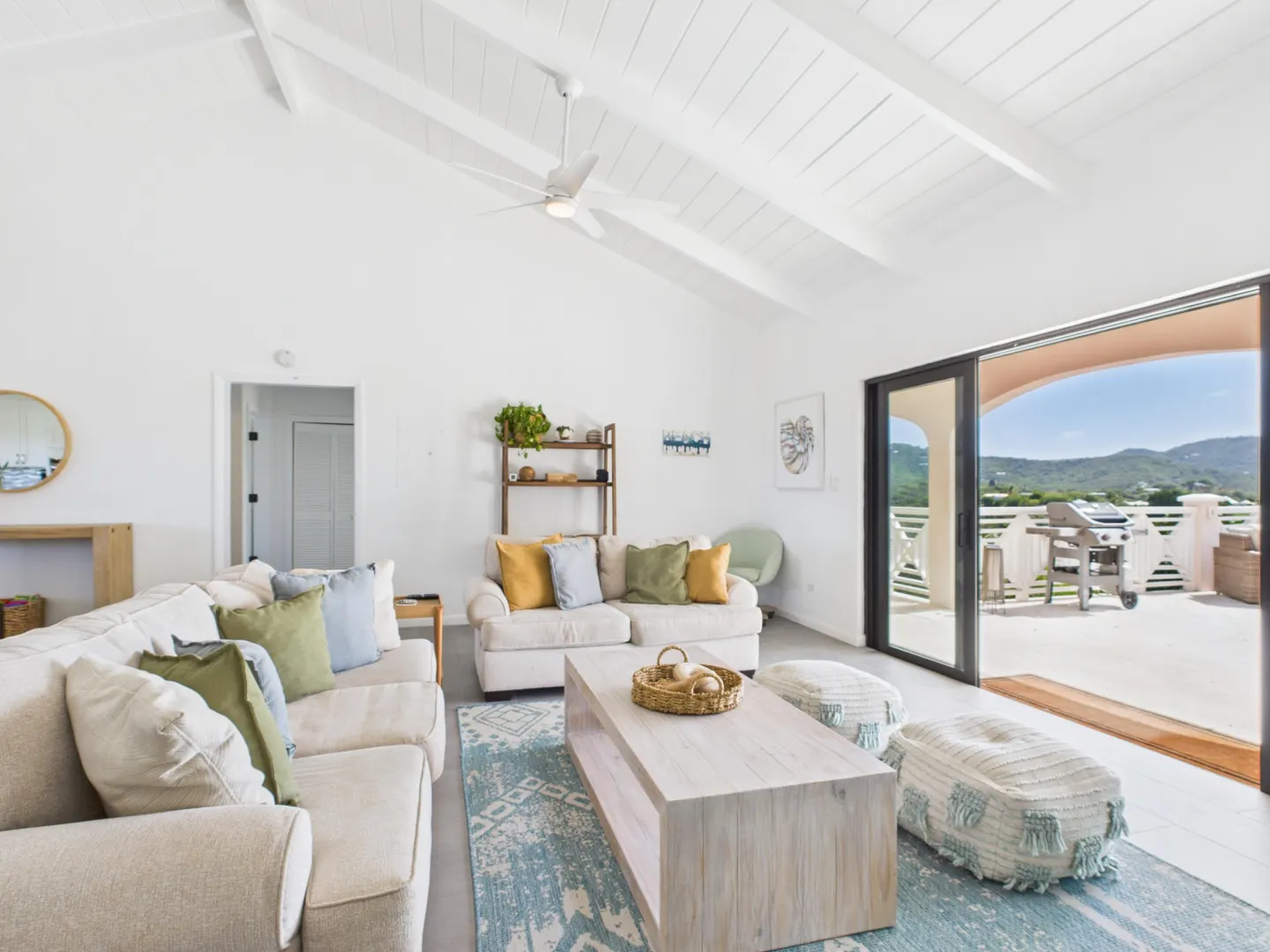 This luxurious home is located in the premier gated beach community of Shoys and features 3 bedrooms and 3 baths upstairs, plus a private 1-bedroom apartment with separate driveway below. Enjoy panoramic views of Christiansted town and The Buccaneer golf course. The interior boasts a spacious open floor plan and a beautiful chef's kitchen with views of Buck Island and the marina. The outdoor living areas seamlessly connect to the interior, creating the perfect setting to relax or entertain. The entire house has been updated and notable features include impact glass windows and doors, modern furniture and an electric gate. Ideally situated just minutes from Shoys Beach, Green Cay Marina, and historic Christiansted with fine dining, shopping, and culture nearby.Fully updated home located in the sought-after gated beach community of Estate Shoys, one of St. Croix's most desirable neighborhoods.