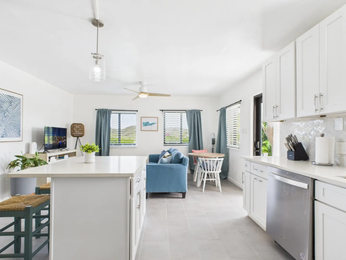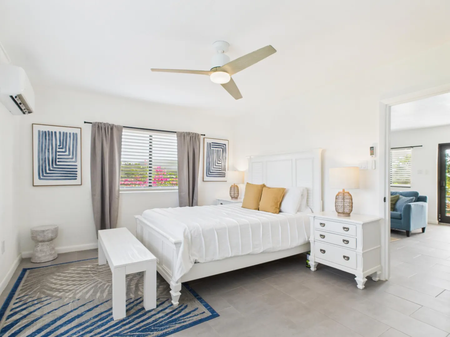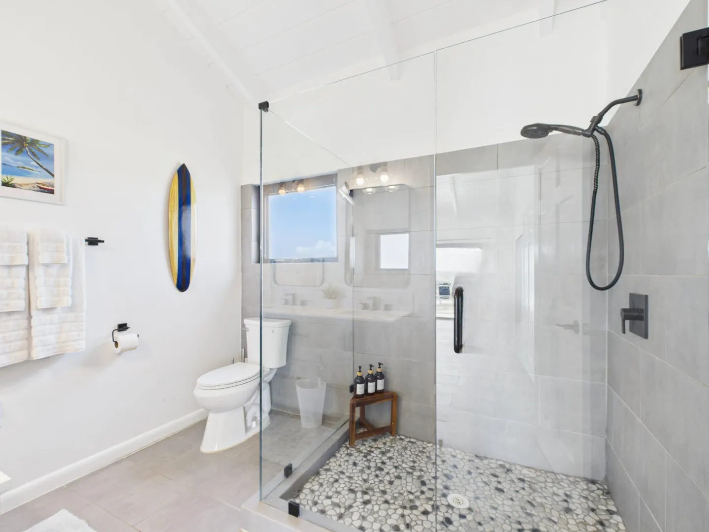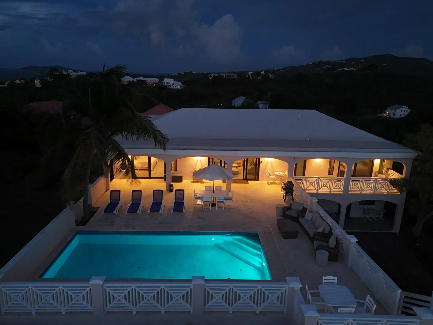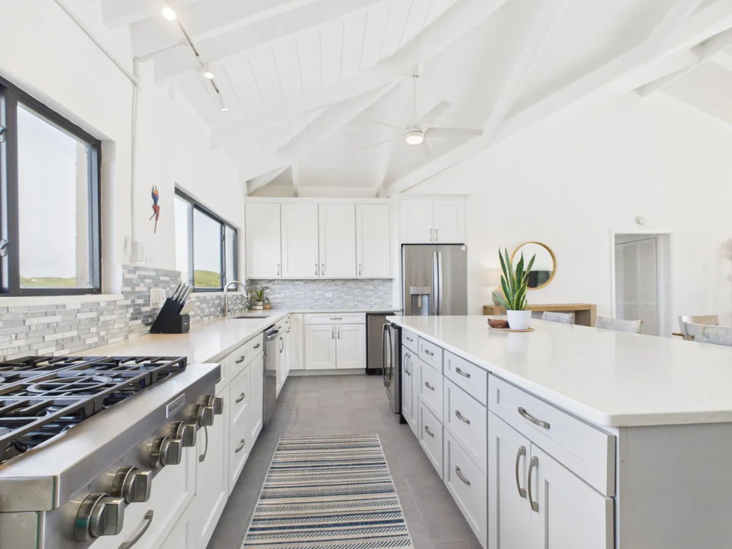 This luxurious home is located in the premier gated beach community of Shoys and features 3 bedrooms and 3 baths upstairs, plus a private 1-bedroom apartment with separate driveway below. Enjoy panoramic views of Christiansted town and The Buccaneer golf course. The interior boasts a spacious open floor plan and a beautiful chef's kitchen with views of Buck Island and the marina. The outdoor living areas seamlessly connect to the interior, creating the perfect setting to relax or entertain. The entire house has been updated and notable features include impact glass windows and doors, modern furniture and an electric gate. Ideally situated just minutes from Shoys Beach, Green Cay Marina, and historic Christiansted with fine dining, shopping, and culture nearby.Fully updated home located in the sought-after gated beach community of Estate Shoys, one of St. Croix's most desirable neighborhoods.