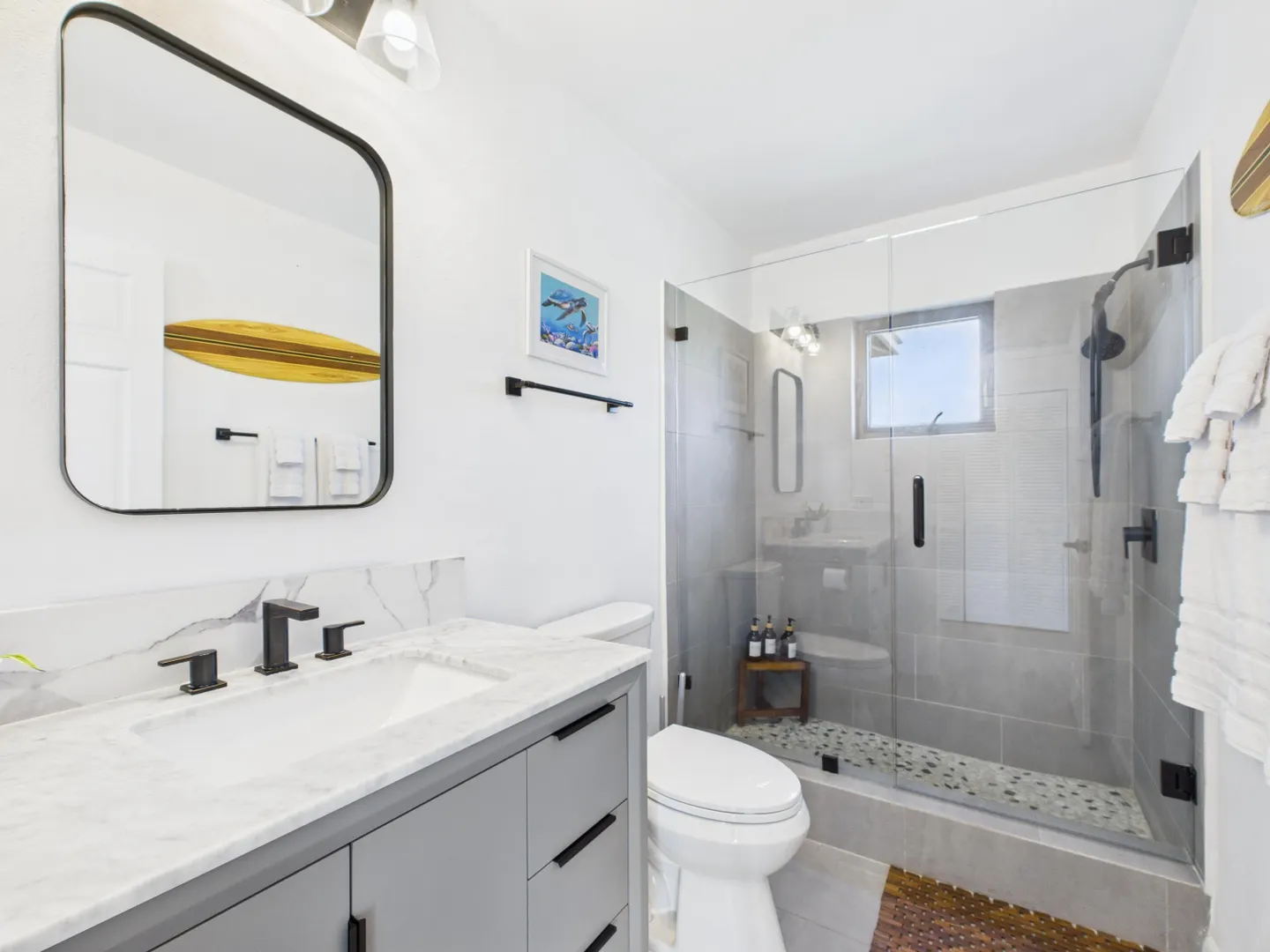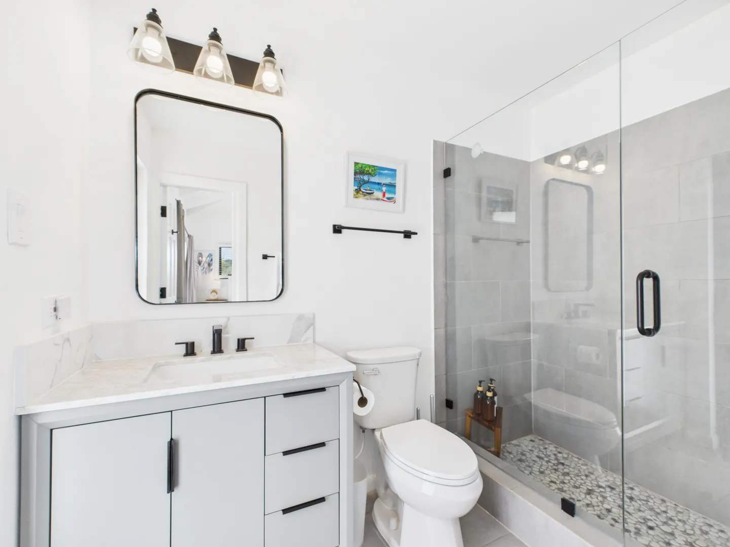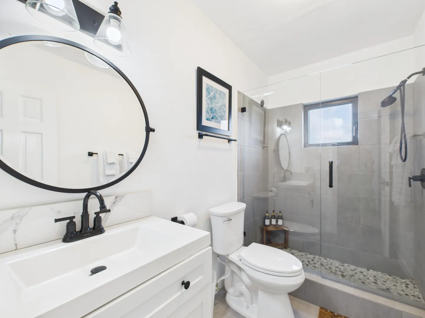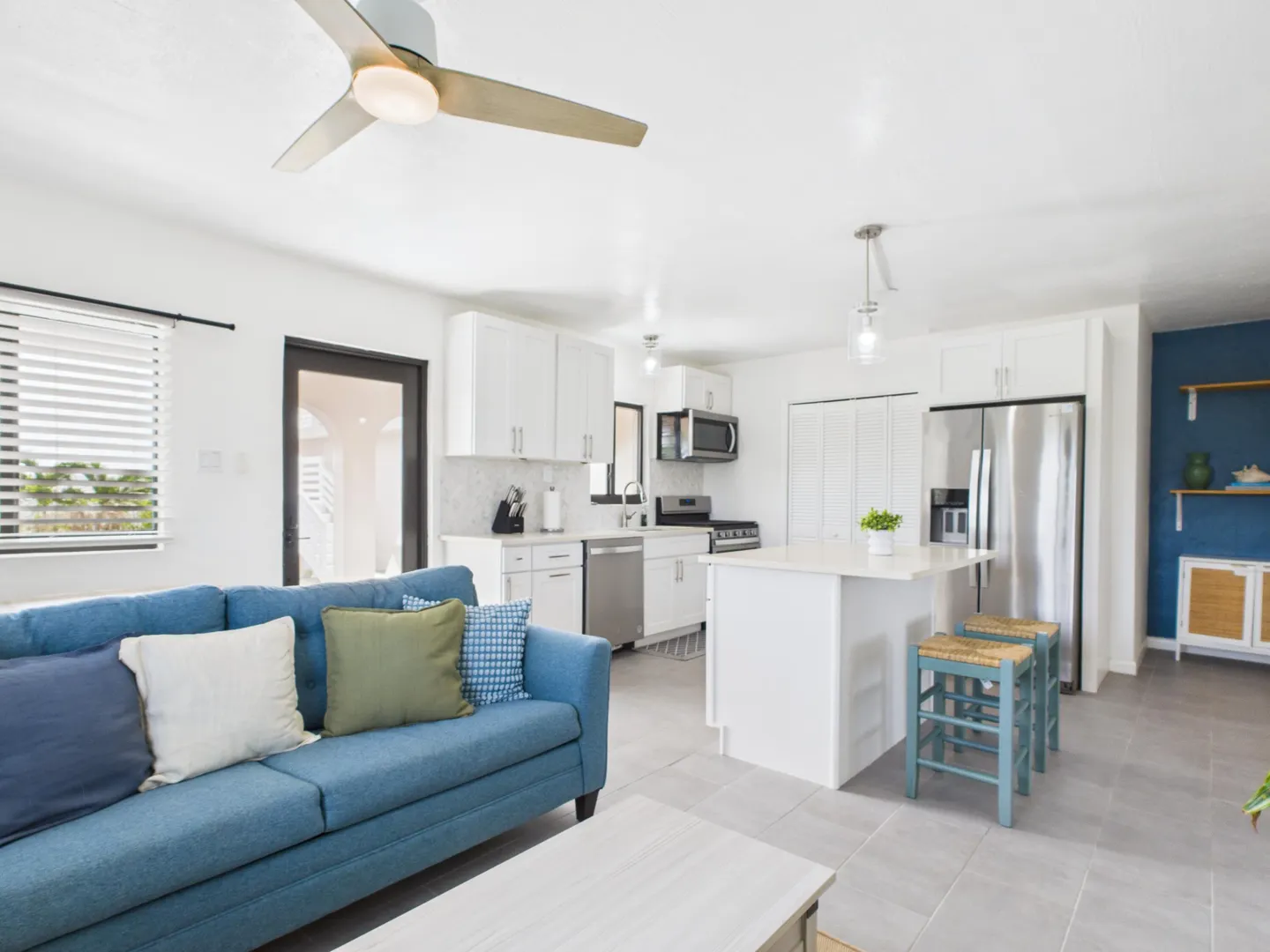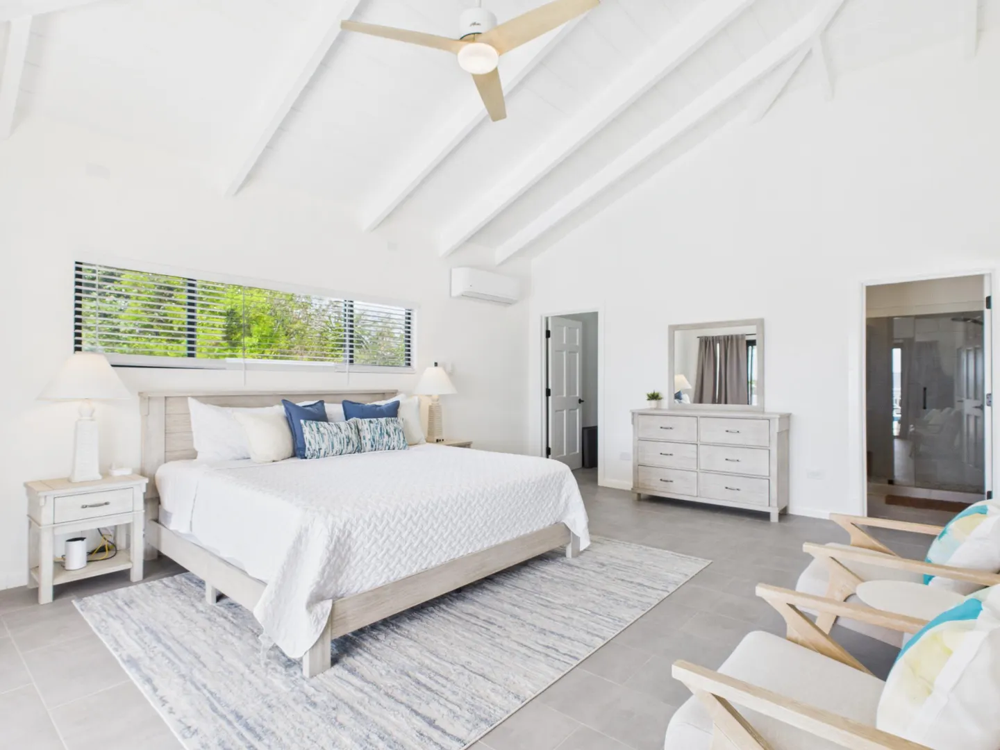 This luxurious home is located in the premier gated beach community of Shoys and features 3 bedrooms and 3 baths upstairs, plus a private 1-bedroom apartment with separate driveway below. Enjoy panoramic views of Christiansted town and The Buccaneer golf course. The interior boasts a spacious open floor plan and a beautiful chef's kitchen with views of Buck Island and the marina. The outdoor living areas seamlessly connect to the interior, creating the perfect setting to relax or entertain. The entire house has been updated and notable features include impact glass windows and doors, modern furniture and an electric gate. Ideally situated just minutes from Shoys Beach, Green Cay Marina, and historic Christiansted with fine dining, shopping, and culture nearby.Fully updated home located in the sought-after gated beach community of Estate Shoys, one of St. Croix's most desirable neighborhoods.