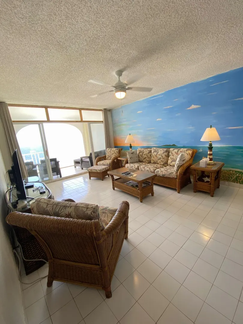 Available for rent from 9/1/24-1/31/25. Delight in the spacious bright open living space this condo has to offer, in addition to endless views from this seaside gallery. This is a top floor end unit just above the pool. The expansive views from your seaside gallery overlook the Caribbean , Buck Island, historic Christiansted, all the way to our sister islands and BVI on clear days. Conveniently located to nearby beaches, town, diving, grocery stores, and everything you need. If you're looking for move in ready, clean, private secure, and some of St. Croix's best views, this is it. Internet, tv & water included in rent. Amenities include pool, AC bedroom, 24/7 security. Perfect if you need a home for a short term job position