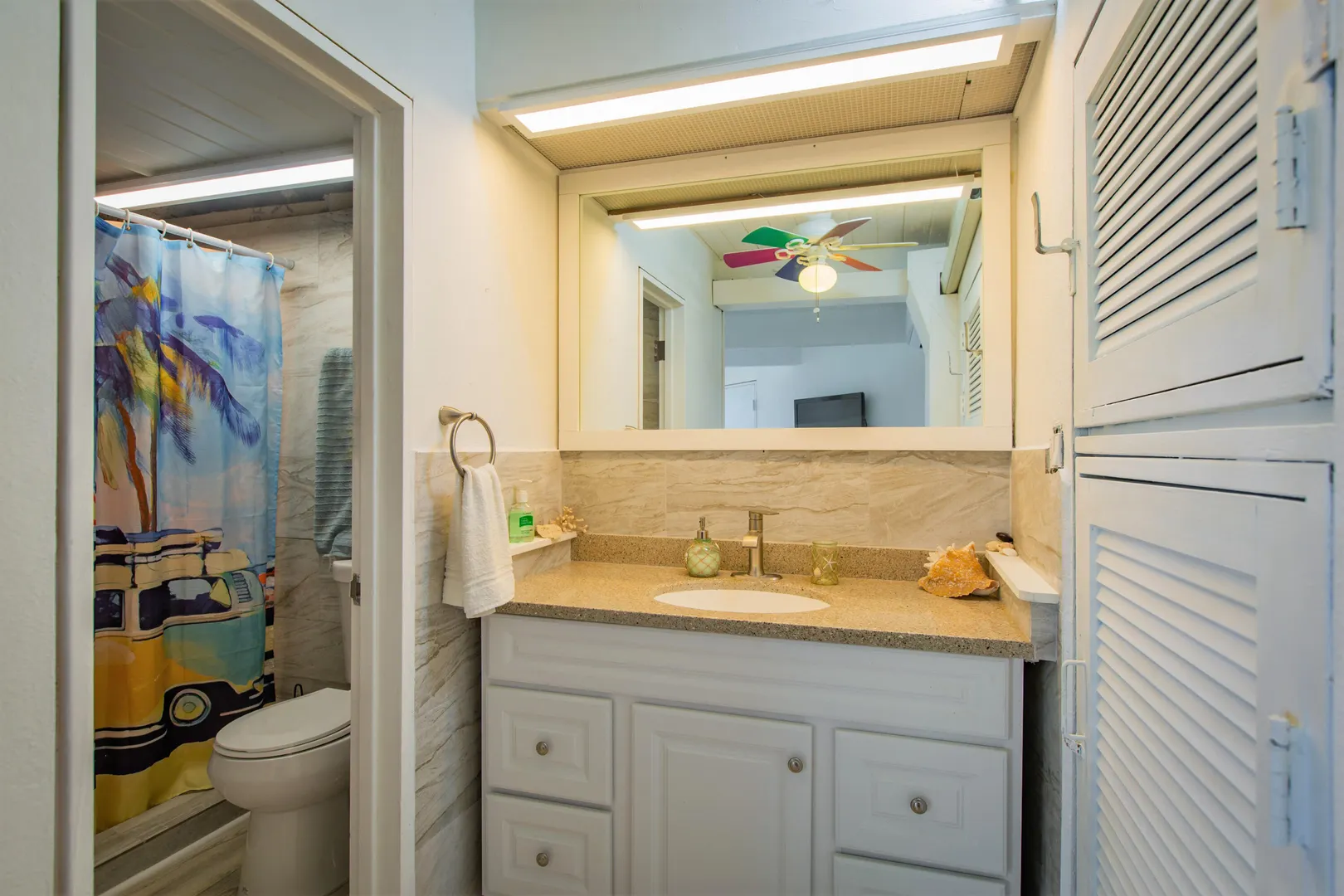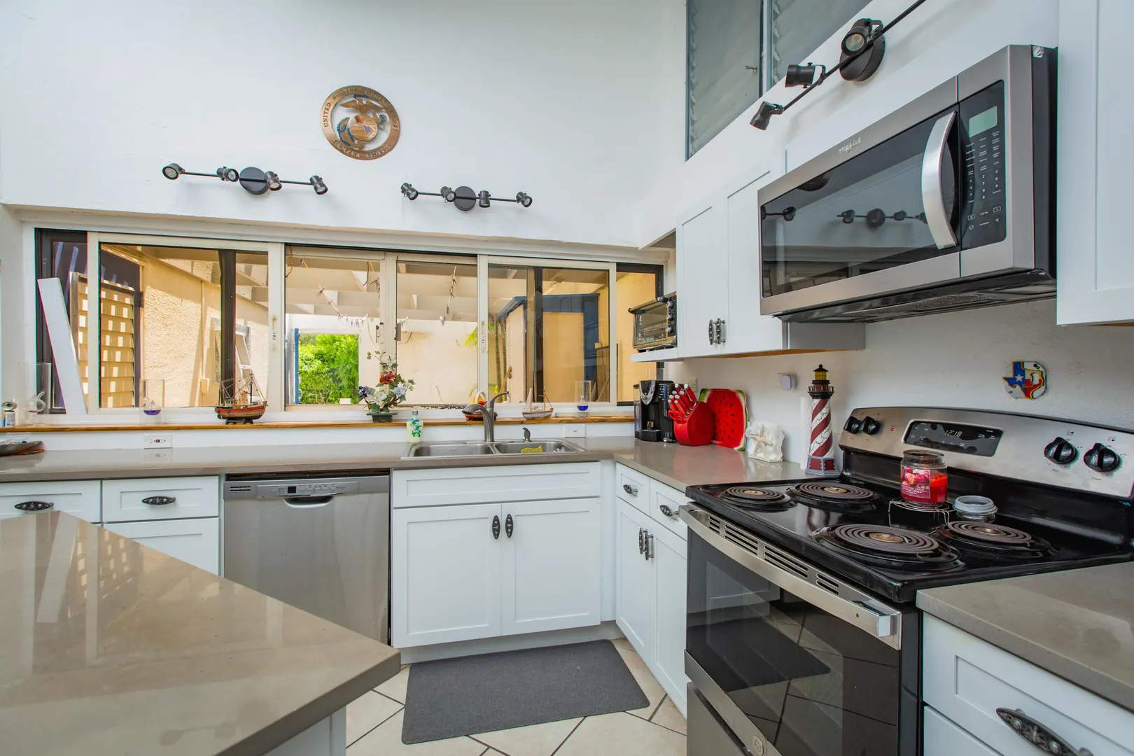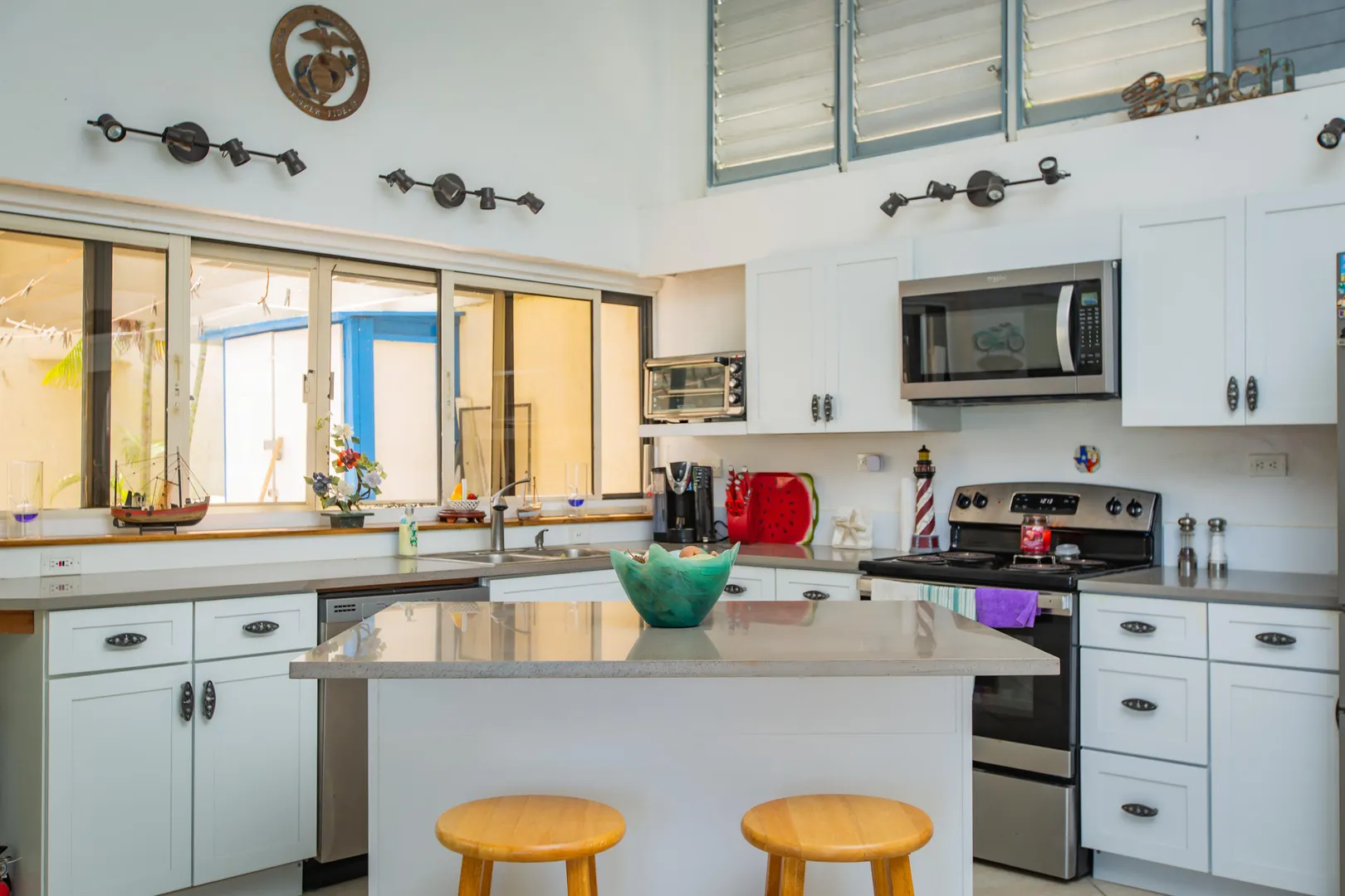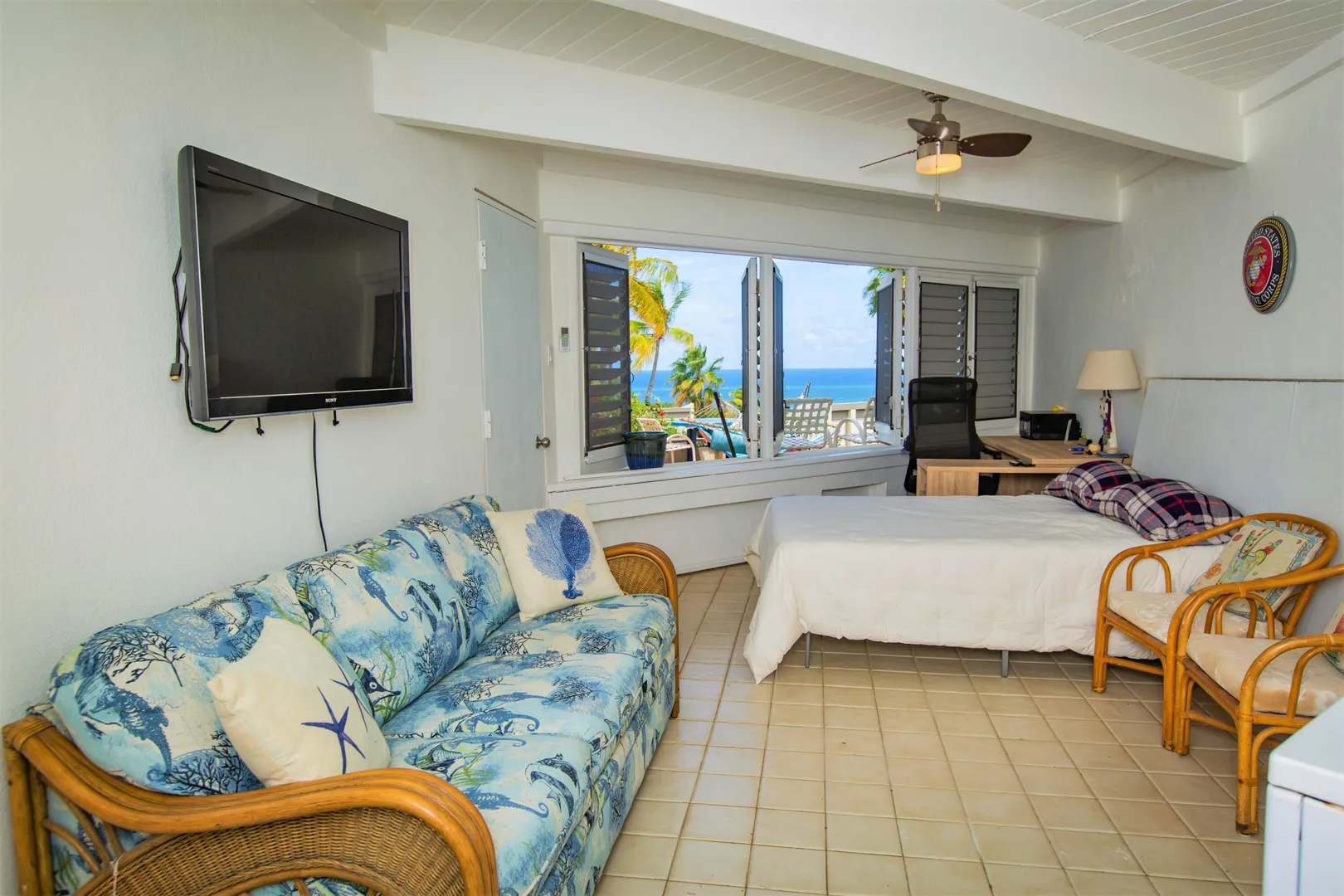 This Reef condo is not to be missed! Lovely 2 bedroom 2 bath with spectacular ocean views, refreshing trade winds, stunning upgrades throughout and plenty of patio space- located right on the golf course! Wonderful east end location close to several pristine beaches, the Yacht Club and dining at Duggan's Reef. The kitchen was beautifully remodeled with new cabinets, stunning quartz countertops, new appliances and updated electrical work. Enjoy the wonderful breezes or relax in the cool AC. 3 new split AC's installed. One can be found in each bedroom and living room. Both ensuite bathrooms also recently remodeled with lovely new vanities, tiles and fixtures. Condo comes turnkey, furnished with beautiful pieces throughout, including comfortable new memory foam mattresses.