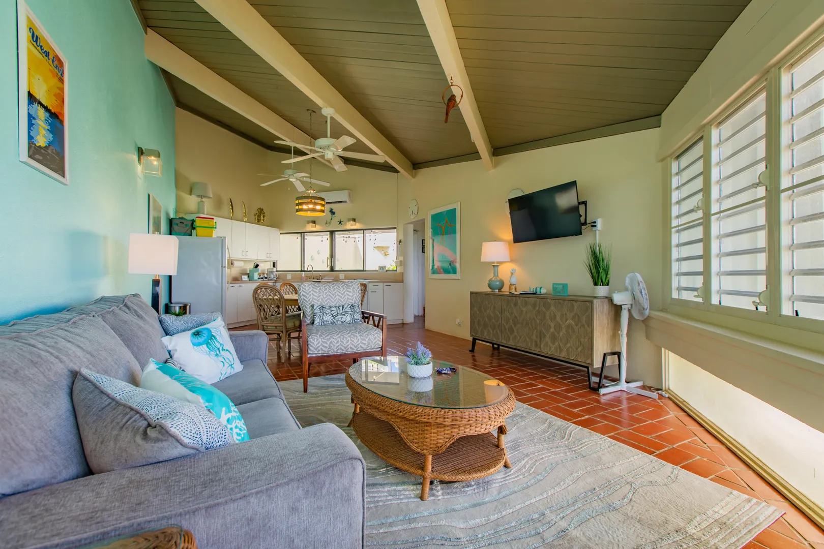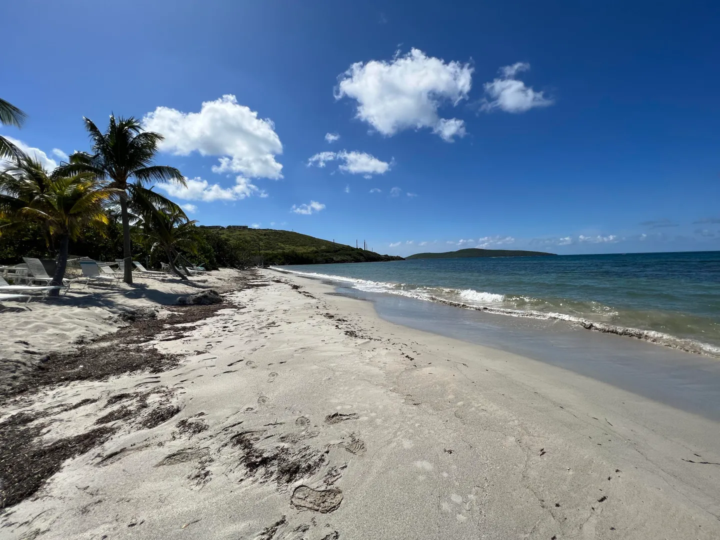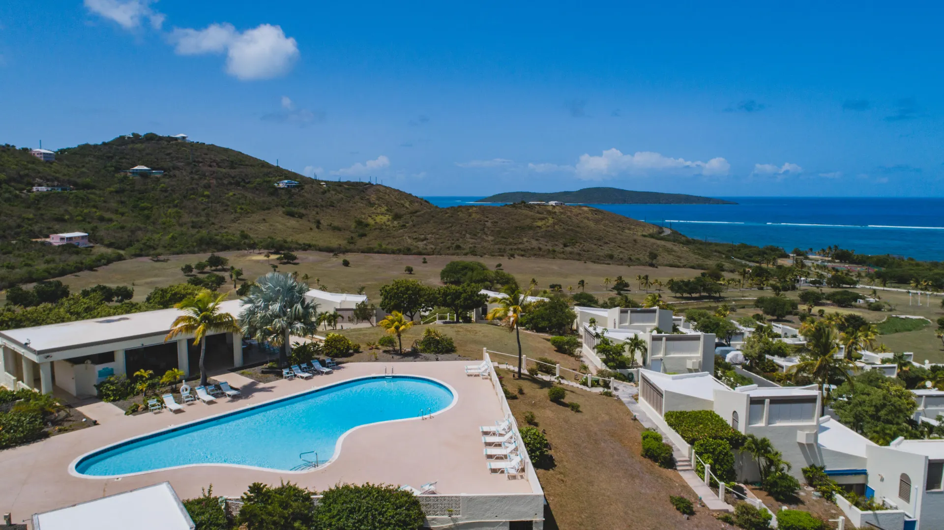 Looking for a luxurious tropical retreat? Look no further than this stunning 2-bedroom, 2-bath condo! With upgraded aluminum windows throughout and renovated baths, new hot water heater and split A/C's, this condo has been beautifully maintained and updated.Enjoy the views of Buck Island & the sea from the lower patio area and enjoy a second separate private patio off the kitchen w/ a pass-through window! Inside, the living room, dining area, & kitchen boast a cathedral ceiling, creating a spacious and open feeling.Located on the east end surrounded by a golf course in a gated complex, with large pool and common area, you can relax and unwind with added security and privacy. And with a white sandy beach just across the street, you'll have easy access to all the fun and sun you desire!