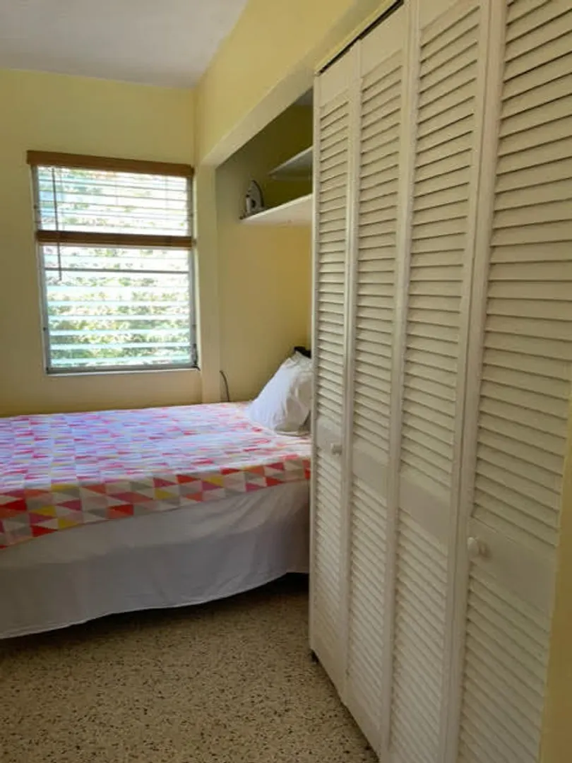 Spectacular view of Christiansted Harbor and the colorful waters of the beautiful Caribbean Sea from this top floor condo at popular gated Long Reef. Originally a studio floor plan, a conversion was made creating a separate bedroom with a mini ''great room'' featuring a full sized fridge (18 cu ft), so you've got plenty of room to stock up at Cost U Less! Relax on the comfortable couch inside and enjoy streaming your favorite shows (internet included) or outside on the lounge chair on the covered open-air gallery!, Perfect location if you don't have a car...you can walk to nearby shopping and public transportation and even beautiful historic downtown Christiansted Towne! Open front and rear windows for a delicious TradeWinds breeze, or flip on the AC to cool off after a long hot day!