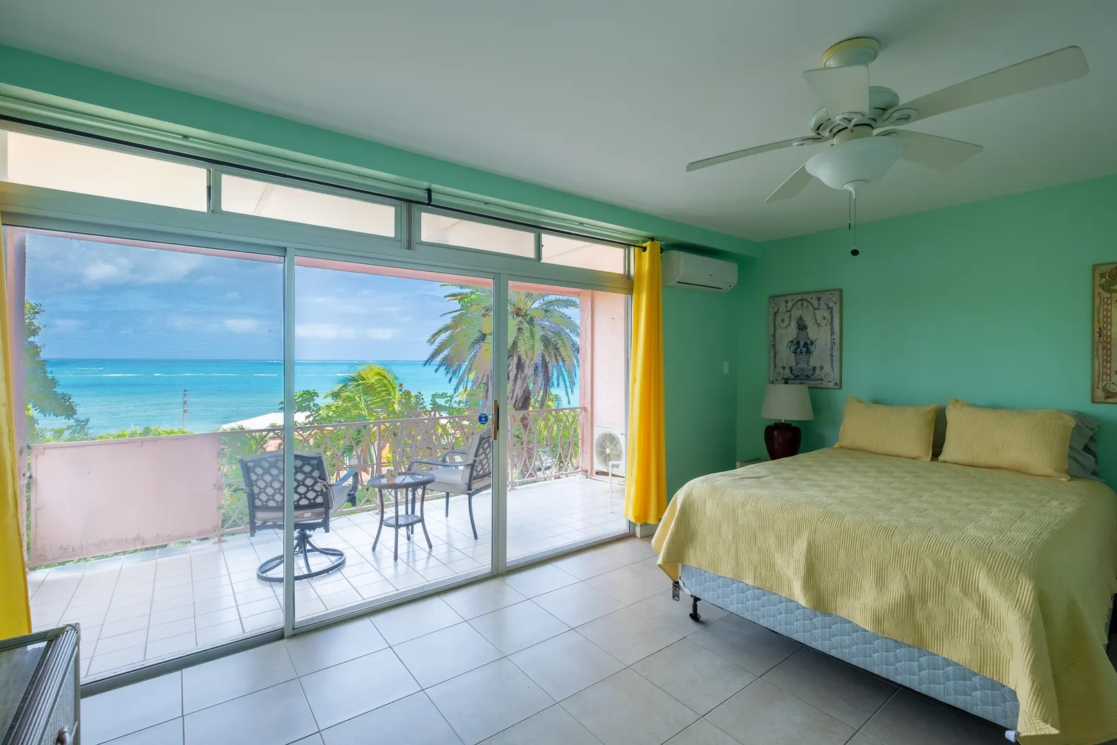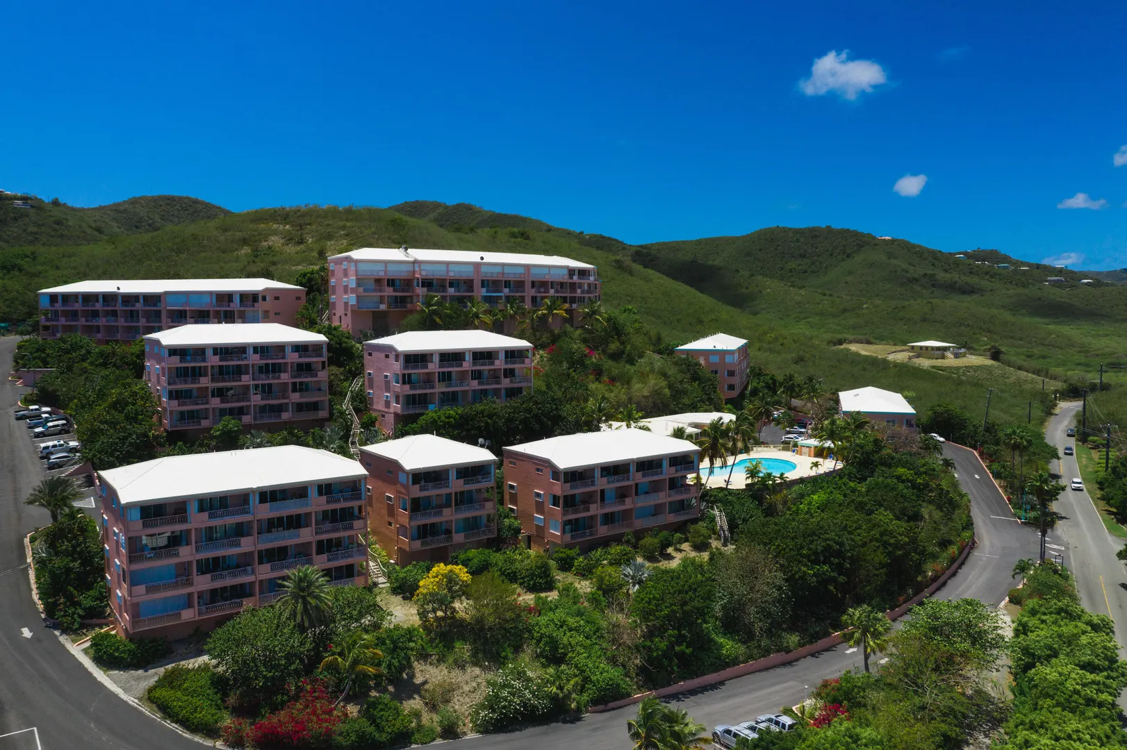 Indulge in island luxury at this exceptional 2 bedroom, 2 bathroom condo at Coakley Bay Condominium on the vibrant East End of St. Croix. This end unit with Western exposure promises a uniquely private experience with breathtaking panoramic views of the Caribbean Sea.The living room and adjacent gallery showcases the heart of this condo; a space where comfort meets elegance. Large sliding glass doors invite the vibrant island sunlight, highlighting the tasteful decor and creating a welcoming atmosphere. Split AC's throughout ensure your relaxation in any season.