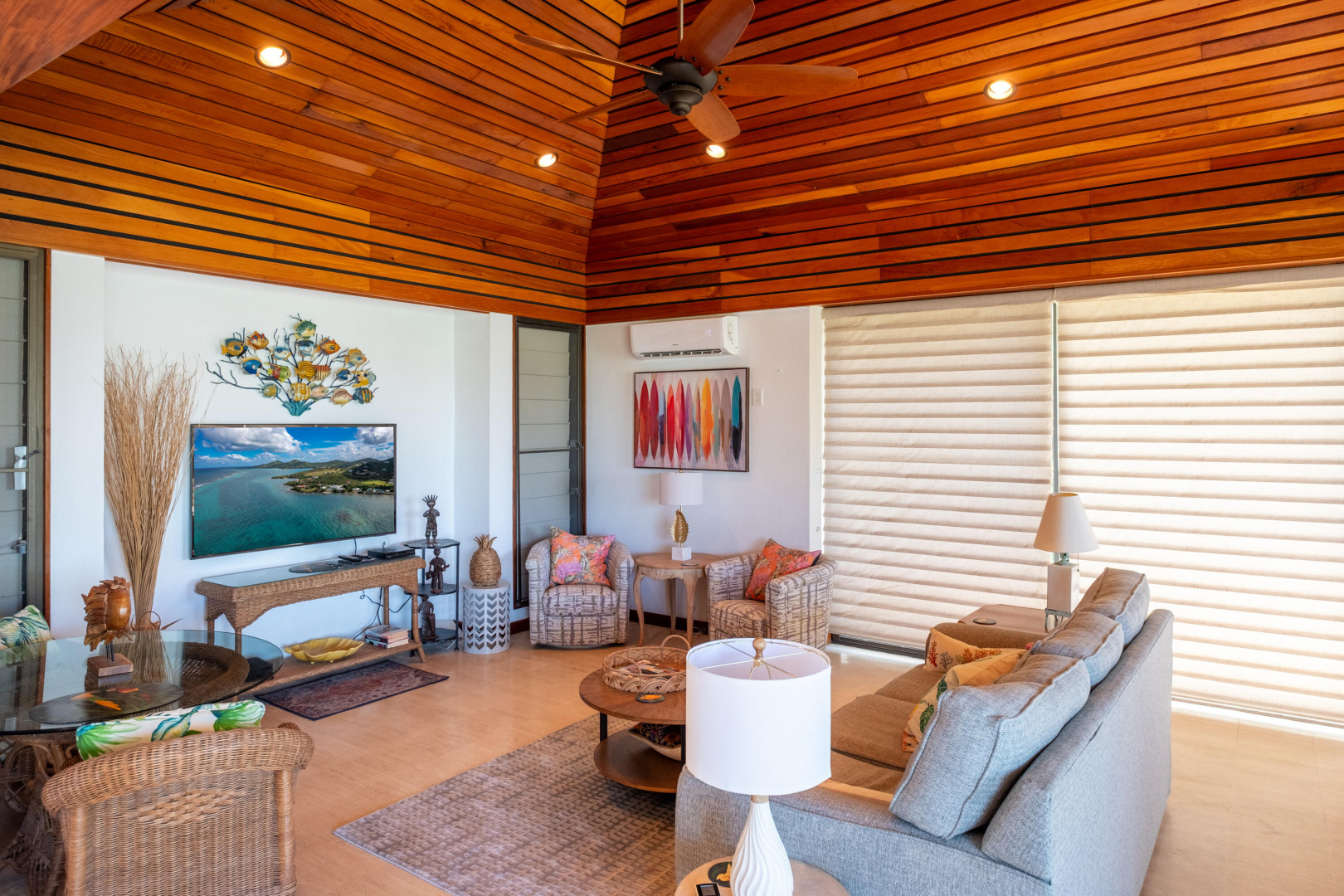 Spectacular beachfront living awaits as you enter through the private gates of this stunning home on more than 80 feet of secluded beach on St. Croix's East End. With a total of three bedrooms and now three full bathrooms plus a half bathroom, this property showcases panoramic views with Buck Island as the centerpiece and is sure to delight even the most discerning buyers. Fresh exterior paint enhances the home's curb appeal, and the main house sits approximately 20 feet above sea level, capturing steady breezes and postcard-worthy vistas. The expansive patio and pass-through kitchen window bar create true alfresco living, ideal for effortless entertaining. POTENTIAL OWNER CARRY FINANCING AND, OF COURSE, BANK FINANCING IS AVAILABLE FOR THIS PROPERTY.The main house features two bedrooms, two full and one half bathroom, an open floor plan with soaring cathedral ceilings, and a gourmet kitchen with granite countertops and custom cabinetry. The home is equipped with two solar hot water heaters that provide energy savings and added efficiency. Family and guests will appreciate the private one bedroom, one bathroom guest house complete with a cozy living room and kitchenette.