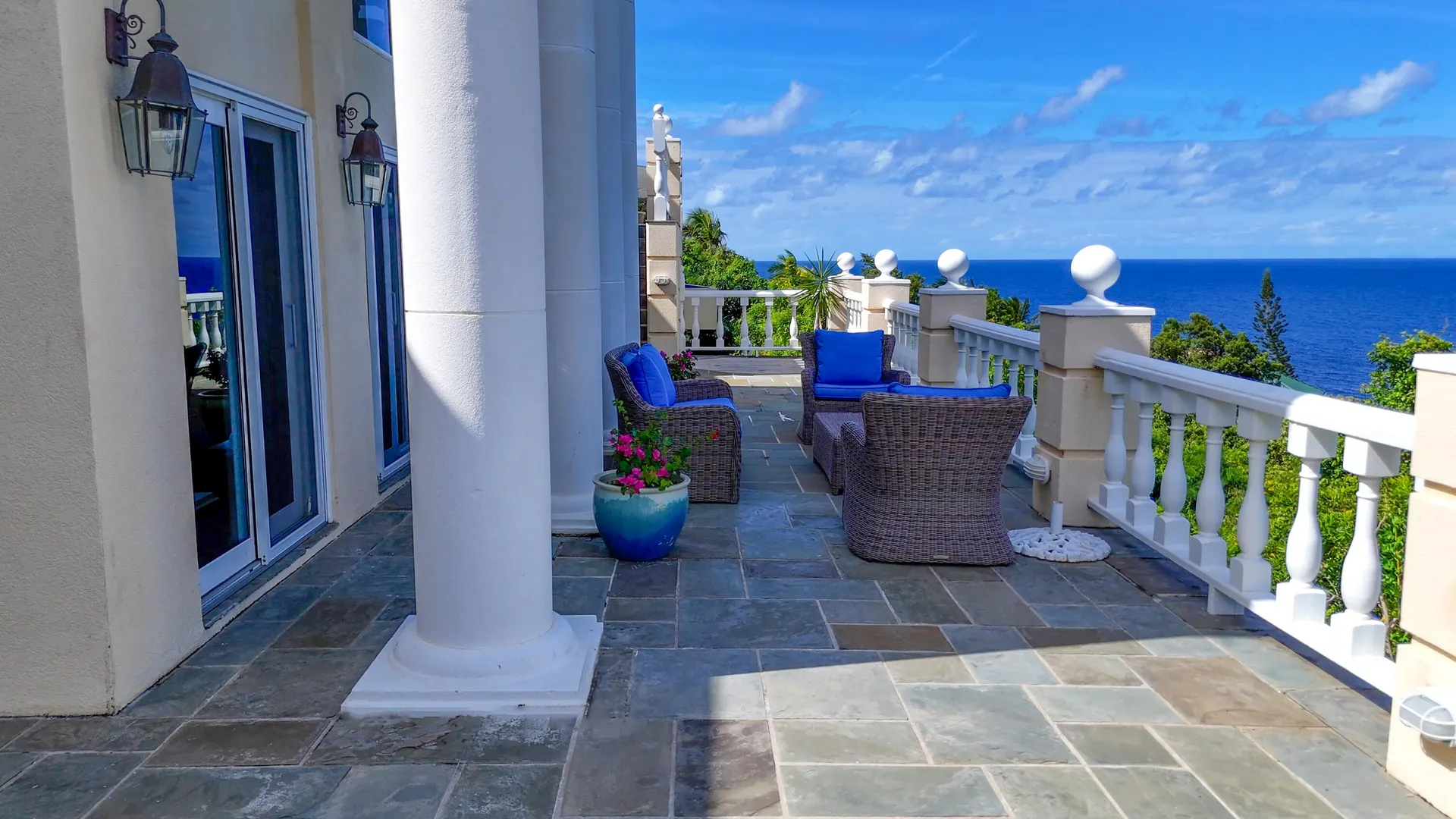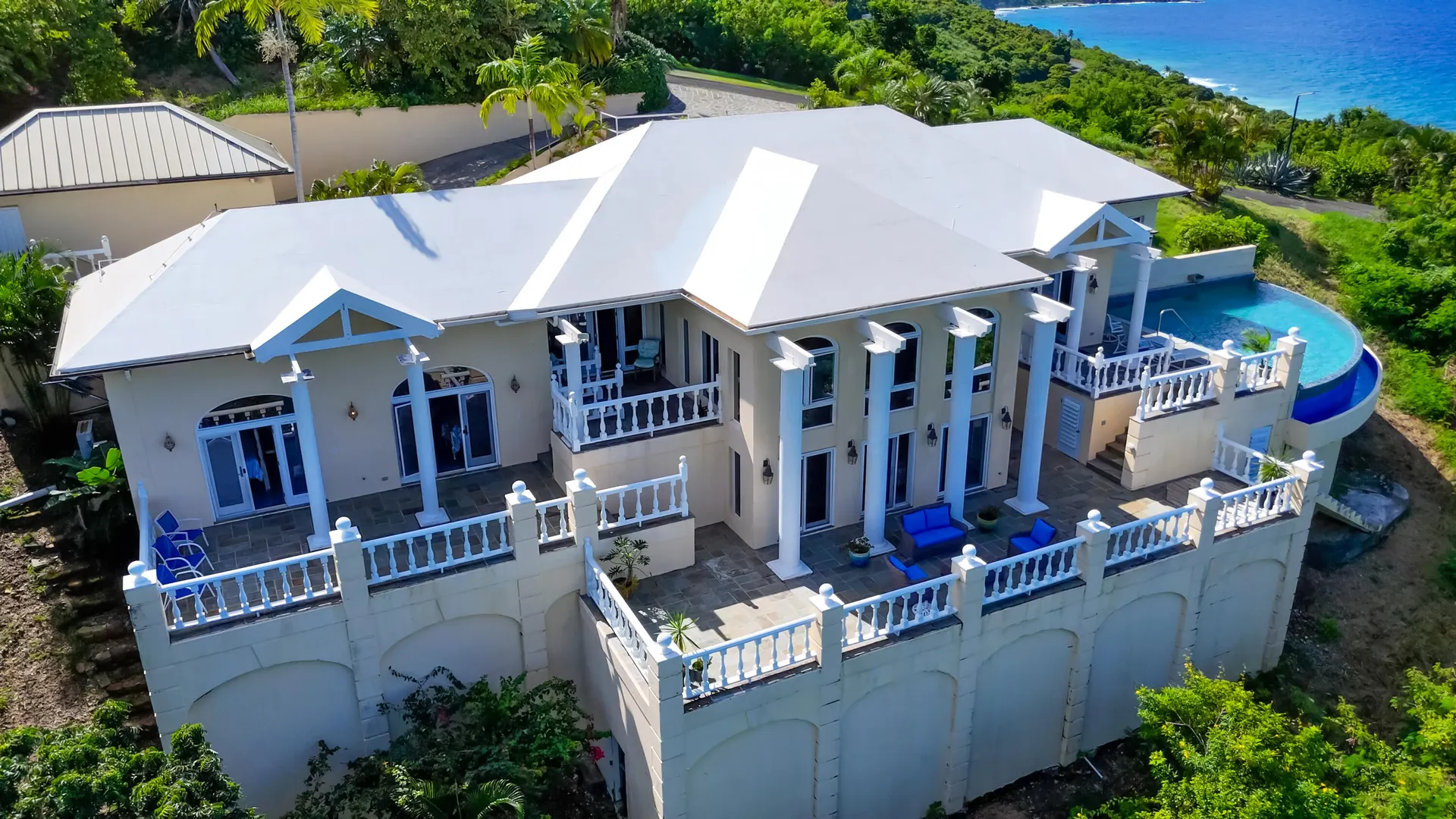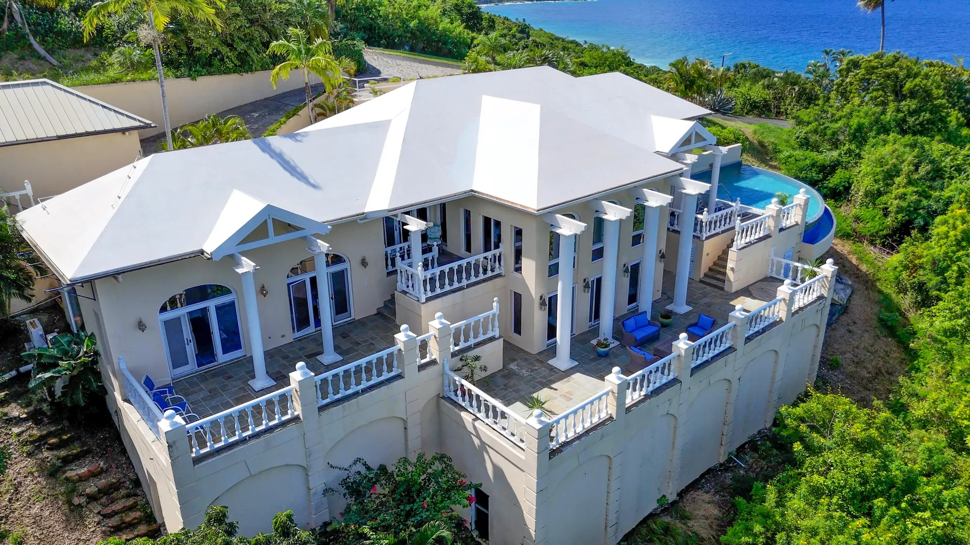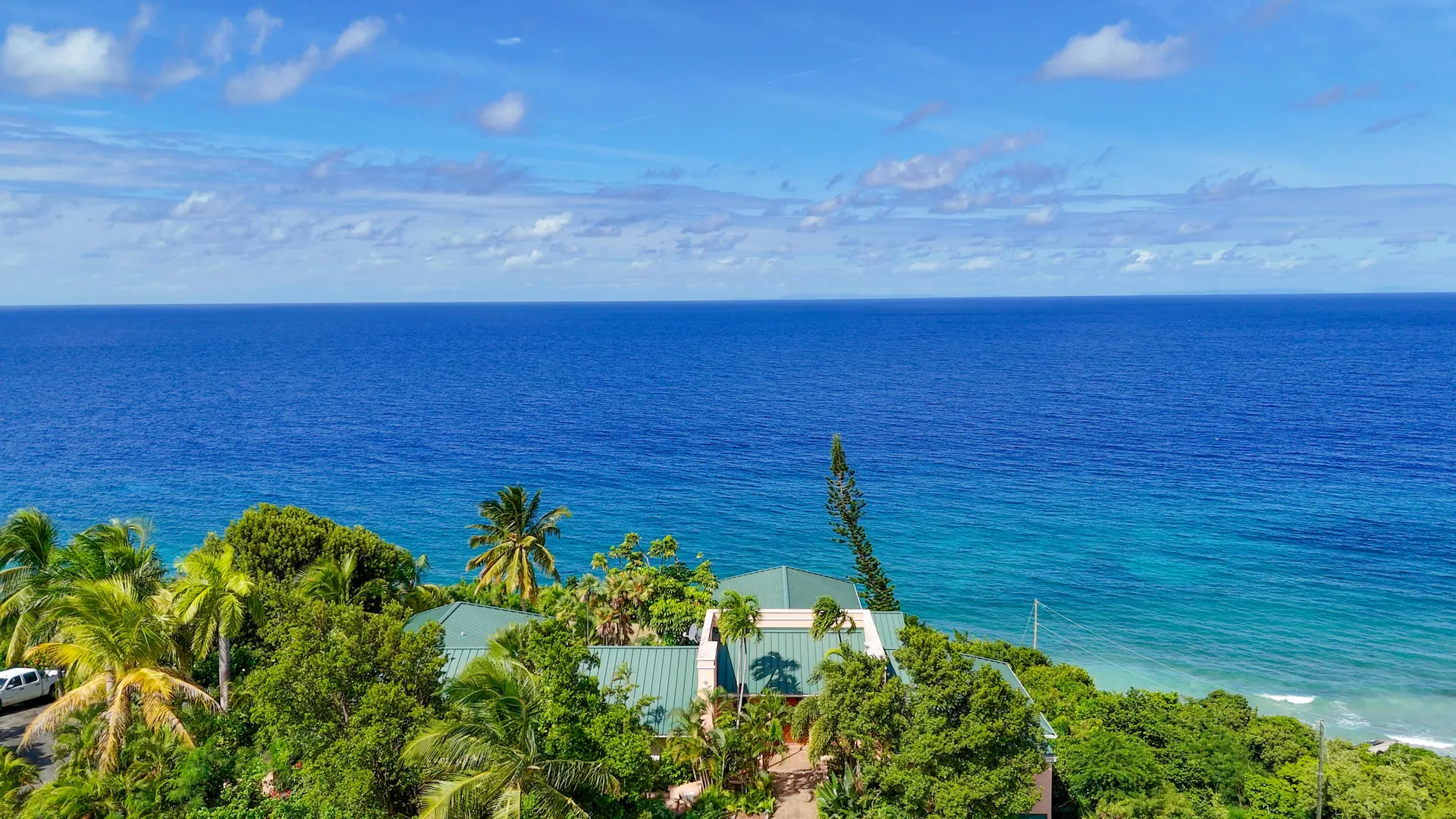 Perched above Carambola Beach Resort in the lush hills of Hibiscus Point, this 3-bedroom, 3.5-bath home epitomizes Caribbean elegance and modern convenience. The open-concept living area highlights breathtaking panoramic views through impact glass windows and doors. The luxurious primary suite features direct access to the infinity pool and a spa-like bathroom with a soaking tub perfectly positioned to showcase the stunning Caribbean Sea. With solar power, net metering, and a 17KW backup generator, this home ensures comfort and sustainability. Located within 5 minutes of world-class diving at Cane Bay, incredible beaches, Carambola Golf Course, and premier dining options, this is island living at its finest.Step into "Grande View" and be captivated by the breathtaking panoramic sea view that greets you the moment you walk through the doors. This multilevel 3-bedroom, 3.5-bathroom luxury estate in the exclusive gated community of Hibiscus Point at Carambola is a true masterpiece of island living. Featuring a 4.5kW solar system with net metering and a generator, this home combines sustainable energy with elegant design, offering both modern efficiency and timeless luxury.