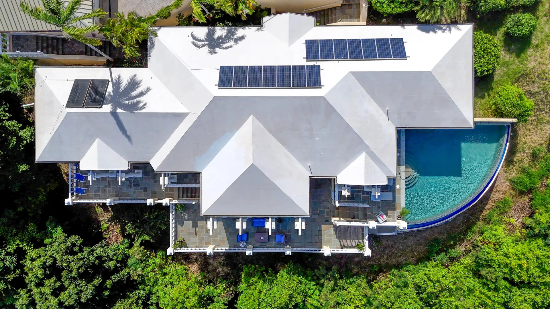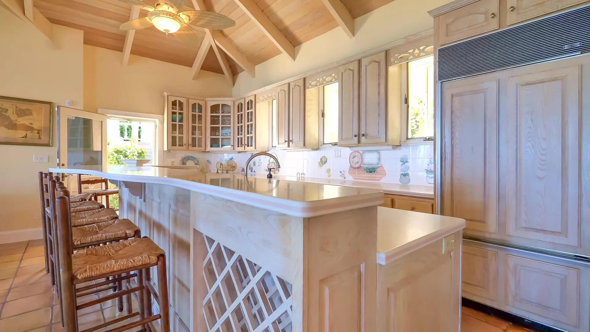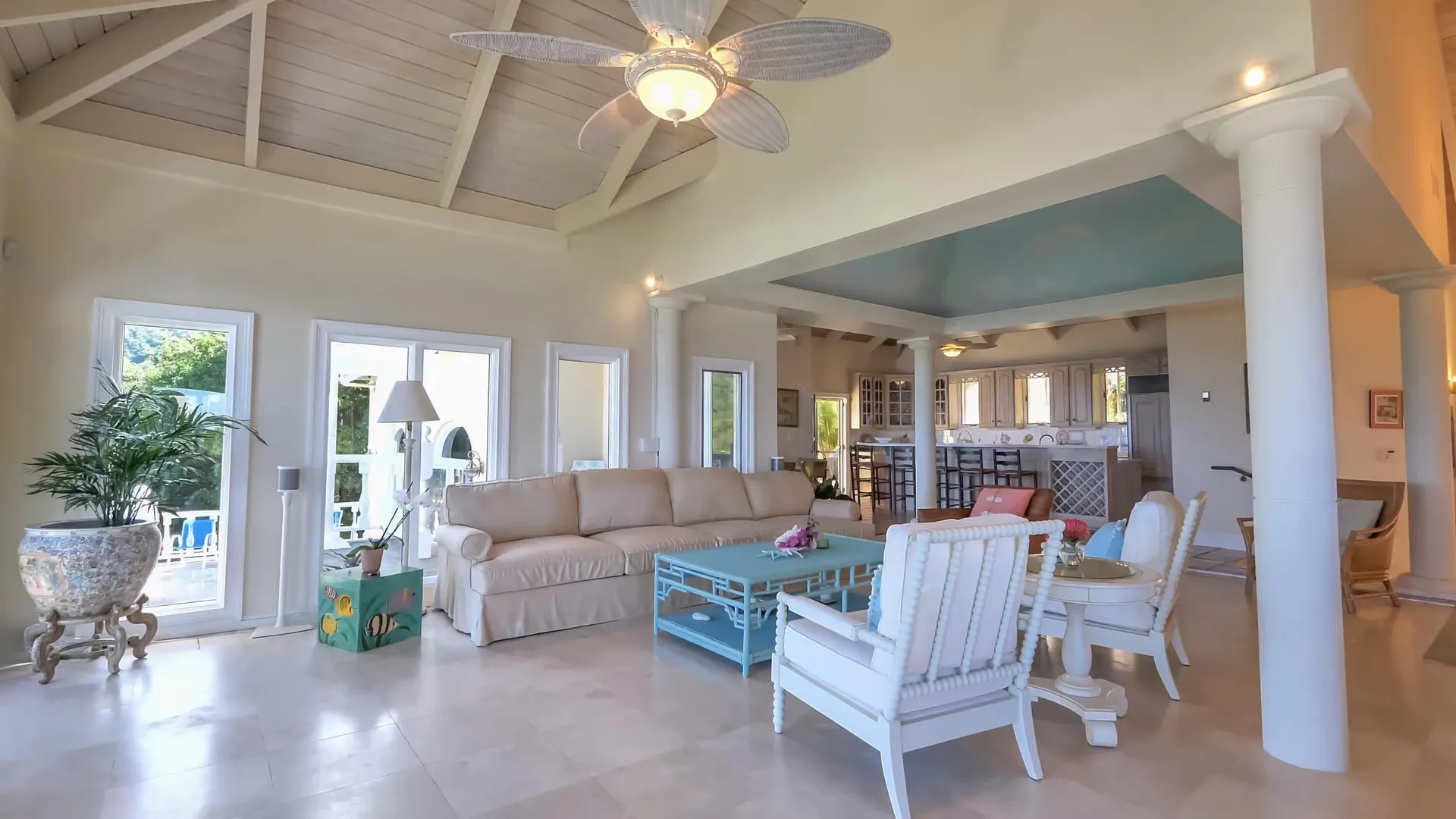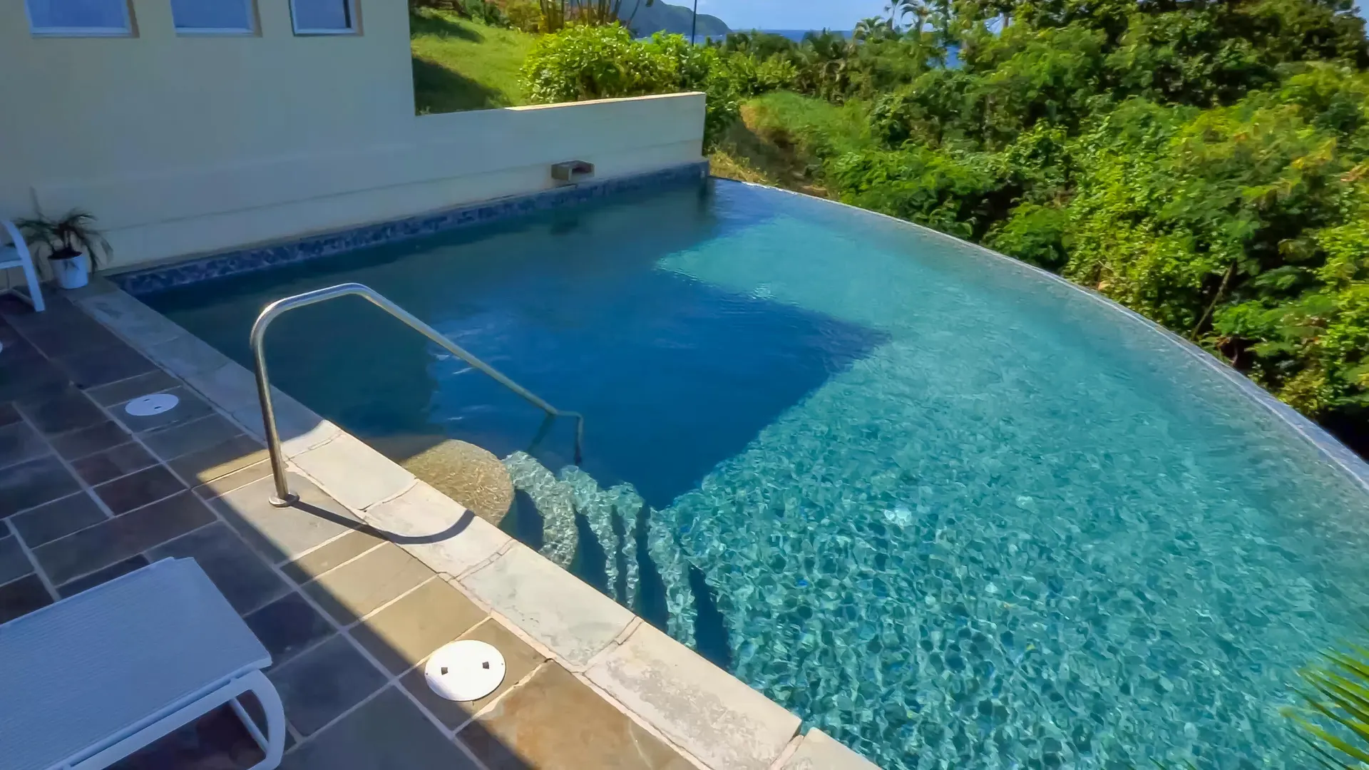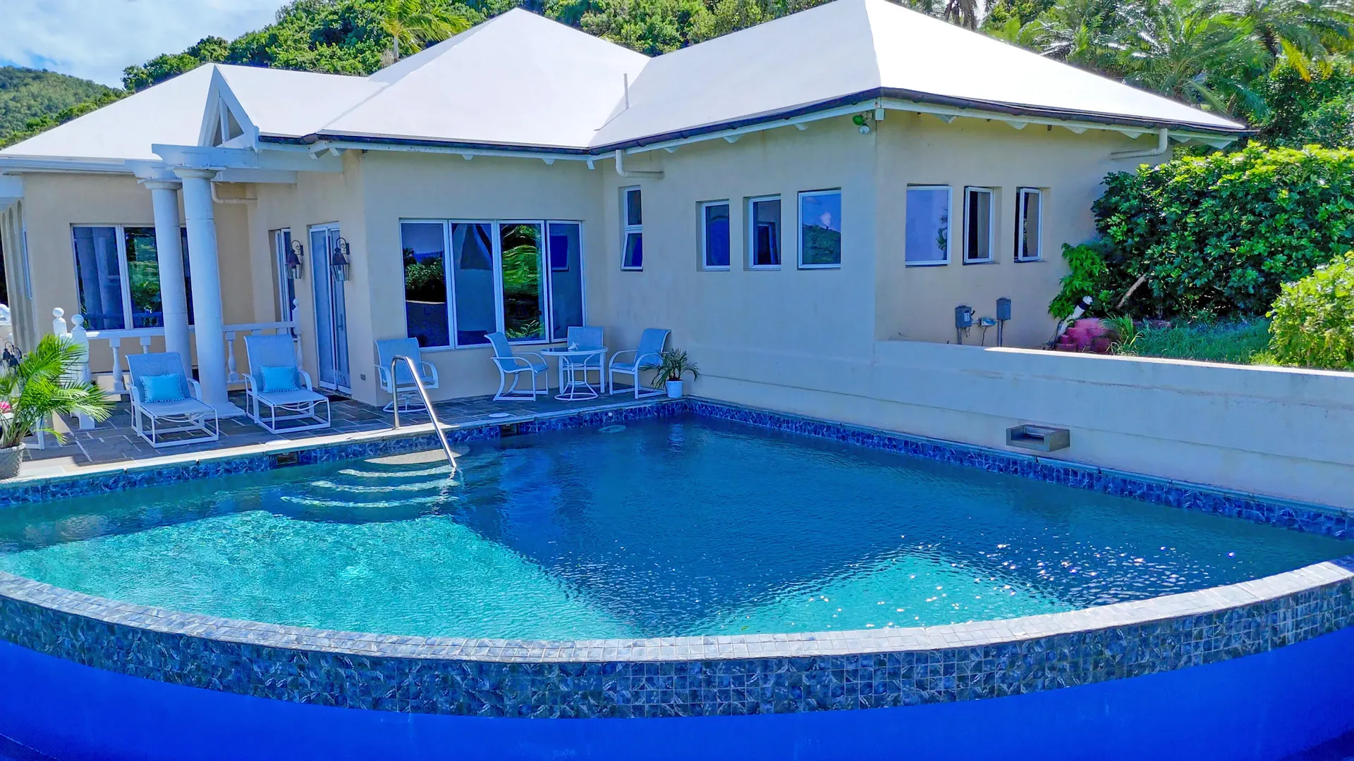 Perched above Carambola Beach Resort in the lush hills of Hibiscus Point, this 3-bedroom, 3.5-bath home epitomizes Caribbean elegance and modern convenience. The open-concept living area highlights breathtaking panoramic views through impact glass windows and doors. The luxurious primary suite features direct access to the infinity pool and a spa-like bathroom with a soaking tub perfectly positioned to showcase the stunning Caribbean Sea. With solar power, net metering, and a 17KW backup generator, this home ensures comfort and sustainability. Located within 5 minutes of world-class diving at Cane Bay, incredible beaches, Carambola Golf Course, and premier dining options, this is island living at its finest.Step into "Grande View" and be captivated by the breathtaking panoramic sea view that greets you the moment you walk through the doors. This multilevel 3-bedroom, 3.5-bathroom luxury estate in the exclusive gated community of Hibiscus Point at Carambola is a true masterpiece of island living. Featuring a 4.5kW solar system with net metering and a generator, this home combines sustainable energy with elegant design, offering both modern efficiency and timeless luxury.