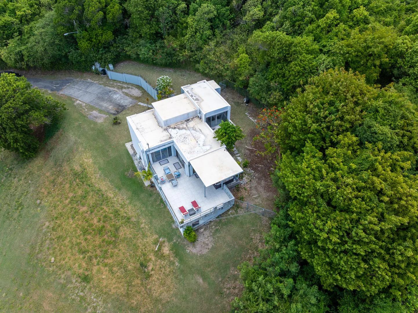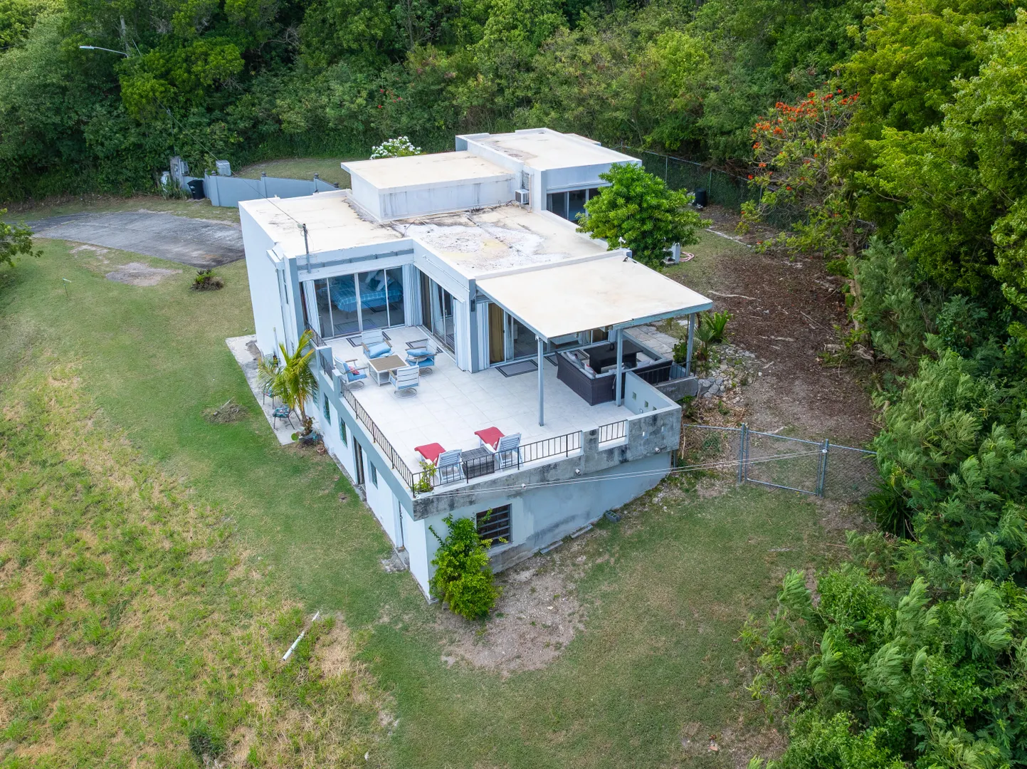 Tucked away at the end of a quiet lane in a friendly mid-island neighborhood, this multi-story home offers laid-back island living with gorgeous views of both the north and south shores. The main home features two spacious en suite bedrooms, an open kitchen that flows right into the living area, and a breezy covered gallery with tile flooring. Downstairs, you'll find a separate efficiency apartment, great for guests or rental income. There's also a workshop for your hobbies and a fenced-in backyard, ideal for kids or pets to play safely. A private, versatile home in a convenient location!