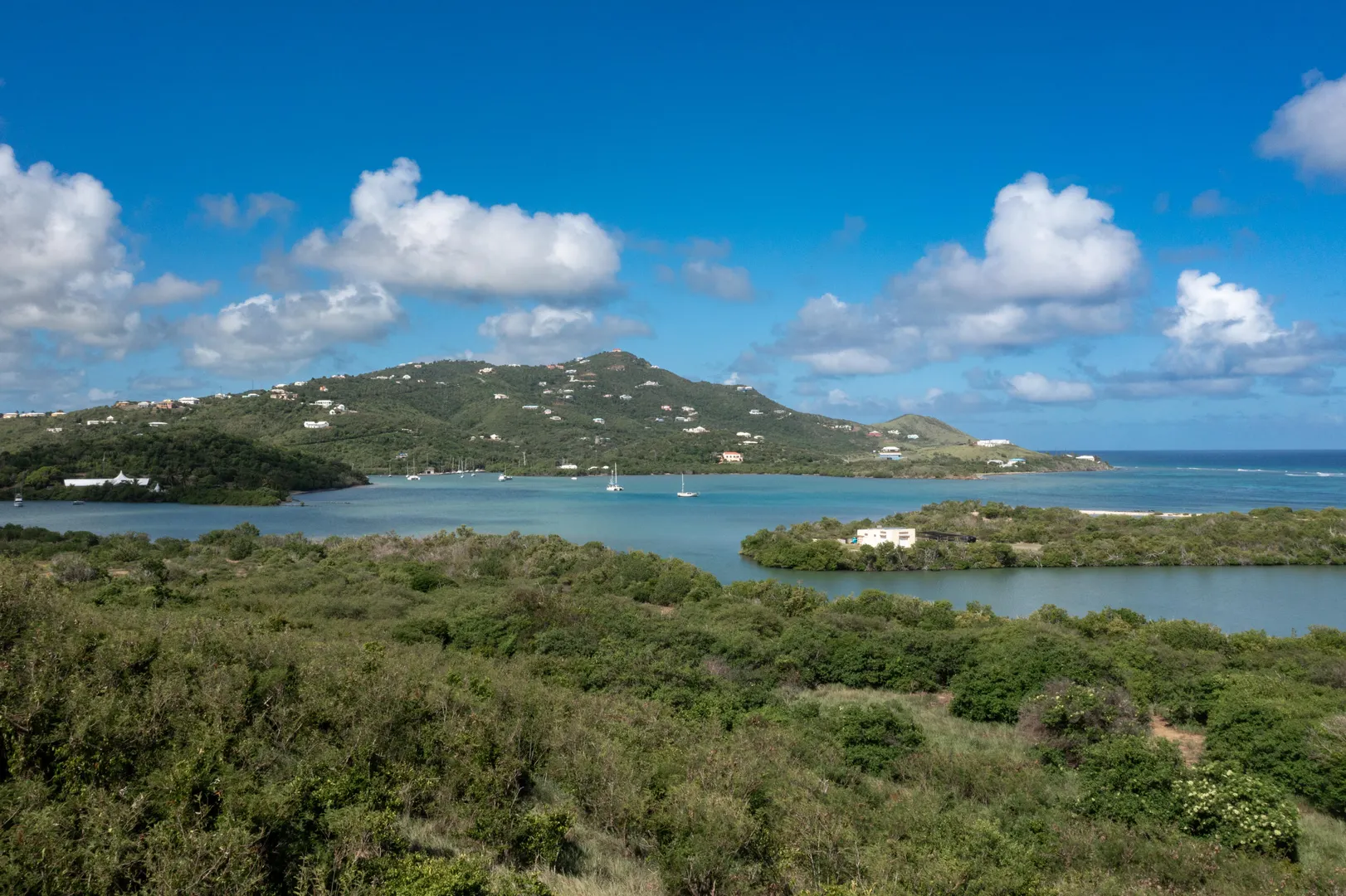 Terrific 1 acre+ homesite with beautiful unobstructed views of the Caribbean Sea and peaceful Salt River. The gentle slope of the terrain provides an ideal canvas for your dream home, allowing for creative architectural designs incorporating nature into your living space. Savor sunsets that paint the sky shades of pink and orange, all reflected in the water. Imagine waking up to the sound of gentle waves on the shore and birds in the lush surrounding foliage. You can explore the bay's underwater wonders through snorkeling and diving, or just relax on the beaches nearby. Convenience is not sacrificed for the sake of seclusion; Judith's Fancy is a gated, friendly, community close to island amenities and services. Don't miss the opportunity to make this remarkable piece of paradise your own!