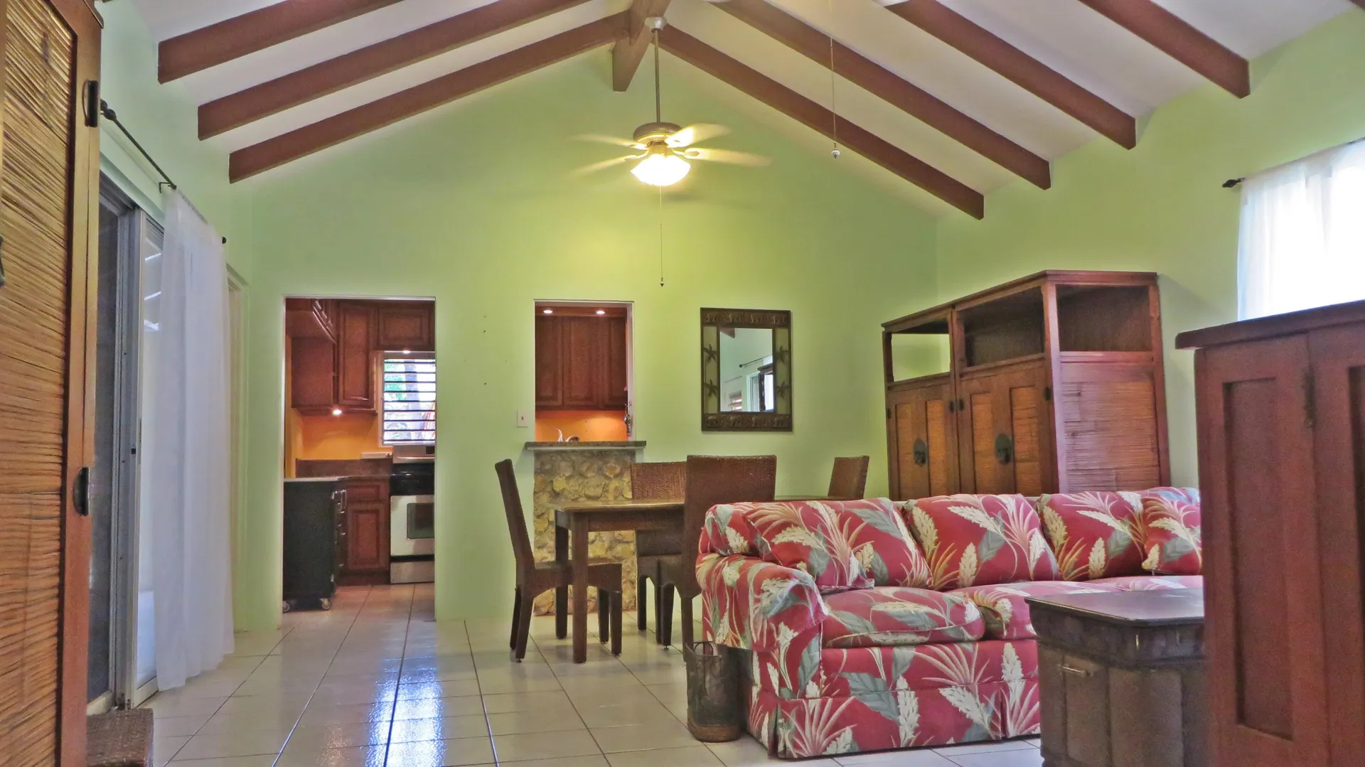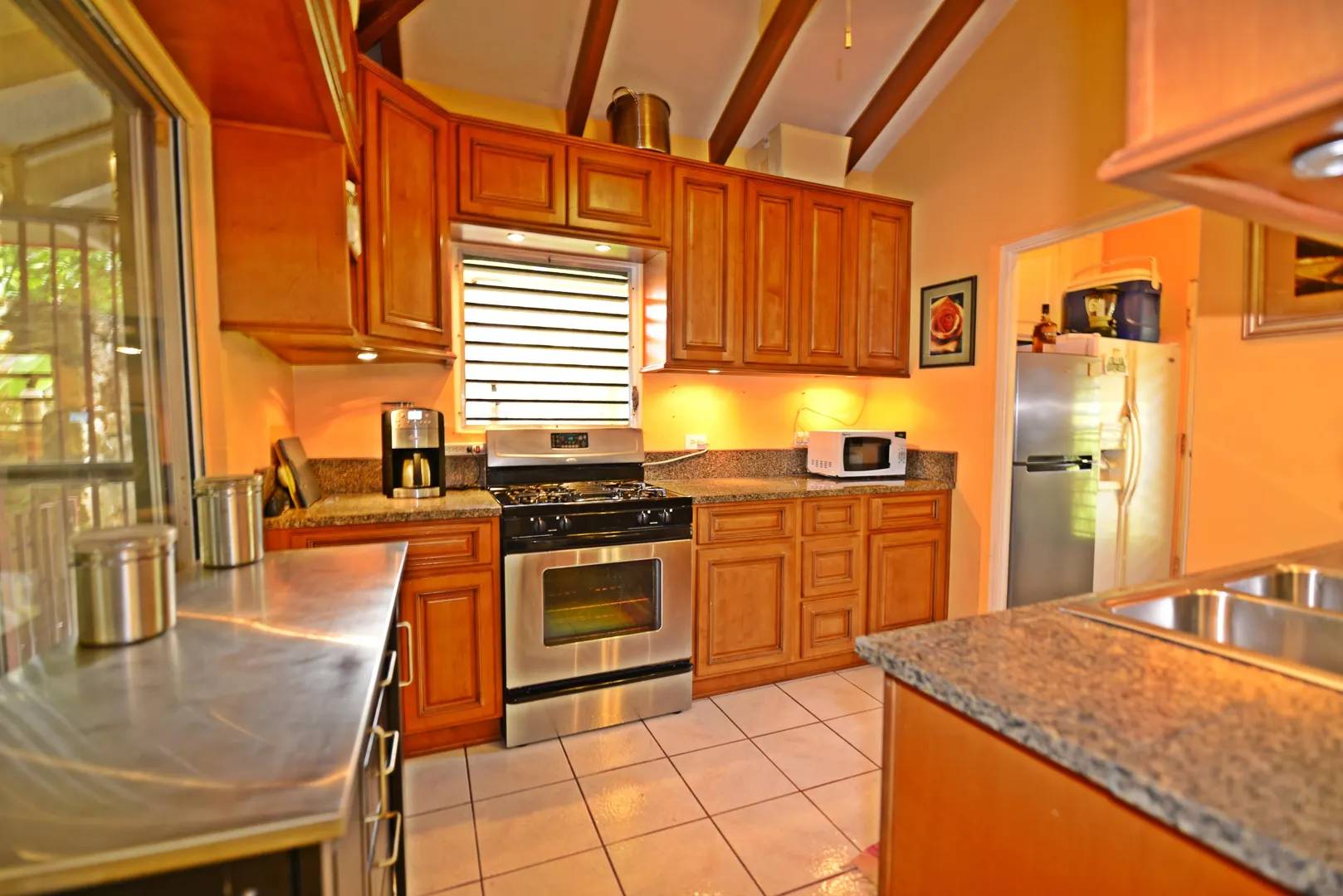 This island oasis is located on a large, flat lot with gorgeous, professional landscaping and a refreshing swimming pool. The lush and abundant grounds offer a canopy for shade and give the home complete privacy. The Mary Fancy's neighborhood has paved roads, is extremely well maintained and is in a very convenient location. The main home has two-bedrooms, two full bathrooms, upgraded kitchen and bonus space off of the open greatroom. The efficiency feels like a free standing cottage. Its cozy with a separate. private entrance and a covered gallery.When you live in the Caribbean, having your own oasis is a must and the pool area offers exactly that! There is a beautiful stone wall lined with soaring palm trees and verdant fauna that frames the swimming pool making the outdoor space completely private. In this area you can find a beautiful garden setting with a custom built pergola for a place to dine alfresco pool side or take an afternoon nap amongst nature. Additional features include a 15 KW generator, a fully fenced yard great for dogs and workshop/garage/shed.