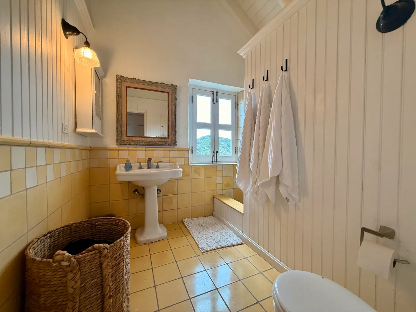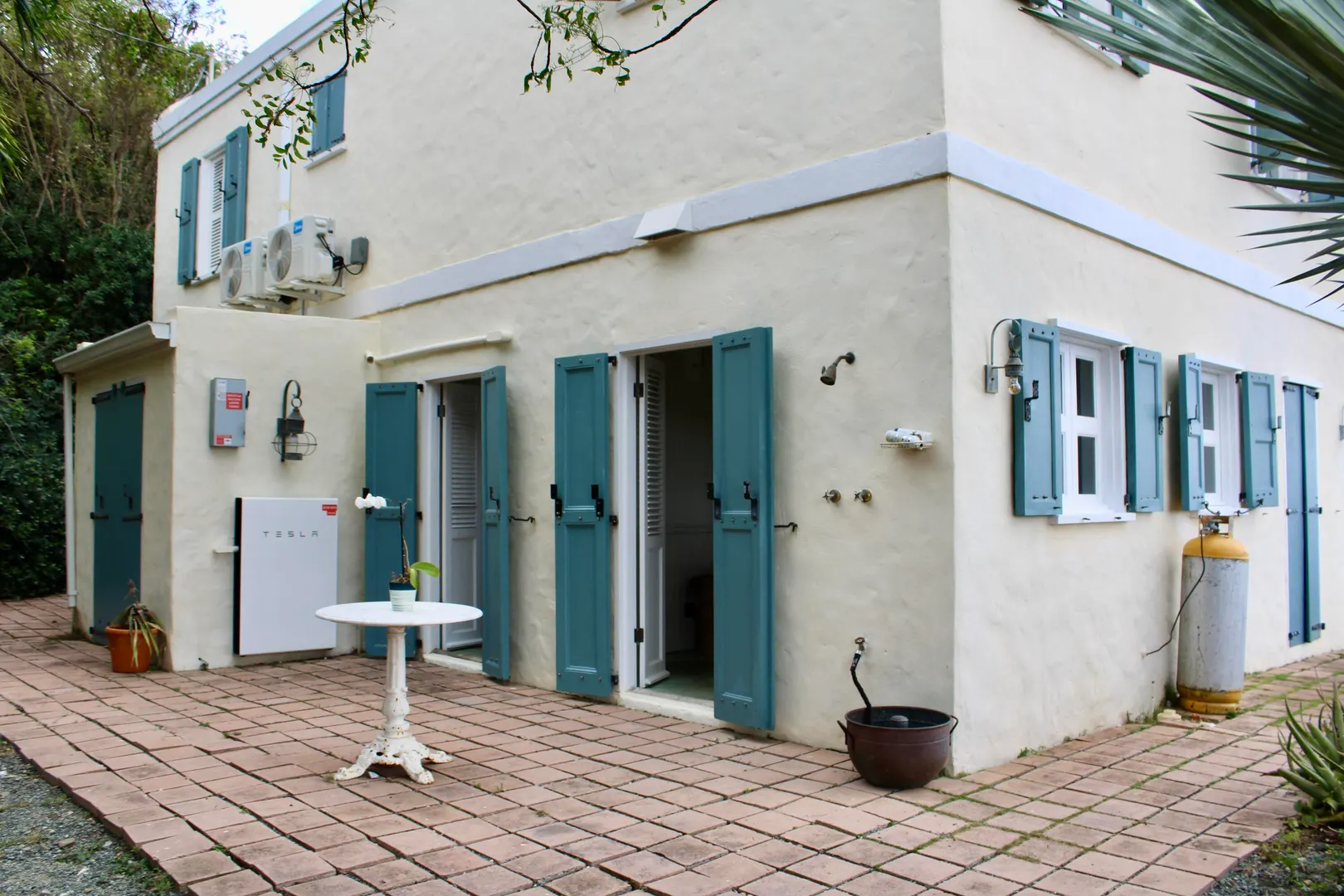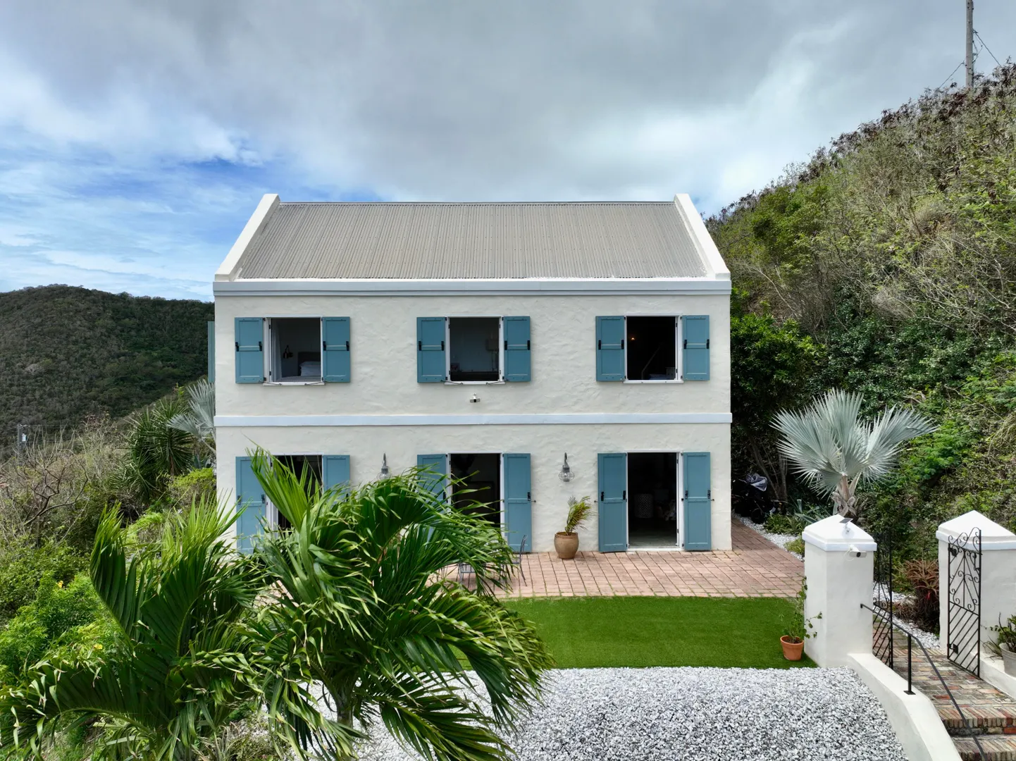 Built in the West Indian vernacular, this elegant 2 bedroom, 1.5 bath home in Cotton Valley on St. Croix's east end is an ode to classic Caribbean architecture. Step through the wooden interior shutters to instantly sense the cool breeze and natural light spilling through this cozy home. On the 1st floor, a remodeled kitchen features a large island with seating for 5, quartz countertops, white cabinetry and stainless steel appliances. Move across the stained concrete floors to the dining and living areas with direct access to the front patio and backyard. Ascend the stylish, painted pine staircase to the 2nd level where you'll find a full bathroom with large shower, a dreamy main bedroom with room for a king-sized bed where Buck Island greets you every morning through the picture windows.Down a short hallway with classic bead board walls, closet and storage space is the 2nd bedroom large enough to be shared or double as a guest bedroom/home office...and of course that magazine-worthy view of Buck Island.