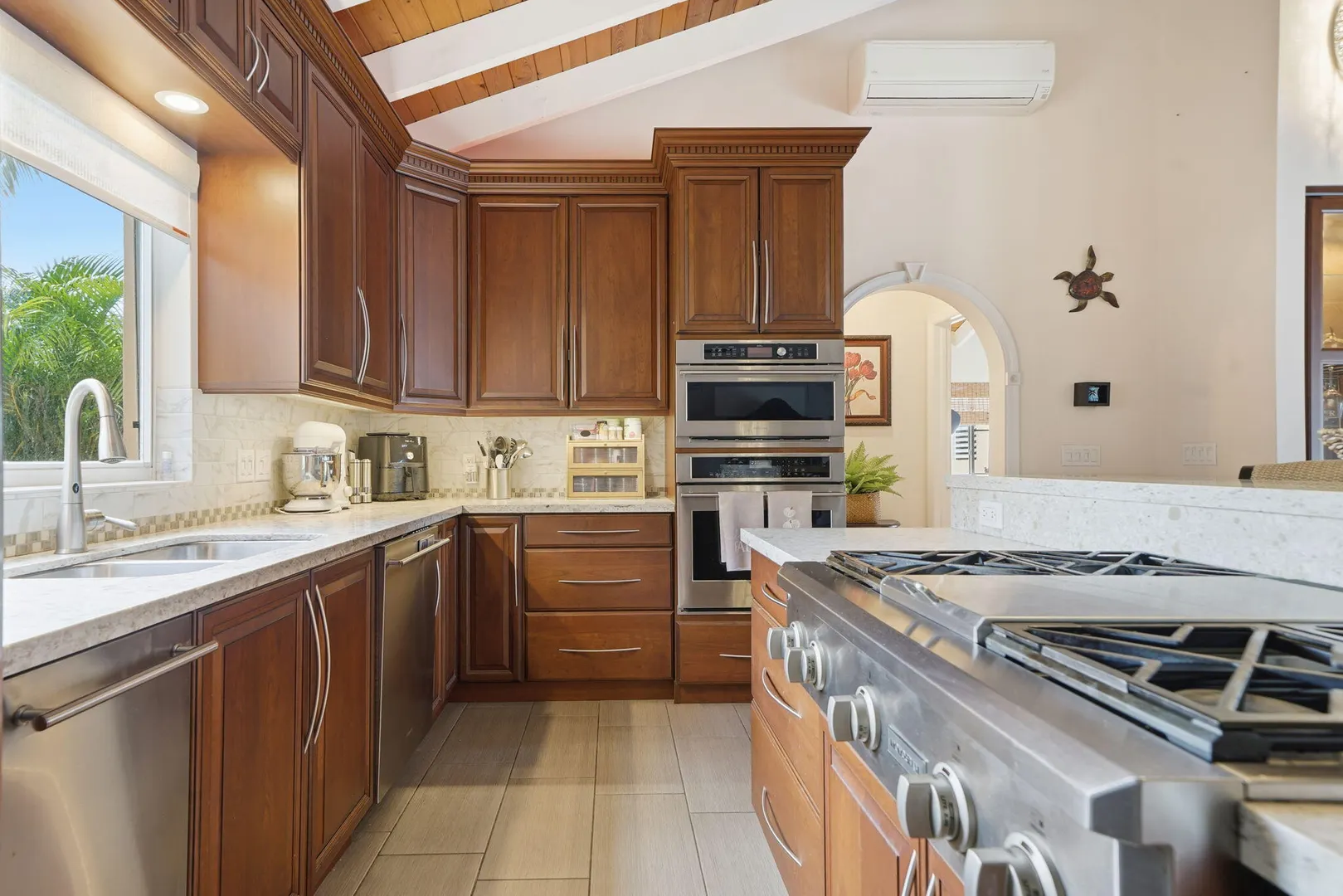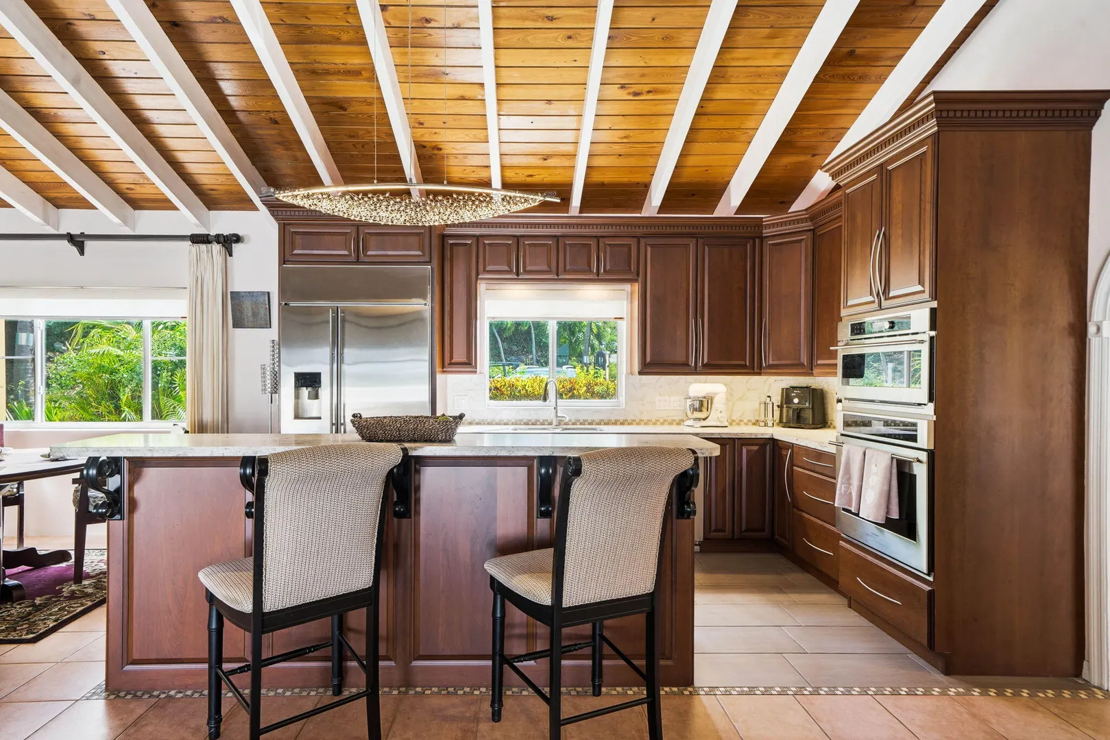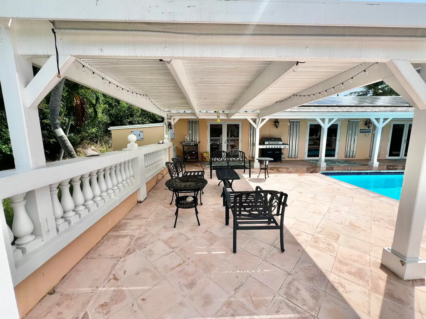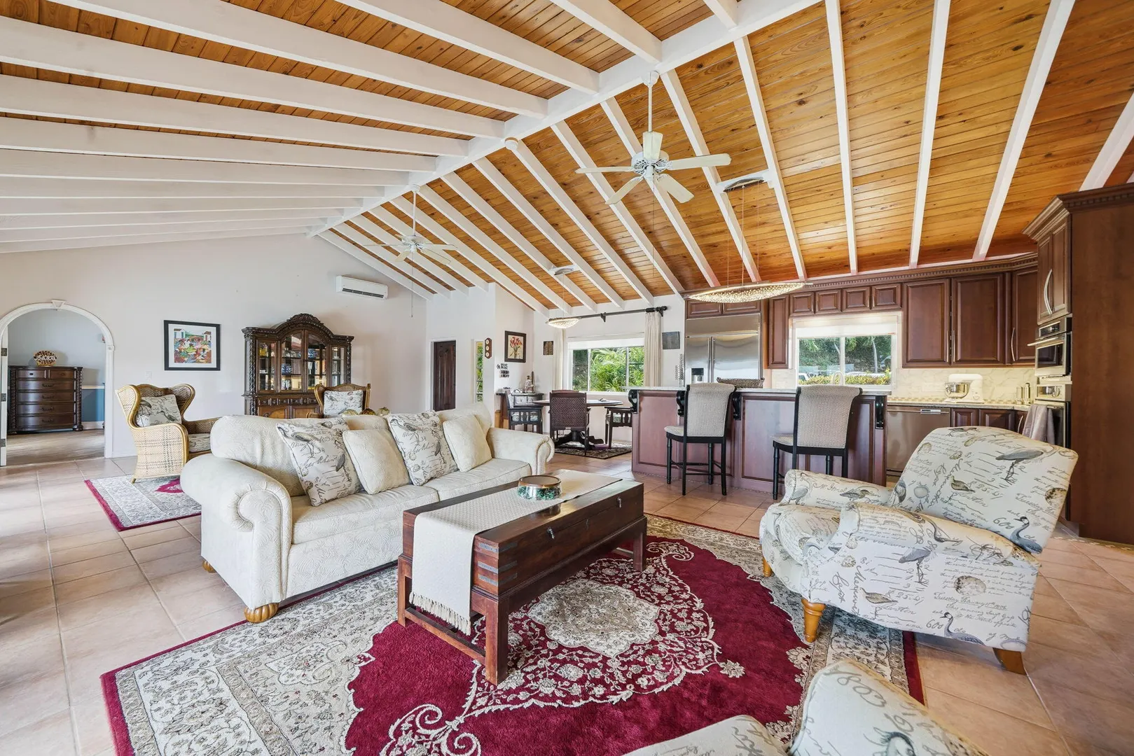 Experience effortless island living in this 3-bedroom, 3-bath villa nestled within the exclusive gated BEACHFRONT community of Shoys. Designed for both relaxation and connection, this property delivers a seamless indoor-outdoor lifestyle centered around a sparkling private pool and framed by lush tropical landscaping. Step inside to find an open-concept great room with cathedral ceilings and a beautifully renovated kitchen featuring high-end stainless-steel appliances, sleek countertops, and abundant cabinetry--a true chef's delight. The custom entertainment center with a pull-out bar, wine cooler, and breakfast bar makes hosting friends and family a breeze. The layout offers flexibility and privacy, with two bedrooms under one roof and a third suite just off the pool deck--perfect for guests or a home office. Each bathroom has been thoughtfully updated, blending coastal style with modern comfort.