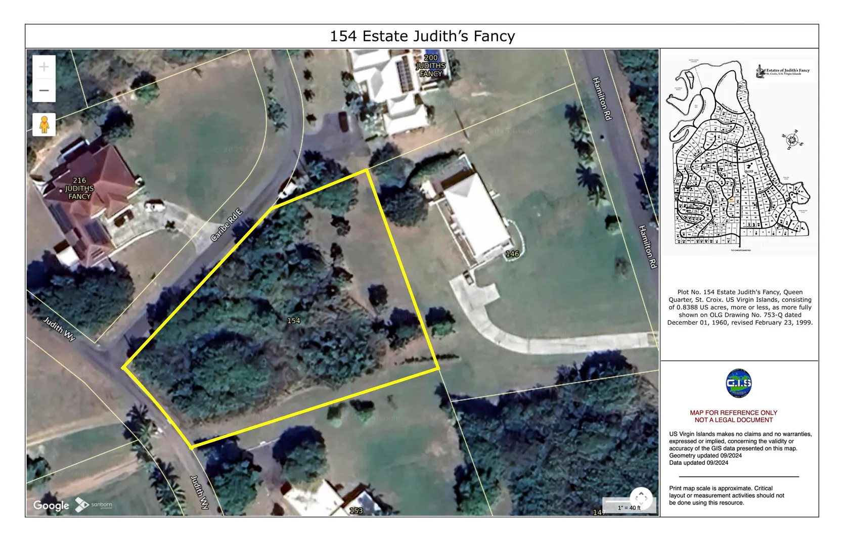 Wonderful corner lot in the desirable estate of Judith's Fancy! Excellent building site located inside an established gated beachfront residential neighborhood! This flat parcel is comprised of 0.84 acres, giving you more than enough space to construct your ideal island home! Judith's Fancy is conveniently located 15 minutes from downtown Christiansted for dining, shopping or work, and 20 minutes from schools, shopping centers, movie theater, and medical facilities. Please look in Documents section for CCR's and other important information. The house adjoining the lot, 146 Judith's Fancy, is also for sale.
