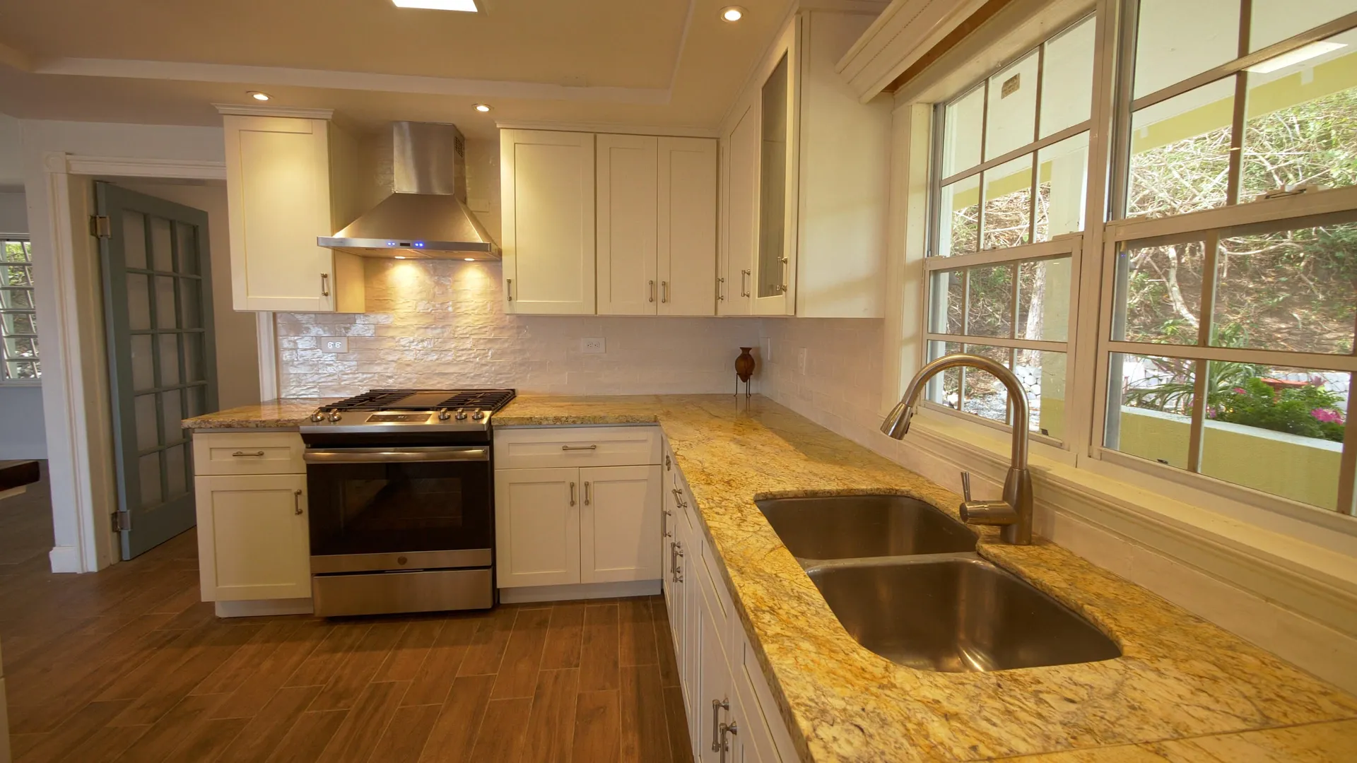 Island life awaits in this newly remodeled home located in the sweeping hills of St Croix's East End. The spacious driveway welcomes you to the newly painted home adorned with beautiful landscaping, and a large deck perfect for entertaining and soaking up the sun and amazing views. Quality workmanship and attention to detail are evident as you step inside to an open floor plan featuring a spacious kitchen with polished granite counters, new high end appliances, and custom Tibet wood island. Nearby is a large laundry room and pantry area with separate entrance and plenty of storage. The private main bedroom has a large walk in closet and gorgeous ensuite bathroom with shower and jet tub. Other amenities include whole house water filtration, generator transfer switch, dual road access to lot