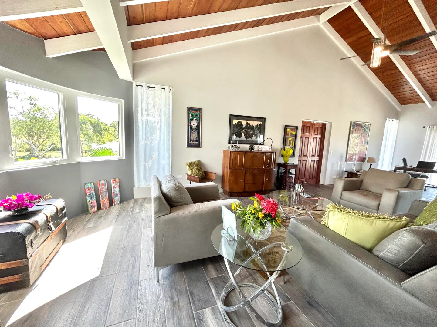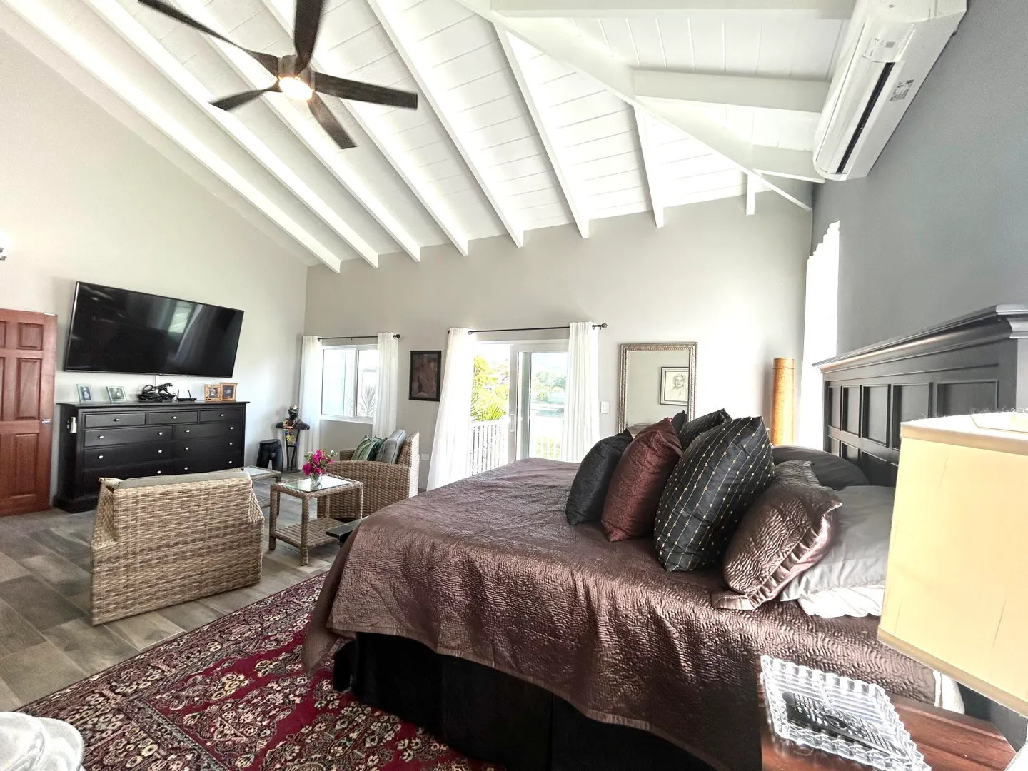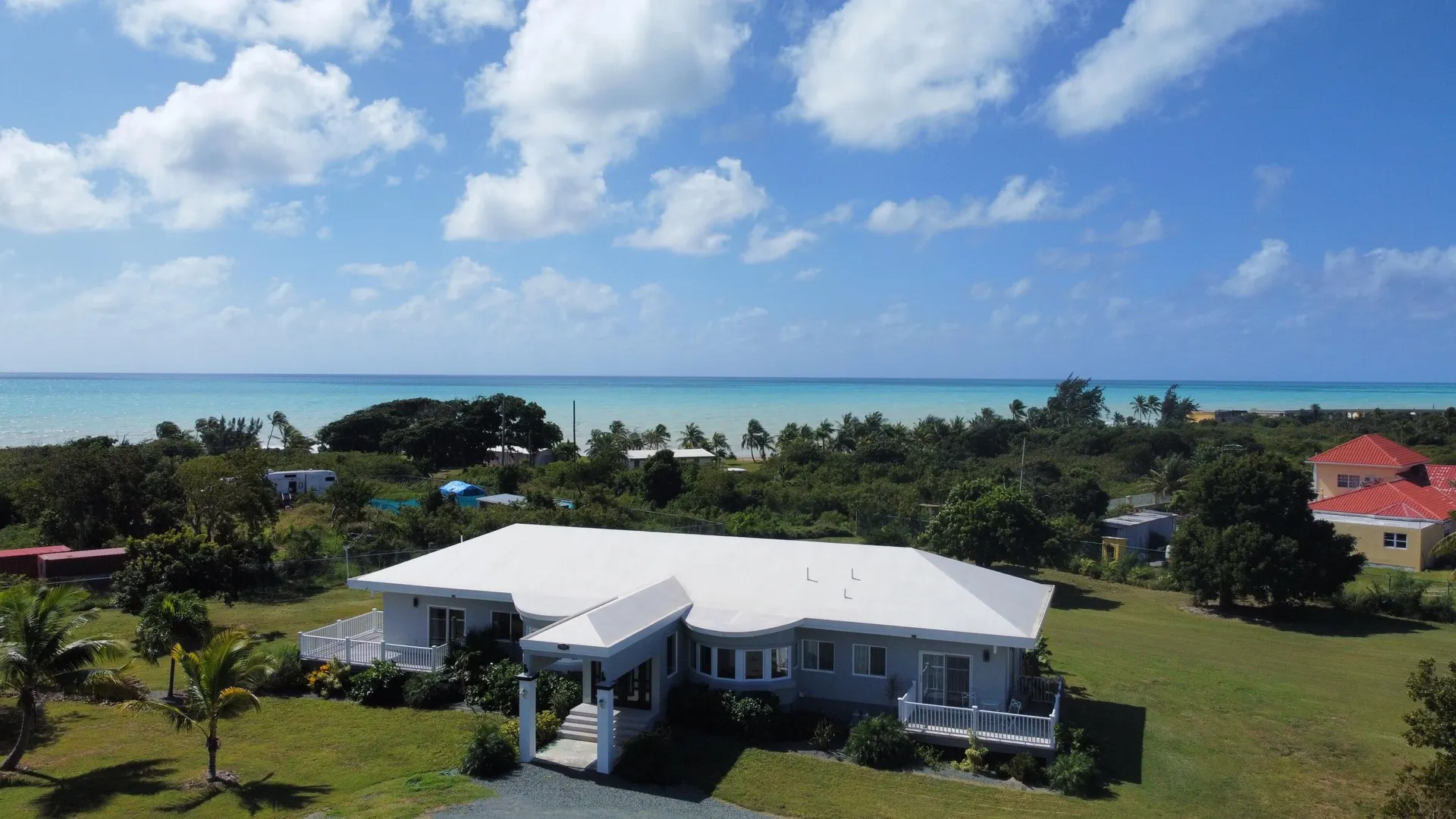 Model Home Quality and Design just waiting for you. West End Beauty in impeccable and immaculate condition. Luxurious master suite with large ensuite bathroom with walk-in closet and sitting area. Each guest bedroom has their own like-new bathroom. Great curb appeal with a circular driveway gracing this large, flat, one acre parcel. The kitchen is huge....so much prep space and cabinets galore. Quality appliances, cabinets and granite countertops. Each bedroom has their own outside sitting deck. From the living room/dining room, and outside deck, you have a small sea view, Enjoy the sound of the Sea from the spacious well lit deck. AC throughout, porcelain tiles, quality at every turn. *Agents and APPRAISERS please read Private Remarks.*