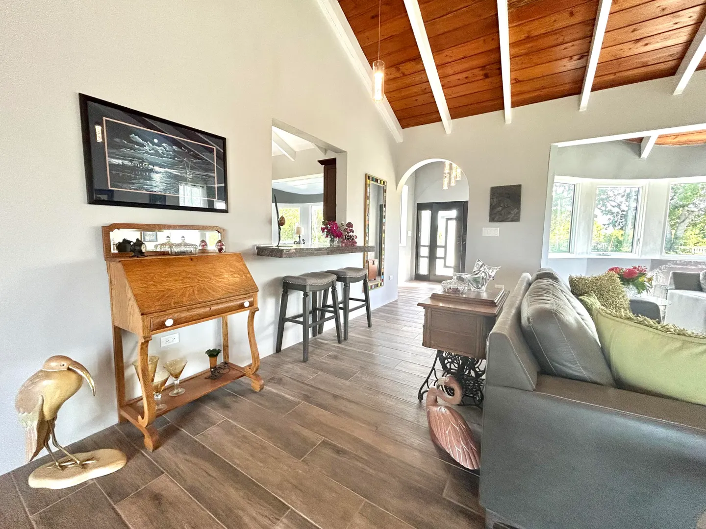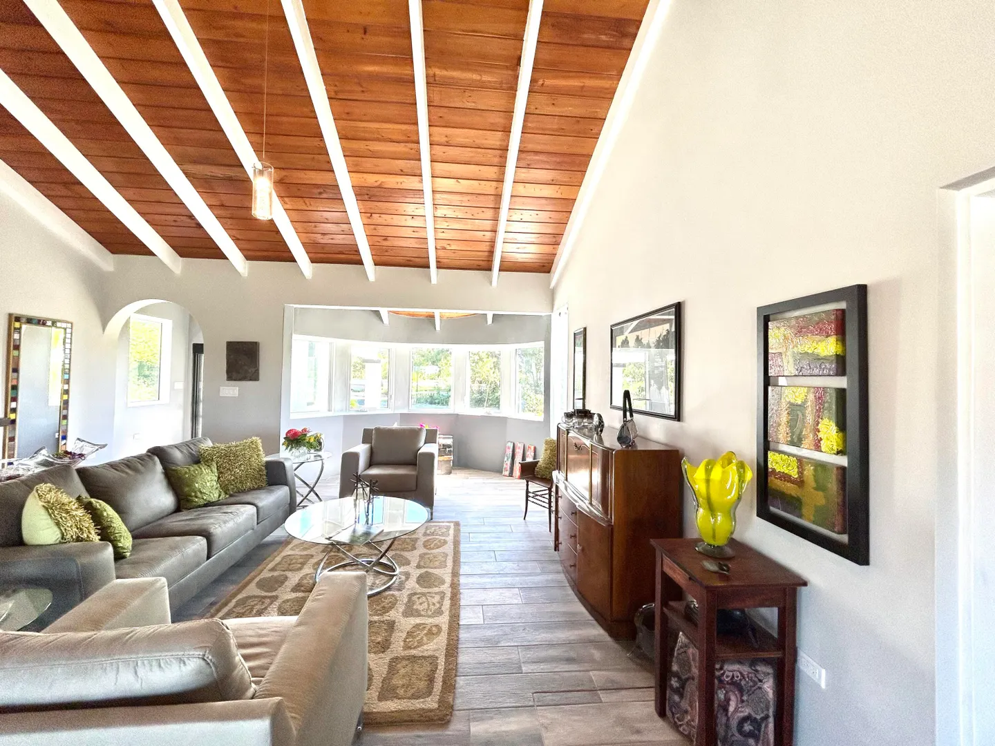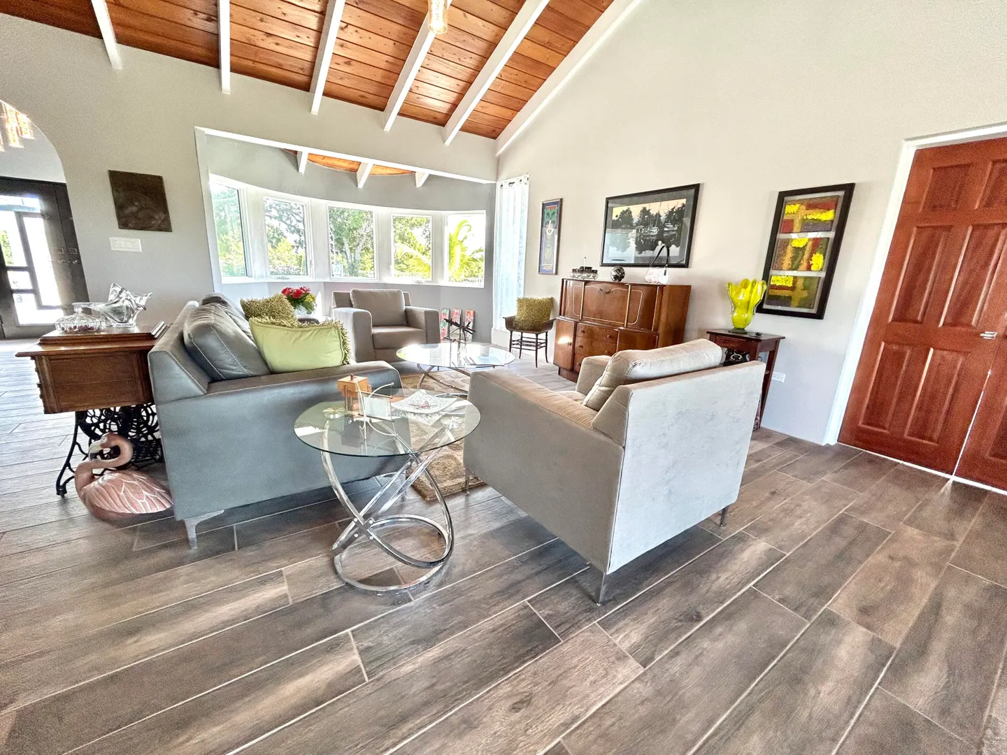 Model Home Quality and Design just waiting for you. West End Beauty in impeccable and immaculate condition. Luxurious master suite with large ensuite bathroom with walk-in closet and sitting area. Each guest bedroom has their own like-new bathroom. Great curb appeal with a circular driveway gracing this large, flat, one acre parcel. The kitchen is huge....so much prep space and cabinets galore. Quality appliances, cabinets and granite countertops. Each bedroom has their own outside sitting deck. From the living room/dining room, and outside deck, you have a small sea view, Enjoy the sound of the Sea from the spacious well lit deck. AC throughout, porcelain tiles, quality at every turn. *Agents and APPRAISERS please read Private Remarks.*