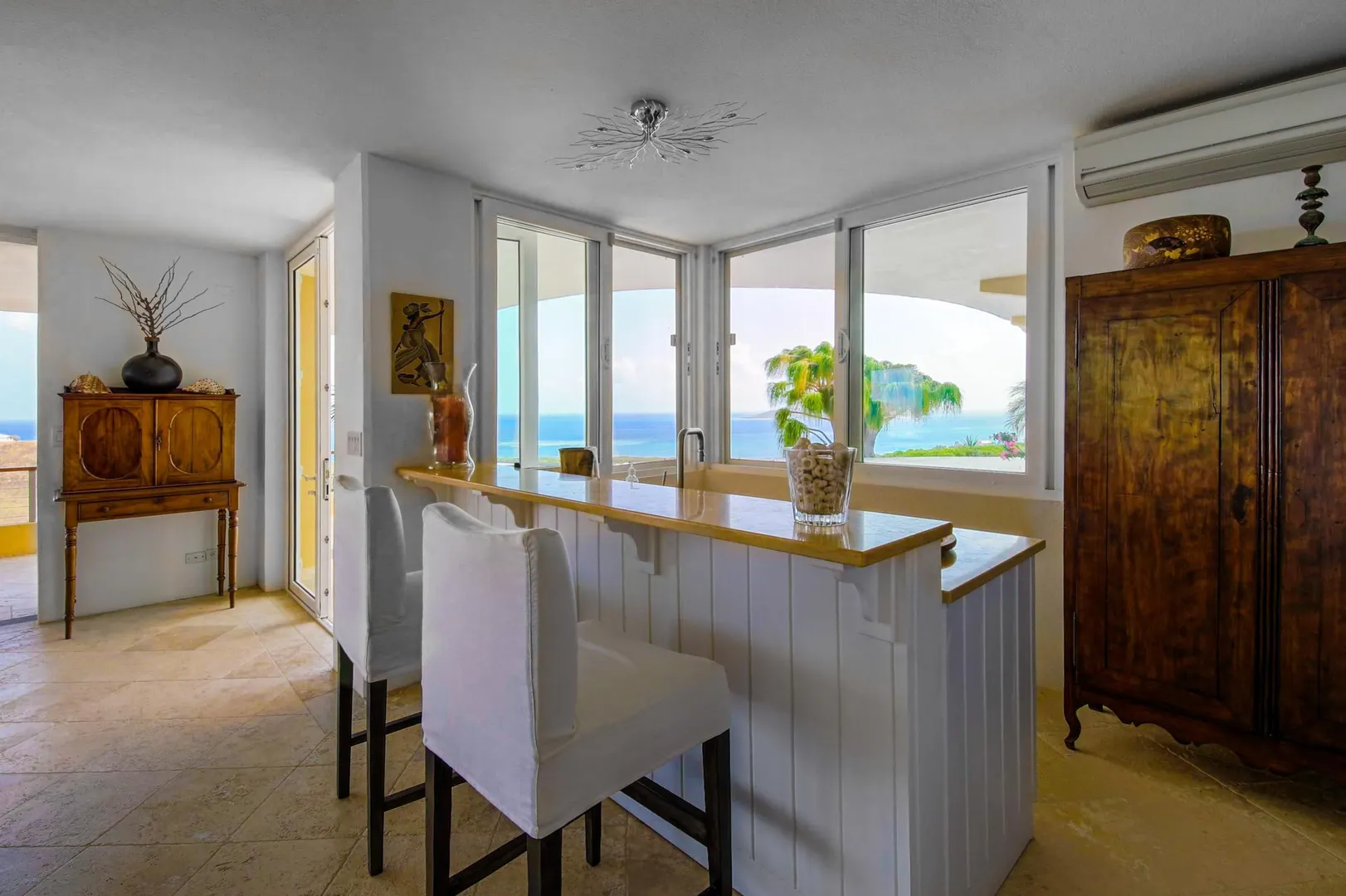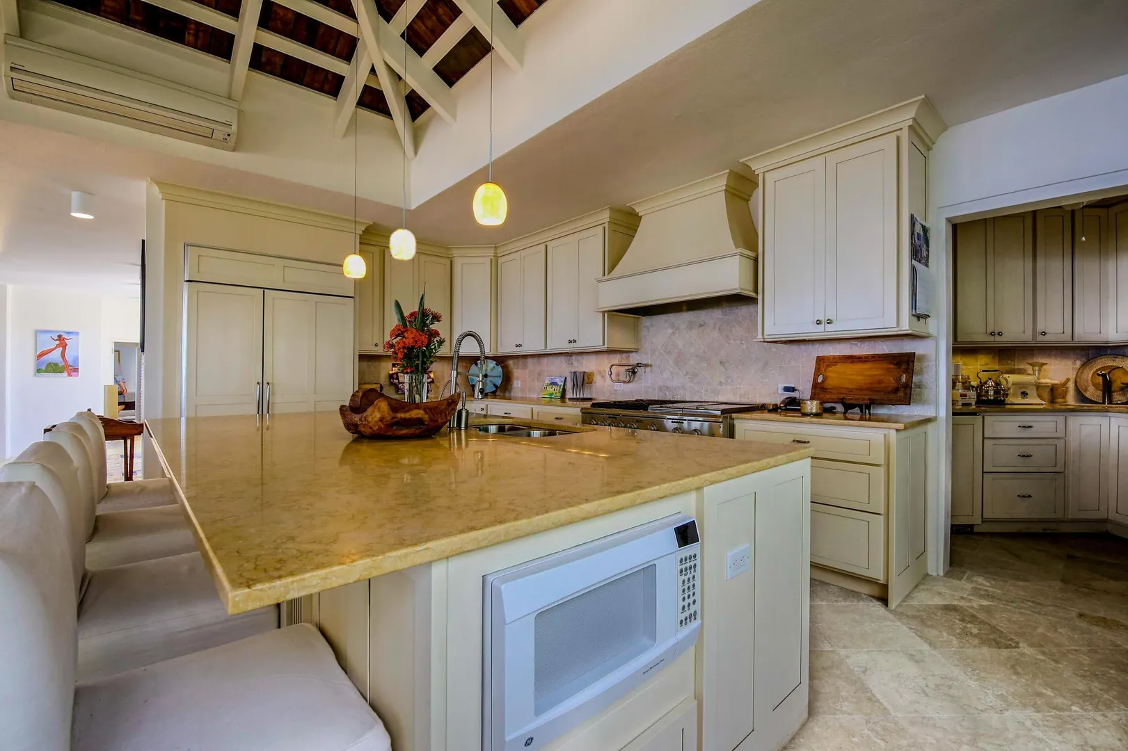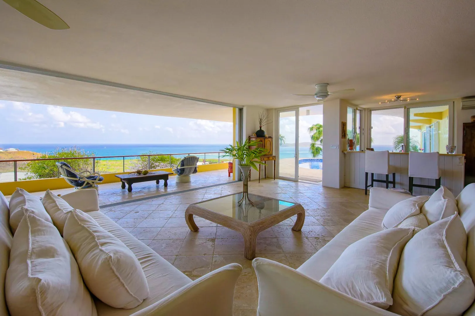 FOR COMP ONLY in the hills of Green Cay, this is a rare opportunity to purchase a private gated estate on St. Croix's east end. This property sits on approximately three acres of one of the nicest knoll tops east of Christiansted with panoramic views that stretch from Buck Island to Christiansted. This property was recently renovated with many fine finishes and fixtures, including new Plaza hurricane impact glass doors and windows throughout, tumbled marble flooring, granite and marble counters in kitchen and bathrooms, GE Monogram Professional Series Kitchen Appliances, split A/C units throughout as well as Minka Aire ceiling fans, and Kohler fixtures. The main house has three bedrooms upstairs with guest quarters below and separate one bedroom caretaker's cottage.The large courty